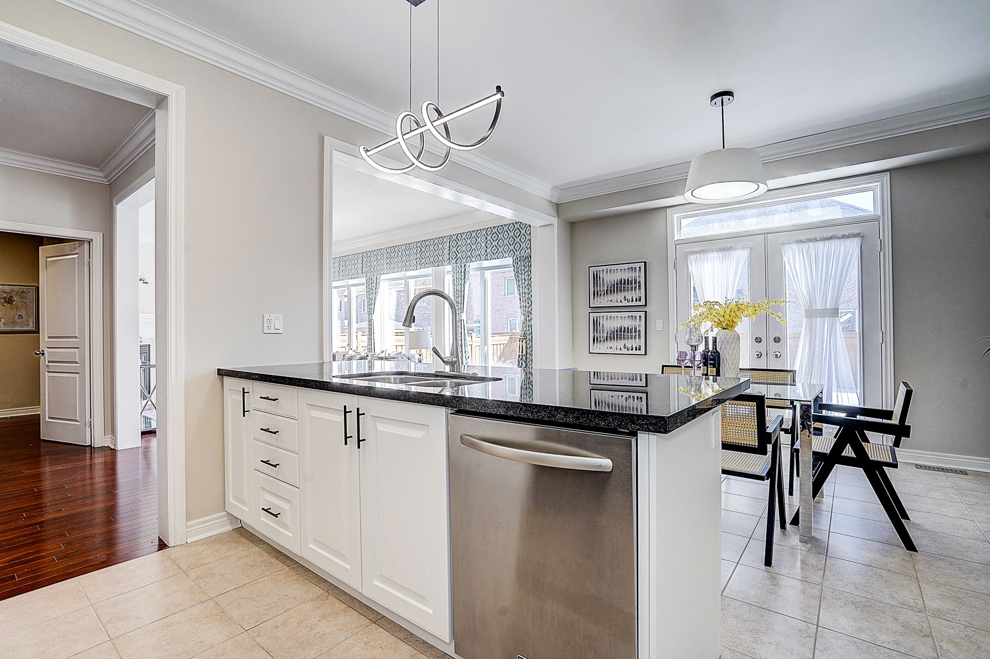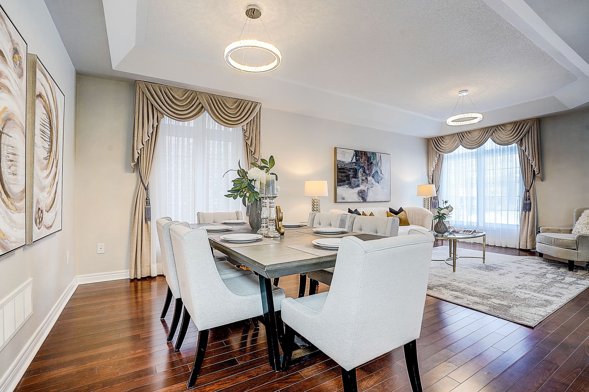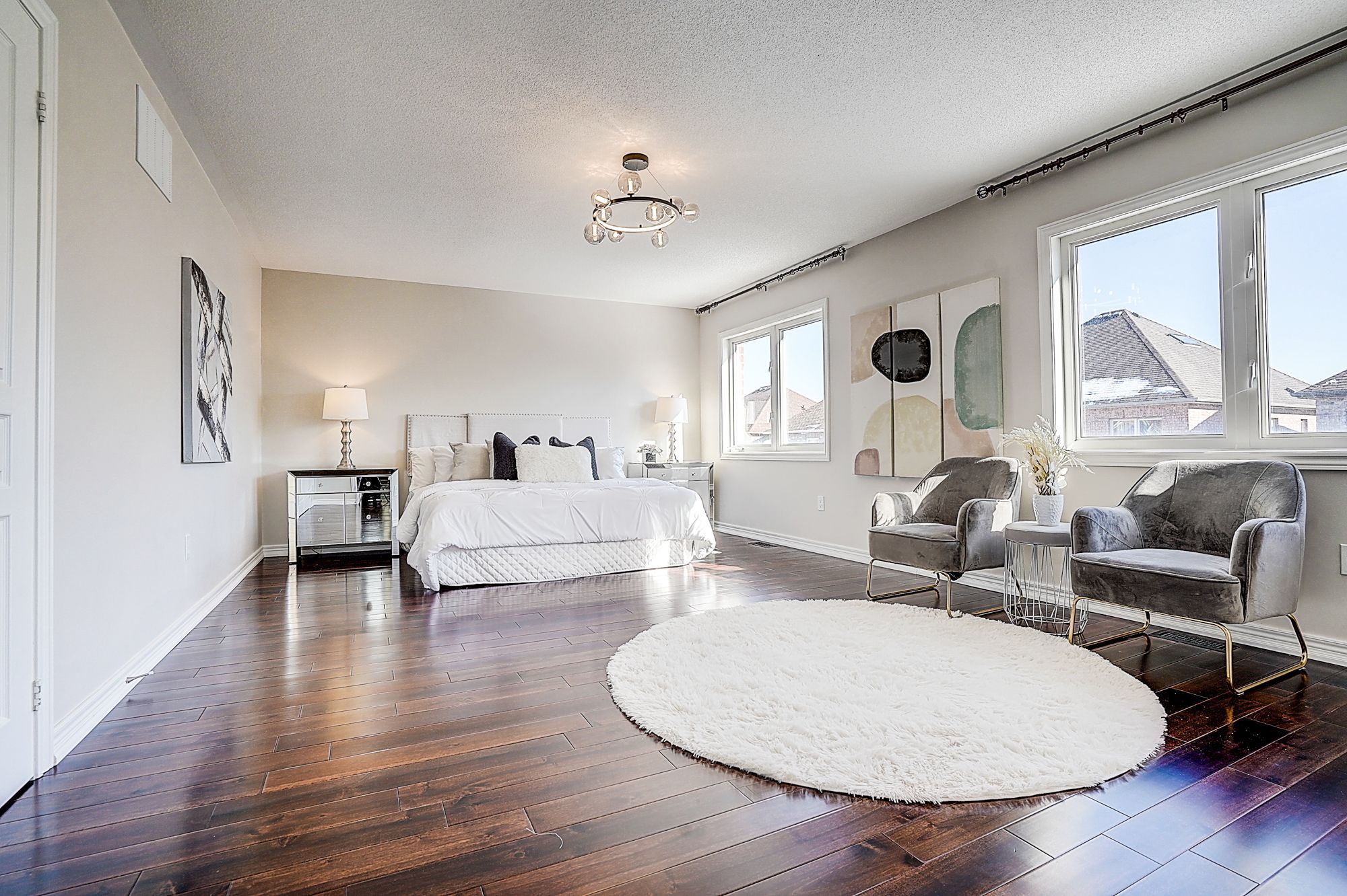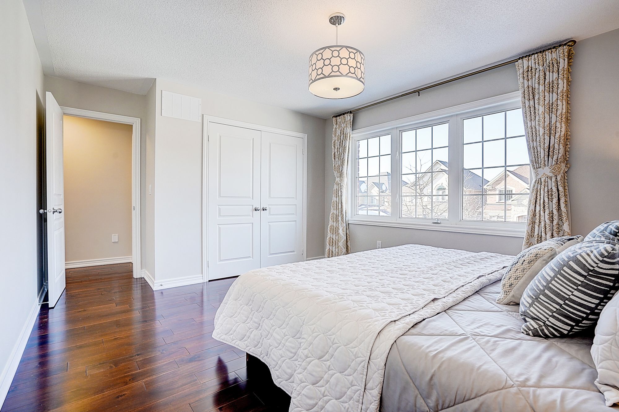 Welcome to 98 thornhill ravines cres. A stunning luxury & executive home sitting on a rarely available south-facing premium lot (46 x 101. 82) in a highly sought-after valleys of thornhill neighborhood. Featuring a brick exterior, double car garage, professional interlock front yard and backyard, this spacious residence offers over 4,500 sq. Ft. Of total living space including a fully finished basement. Recent upgrades $$$: freshly painted throughout, brand new hardwood floor on second floor, modern designer indoor and outdoor light fixtures, and upgraded bathroom vanity cabinets enhancing both style and functionality. This open-concept gem boasts hardwood flooring, and big windows flooding the space with natural light. The main floor features spacious living and dining areas, a cozy family room with gas fireplace, and a big office. The gourmet kitchen showcases storage cabinetry, granite countertops, tile backsplash, centre island with breakfast bar, and premium stainless-steel appliances. A walkout from the breakfast area leads to a patio for outdoor entertaining. Upstairs, there are two en-suites and one jack and jill bathroom. The primary bedroom offers a walk-in closet, and a luxurious 5-piece ensuite with frameless glass shower, double vanity, and a bath tub. Another ensuite bedroom has its own private 4-piece ensuite, while the remaining two share a semi-ensuite bath. The finished basement includes a guest room, fully rough-in bathroom, and a large rec/media room. Zoned for top-ranked schools. This elegant, functional, and practical home closes to all amenities is ready to welcome you. Don't miss the chance to elevate your lifestyle! A must see and buy!
