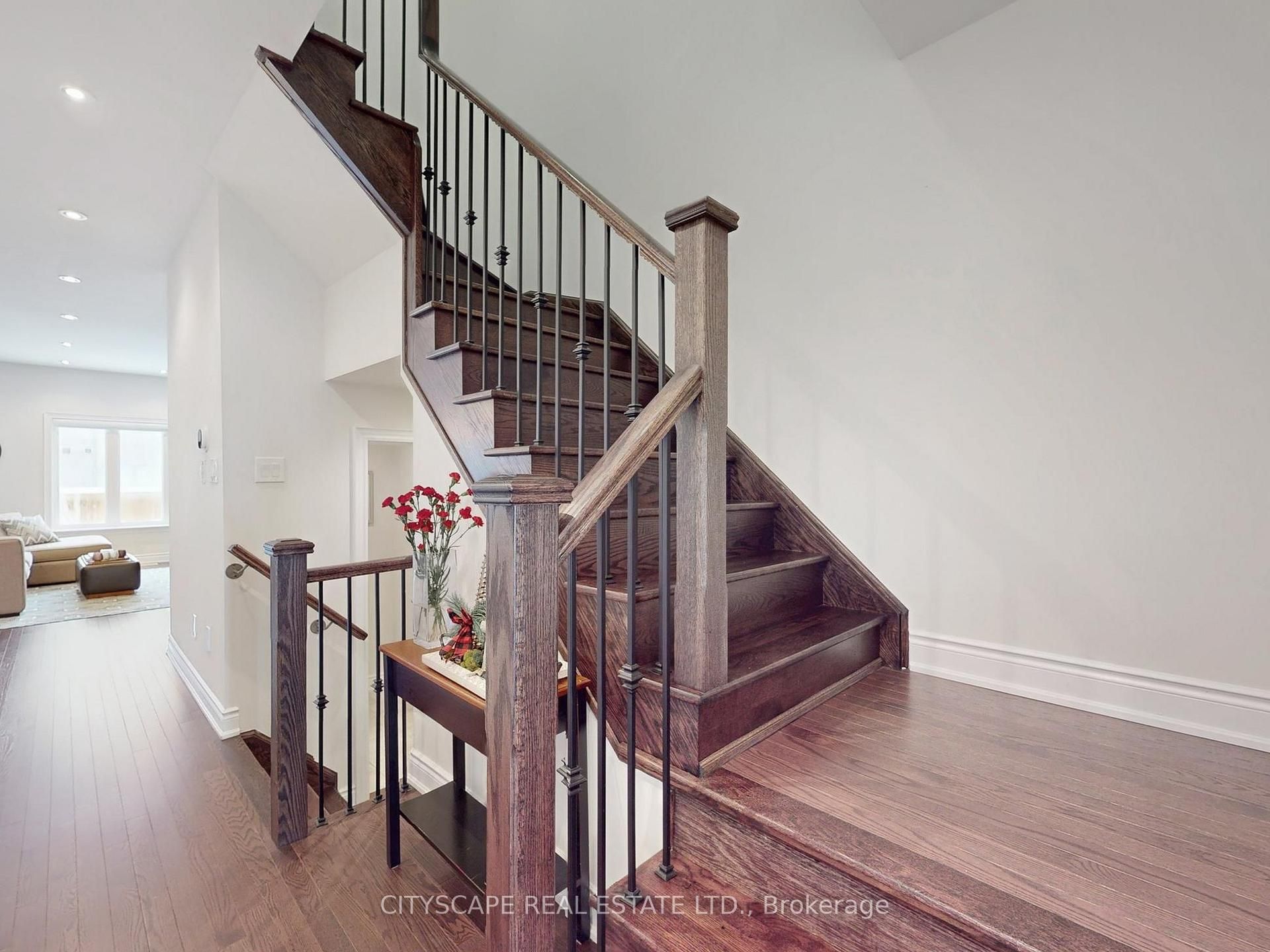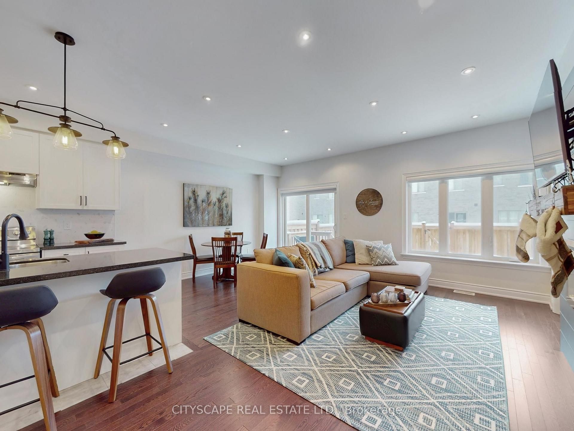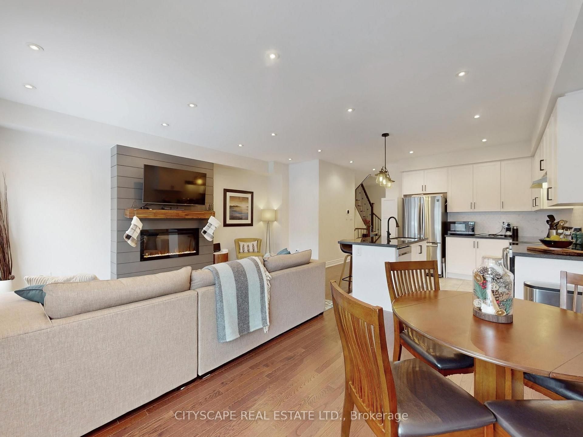 Welcome to this stunning, bright, beautifully upgraded home! All-brick freehold townhome in the heart of bradford. Featuring a spacious open-concept main floor with 9' ceilings, this inviting space offers a seamless flow ideal for everyday living and entertaining. Hardwood floors on the main and hardwood staircases, enjoy the warmth of an electric fireplace and a walk-out to a private deck overlooking a fully fenced backyard-perfect for relaxing or hosting guests. Upstairs, you'll find three spacious bedrooms, including a generously sized primary bedroom with a walk-in closet and 3-piece ensuite. A second 4-piece bathroom serves the additional bedrooms, while a convenient 2-piece powder room is located on the main level. Second-floor laundry is thoughtfully set in its own separate room for added convenience. The fully finished basement expands your living space with an open-concept recreation area, a versatile den, and cold storage-ideal for a home office, gym, or playroom. Additional highlights include an attached single-car garage. Ideally located close to schools, parks, playgrounds, shopping, restaurants, transit, and major highways,. This is it! Move-in-ready home offers comfort, style, and convenience in a sought-after family-friendly community.