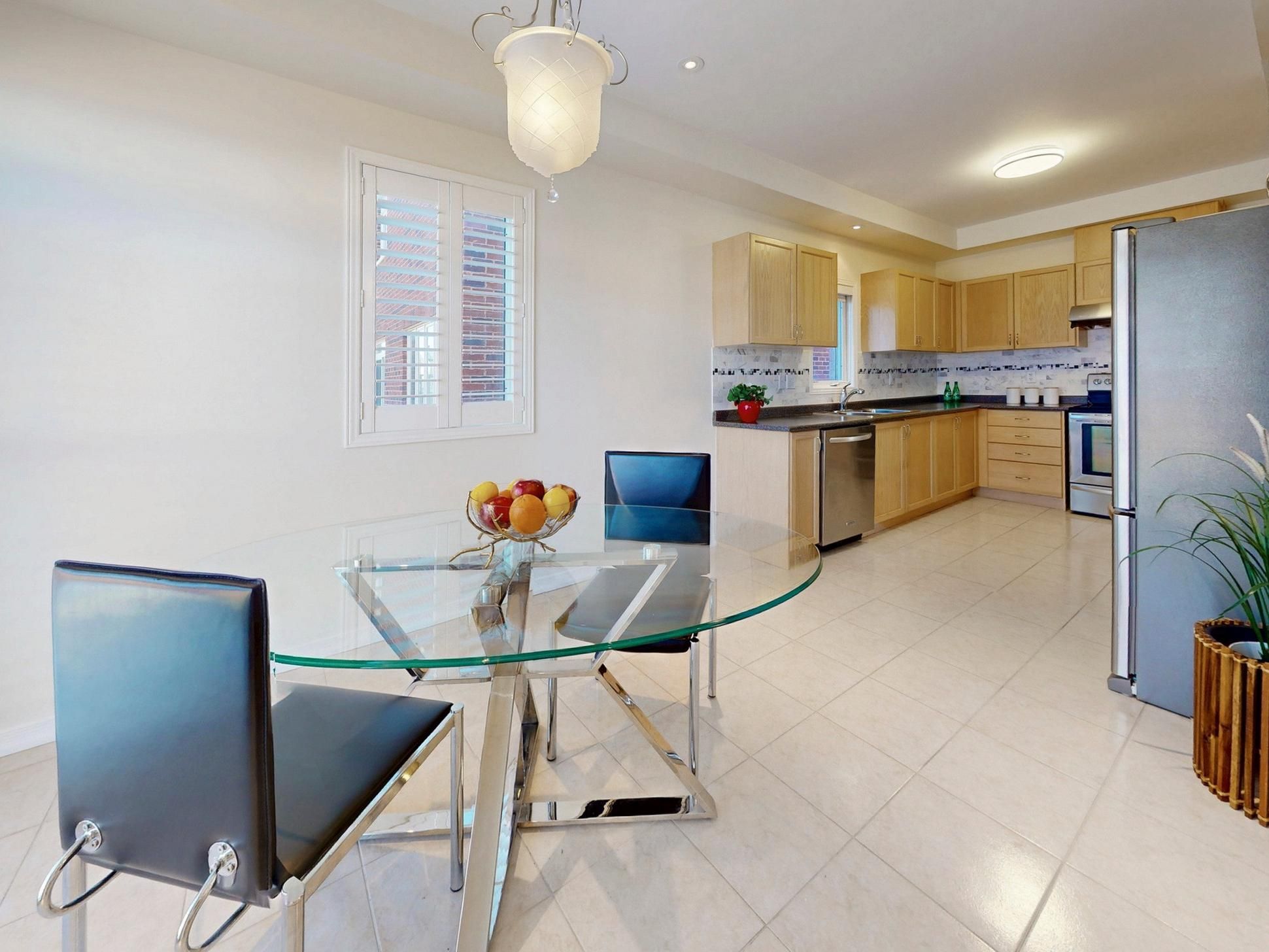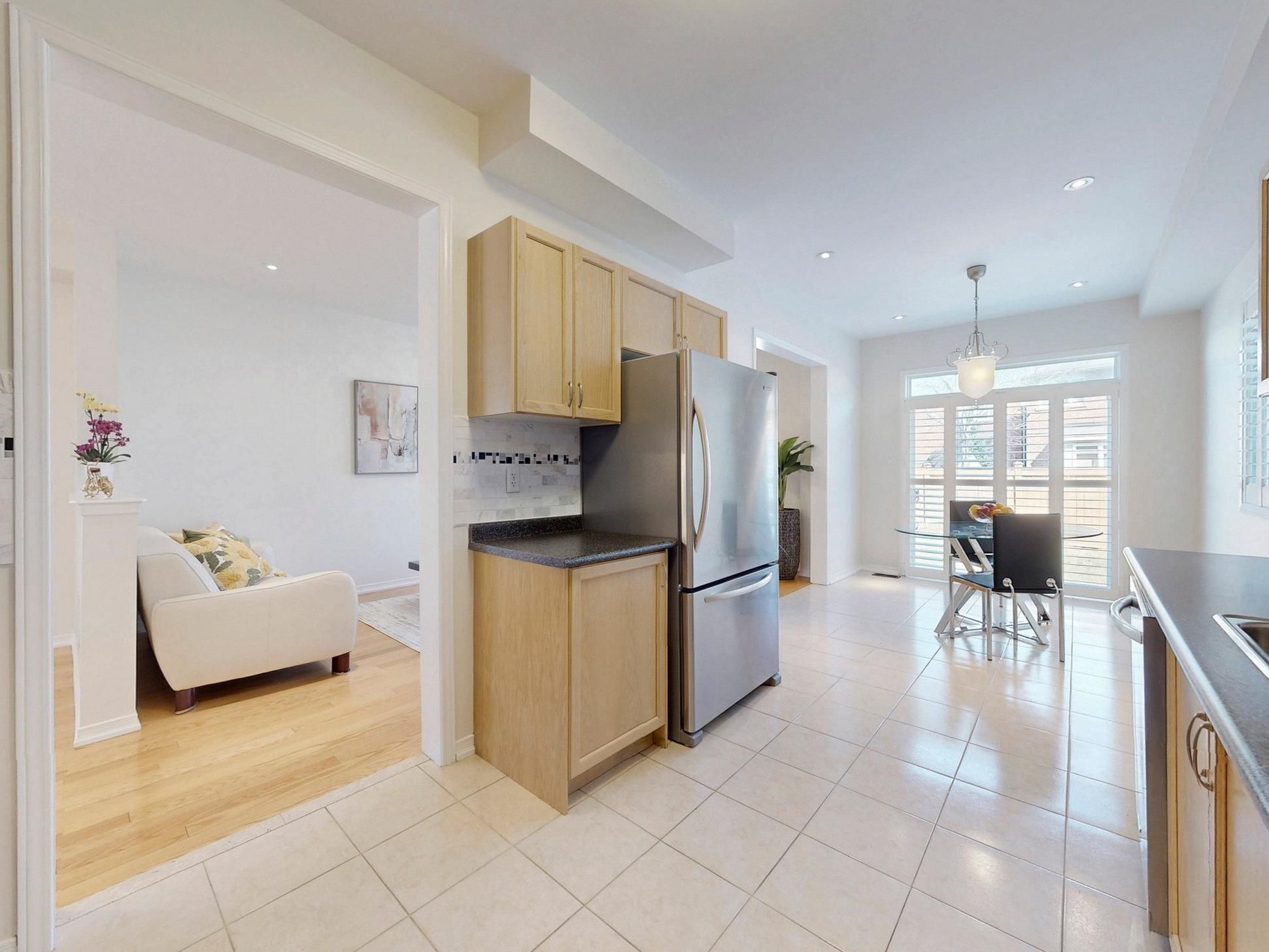 • Spacious eat-in area with natural light and access to the fenced backyard.