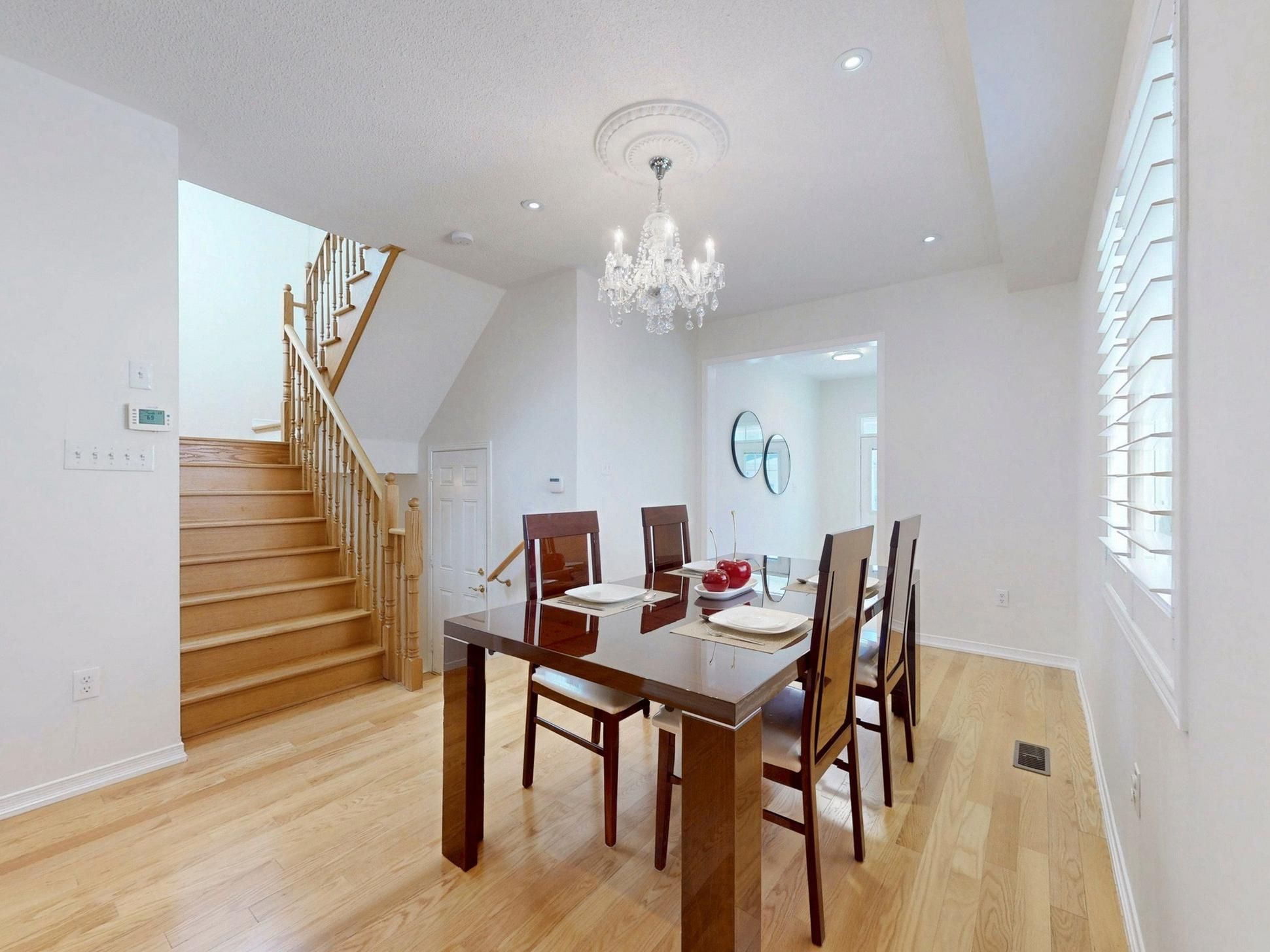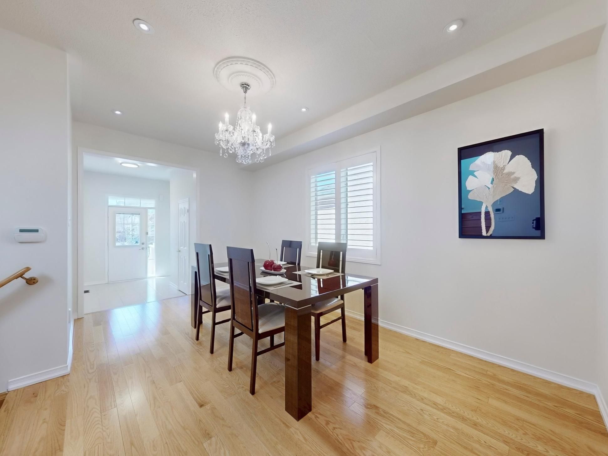 Premium pie-shaped lot detached home located in a quiet nature neighbourhood known for its established homes and overcoming community. Over 1900 sf. As per greenpark builder, freshly painted, open concept entire home, very bright and practical layout. 9 ft ceiling and pot lights on main floor, oak staircase, hardwood floor on main. The main home offers a warm and inviting layout for living and entertaining. Bright and spacious eat-in area where natural light fills out and walk out to spacious backyard, fully fenced, ideal for entertaining or relaxing, creating the perfect setting for breakfast or family dinners. Living rooms combine w/dinning rm features a cozy area for relaxing, true comfort, and convenience throughout the home. Main floor with direct access to the garage. Over 300 sf. Master room with a large walk-in closet and 5 pcs ensuite. Shutter blinds entire house, close to schools, parks, transit, and shopping. A rare opportunity to own a spacious home with long-term value.