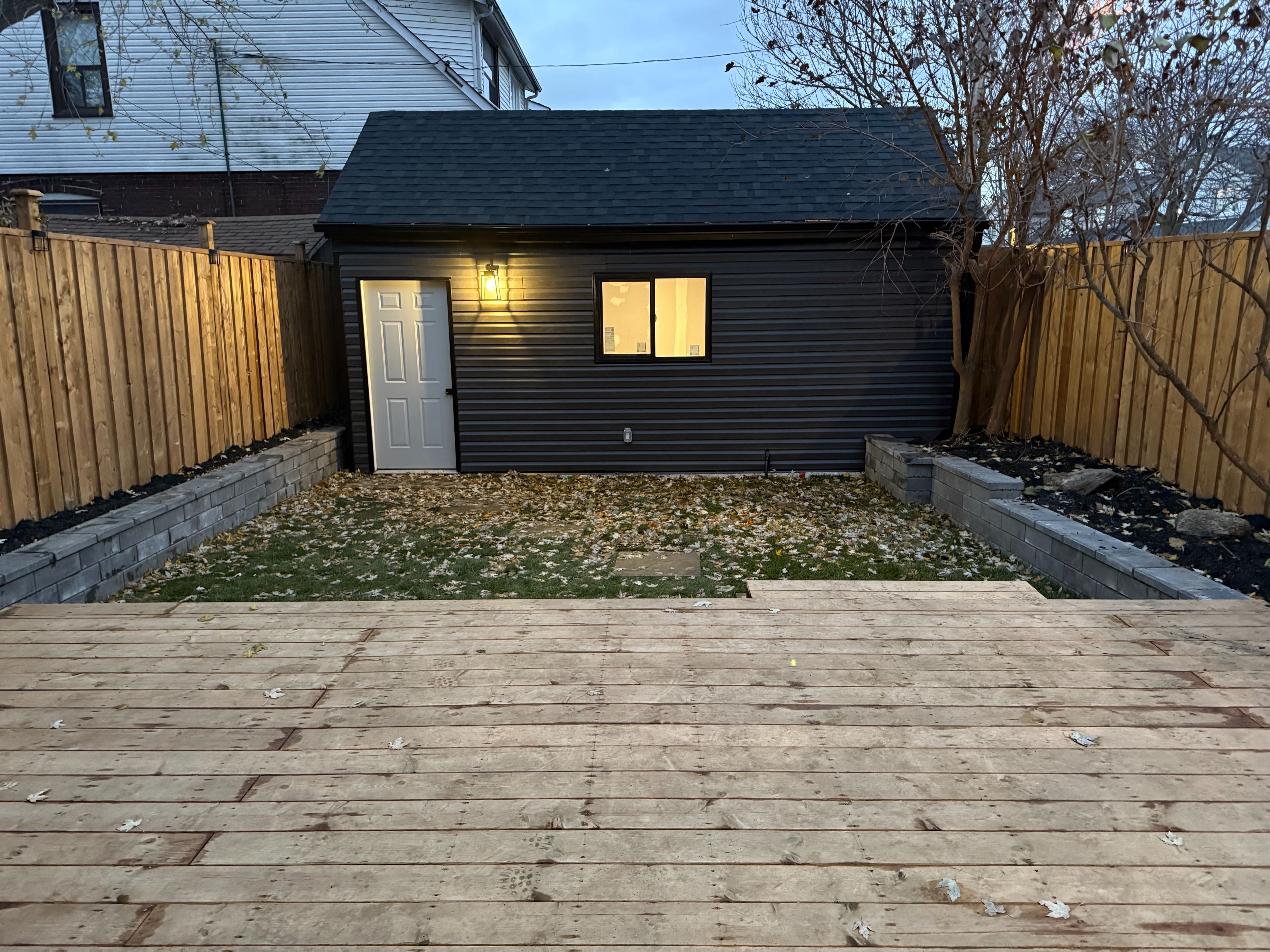 An exceptional opportunity in the hearth of danforth, this beautifully updated detached home sits proudly on a prime corner lot and delivers a refined blend of style, comfort, and modern upgrades. Featuring 3+1 bedrooms and 3 baths, the home offers a bright, well designed layout along with a fully separated finished basement with its own entrance perfect as an in-laws suite or additional private living space. The stunning modern kitchen showcases a sleek center island, quartz countertop, designer backsplash, and brand new appliances. Premium enhancements include a brand-new detached garage with a 100-amp panel (ev-charger ready), upgraded 200-ampelectrical service, renewed hvac ducting, high-quality engineered hardwood throughout the main and upper floors, and pot lights on all levels. The home also includes two complete sets of washer and dryer for upper and lower floors. A striking slab-stone fireplace elevates the living area, while the expansive 300 sq. Ft. Deck creates a seamless indoor-outdoor extension. A tastefully upgraded home in a welcoming neighborhood close to schools, transit, parks, and the best of the danforth. Located just minutes from public transit, this home makes commuting and city living a breeze.