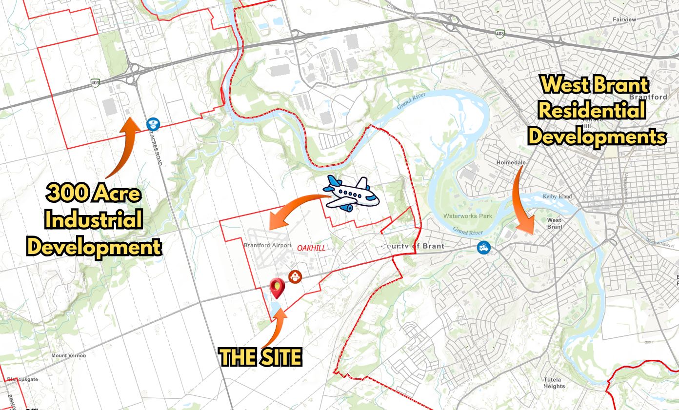 Strategic commercial frontage: premium, multi-tenanted commercial property directly across from the brantford municipal airport. This versatile asset features over 6,000 sq/ft building footprint, intelligently demised into industrial space with multiple drive-in doors, up to 14ft clear height, office spaces, a residential apartment, and potential storefront; situated on 4+ acres with 192 ft of high-traffic arterial frontage on colborne st w. Flexible c2 zoning within the airport overlay allows for a massive range of permitted uses including retail, qsr, medical, automotive sales/service, heavy equipment sales, warehousing, and logistics/transportation operations. Significant value-add potential. Maximize the proforma by leasing the expansive rear yard for outdoor storage, or leverage the acreage for future building expansion, green energy initiatives, or a commercial ev charging hub & more! Positioned at a critical pinch-point between west brant's explosive residential growth and the expanding industrial corridor anchored by over 300 acres of neighboring industrial development. Under 10 minutes to hwy 403, offering seamless access to the hamilton, kwc and woodstock as a strategic median point within various regions. Ideal for an owner-user requiring maximum exposure and space, an investor seeking strong holding income with immediate upside potential, or a developer.