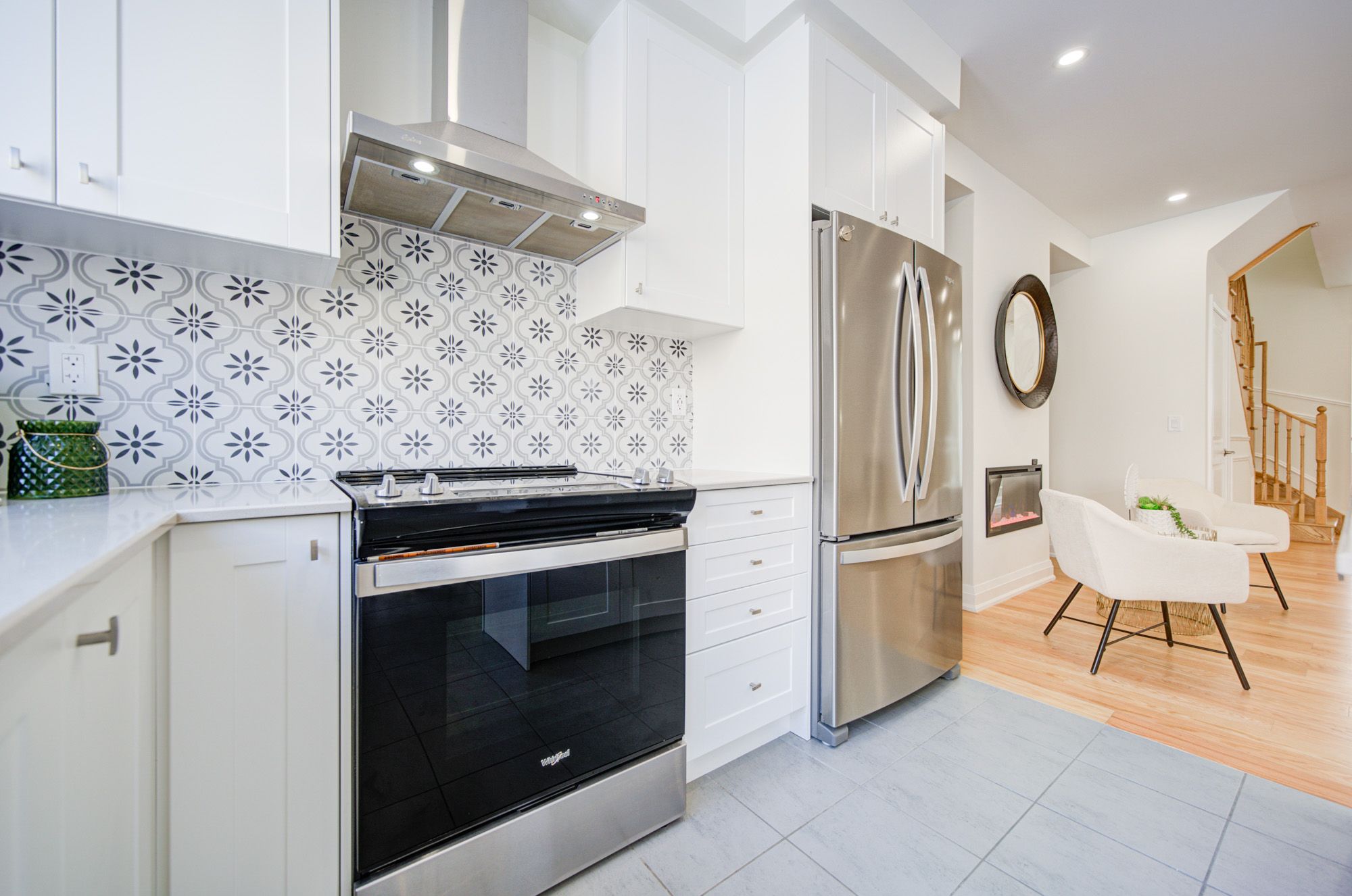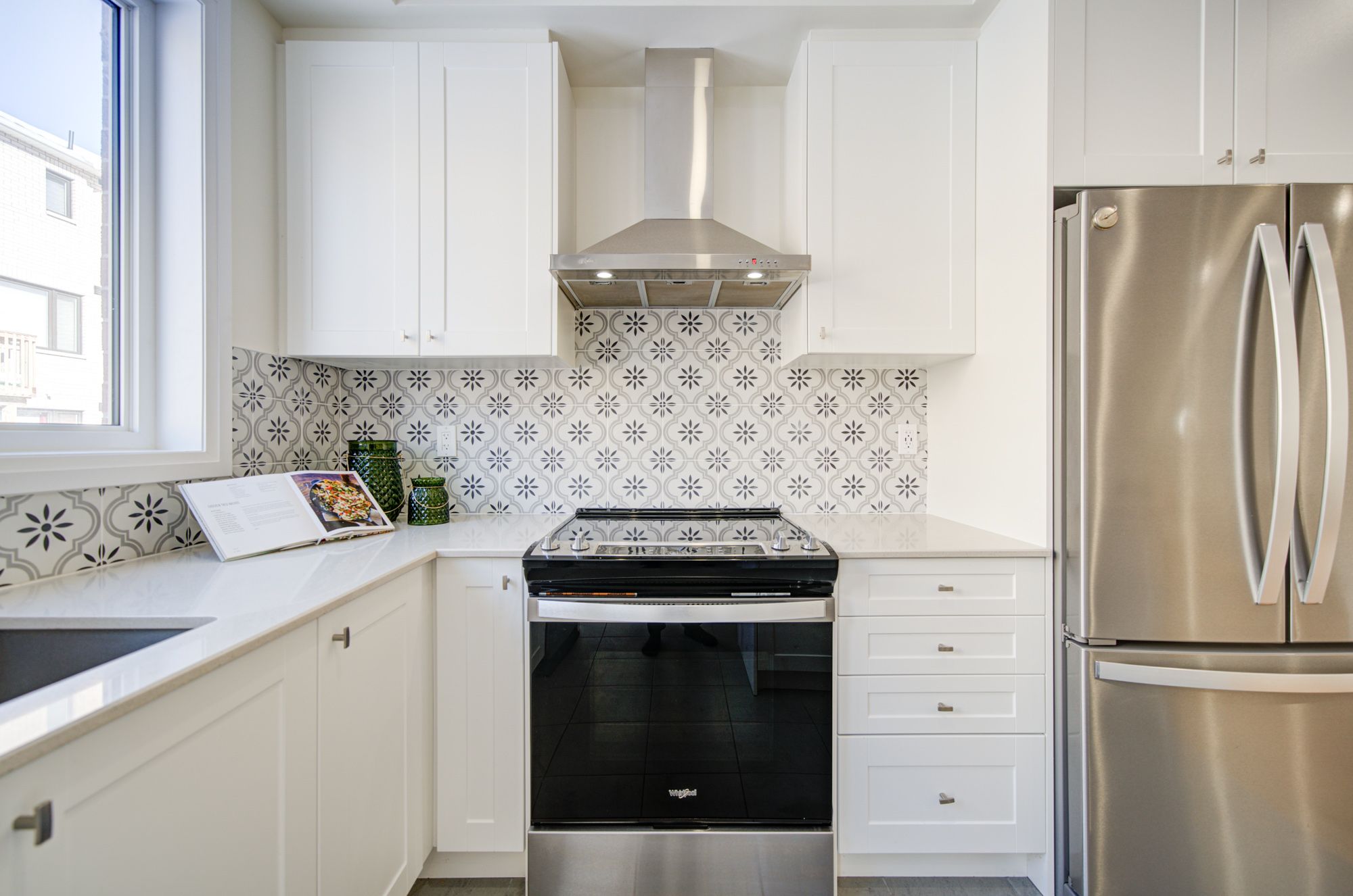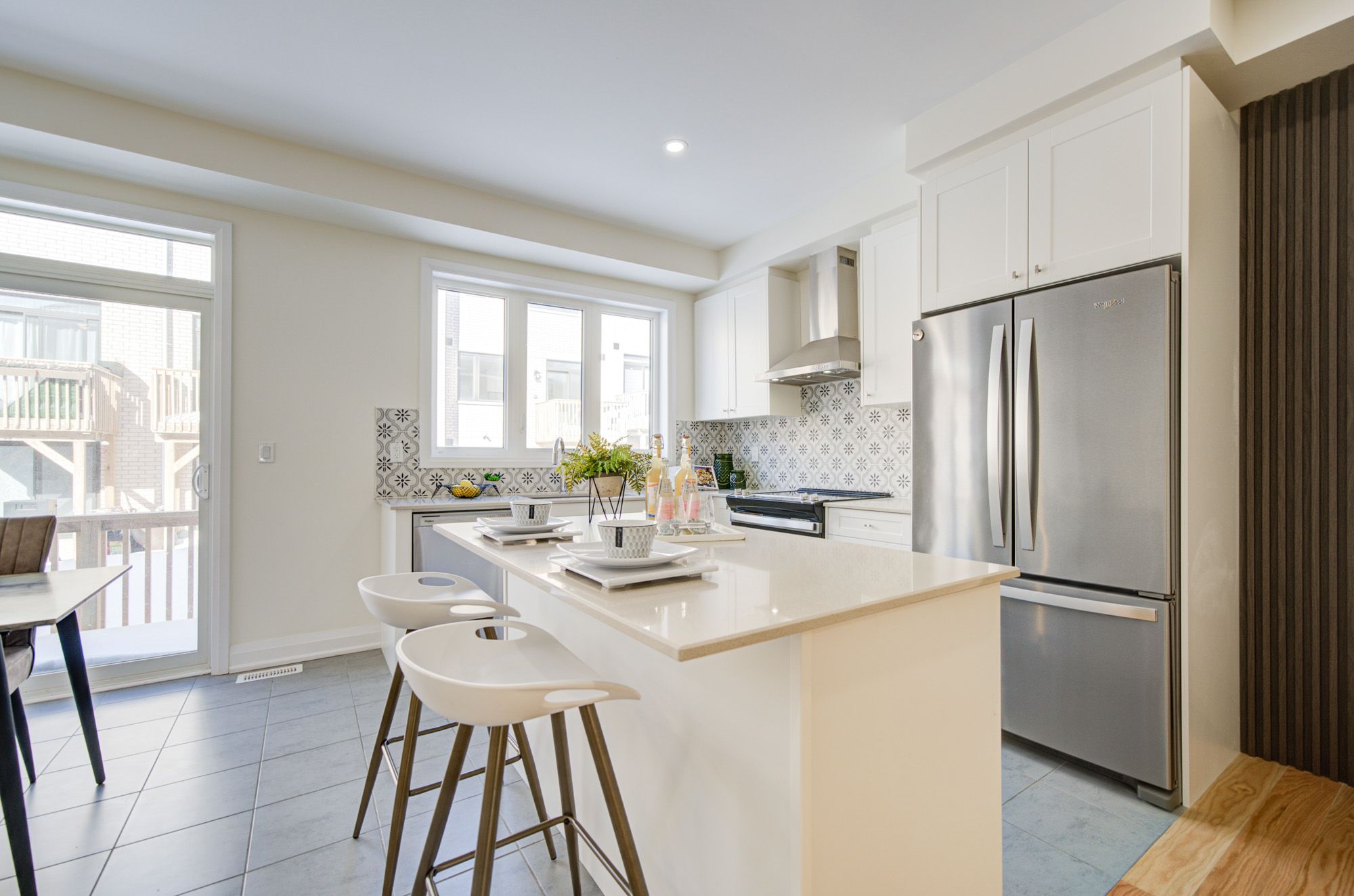 • Upgraded chef's kitchen with quartz countertops and private deck access.