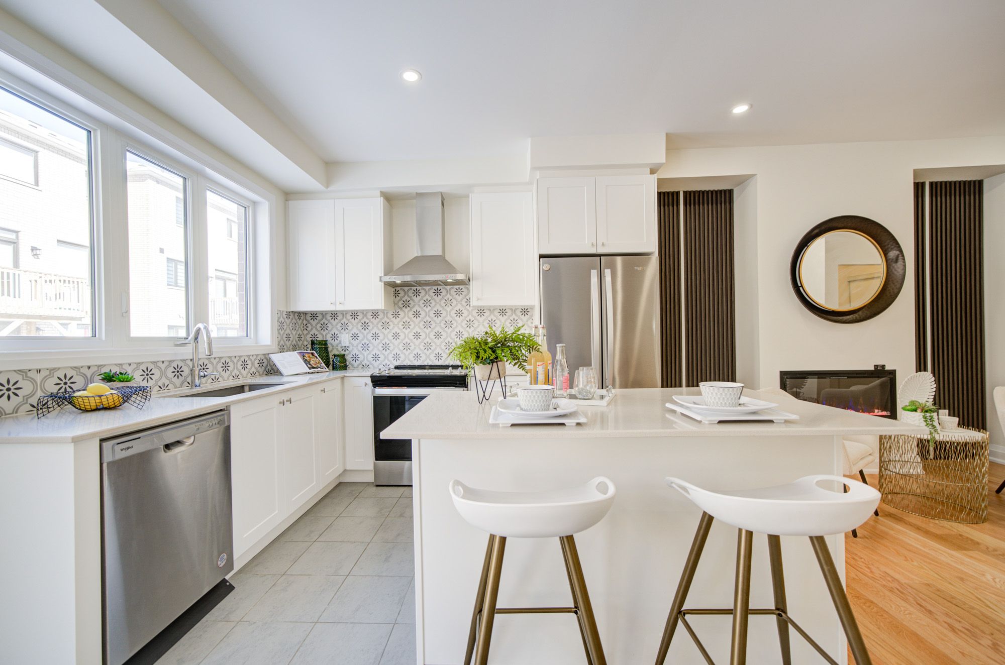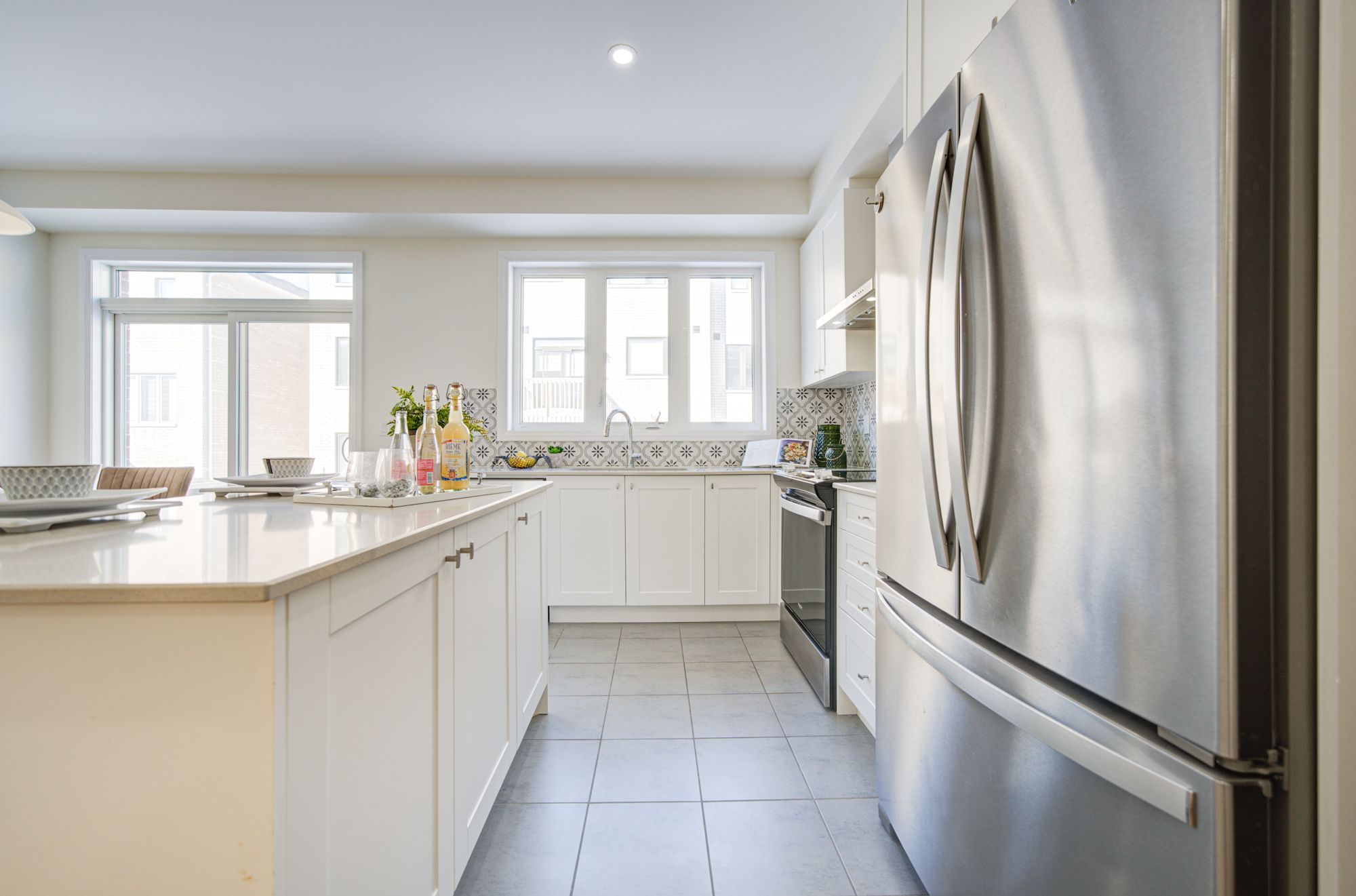 • Bright open-concept main floor with 9-ft ceilings and large windows.