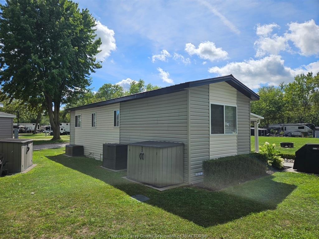 What a beautiful way to spend the summer at an exclusive golf club resort campground located in most southern part ontario surrounded by lake st clair, detroit river and lake erie. This well maintained unit features 2 bedrooms one bath. Comes completely furnished with furniture, fridge, stove, dishes, pots and pans, plus an additional outdoor space of approx 300 sq ft. Motorized screened in cement patio so you can sit outside to entertain with no bugs to bother you with added outdoor privacy. Enjoy the facilities with this very well maintained resort with inground heated salt water pool with lifeguards, splash pad, childrens play area, laundry facility, gourmet restaurant, 18-hole exclusive golf course. Just 30-40 minutes to many wineries and to point pelee national park - walk the trials in the marsh bird watch the many species. Also a short ferry ride to pelee island spend the day on the trials and visit the island winery. Park your boat in private canal for small fee, canal takes you right out to lake st clair for fishing or swimming. Come enjoy the fun of the summer inexpensively with your friends, children, grandchildren. Fees for the season 2026 are paid. Immediate possession. Call realtor® for a private showing.