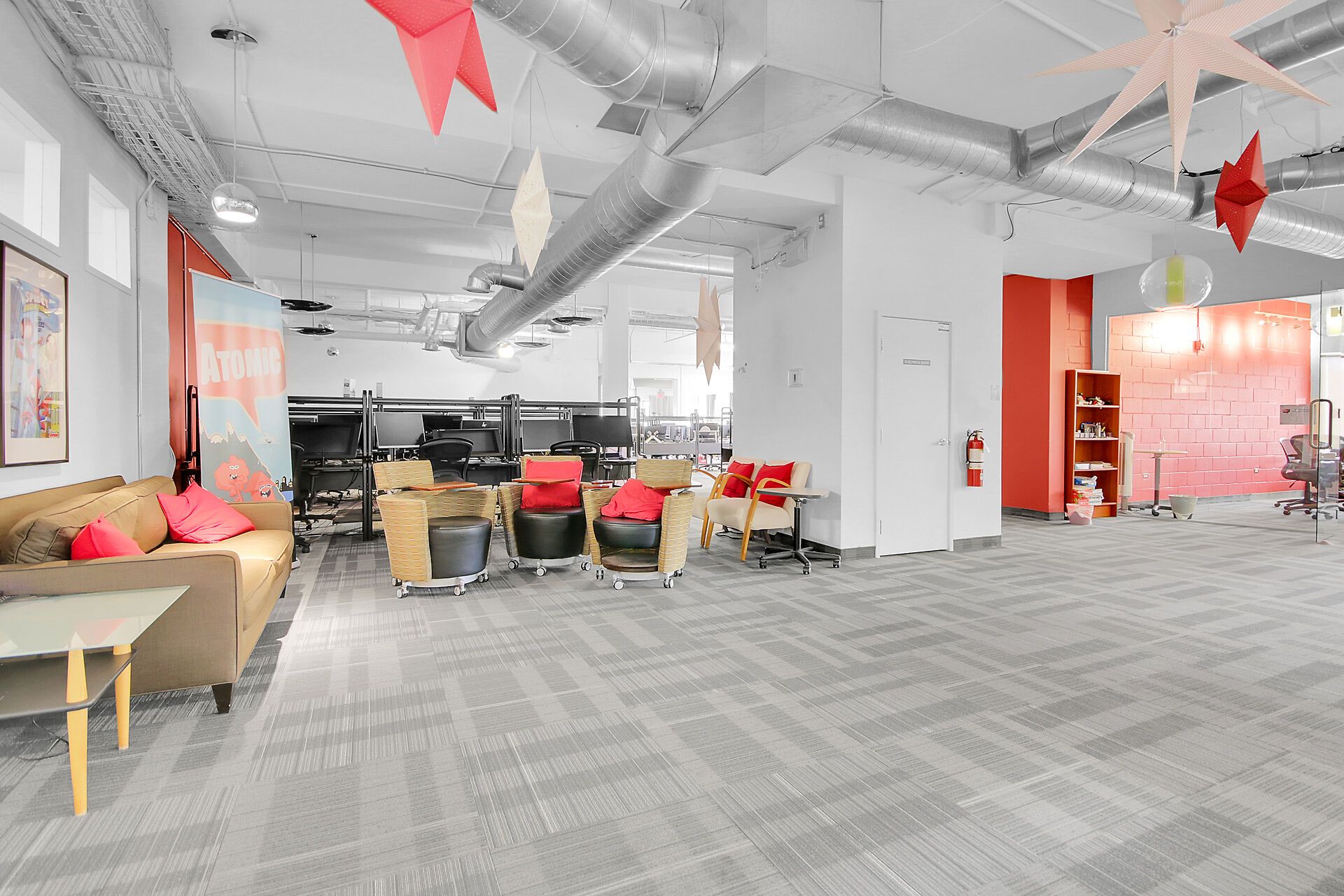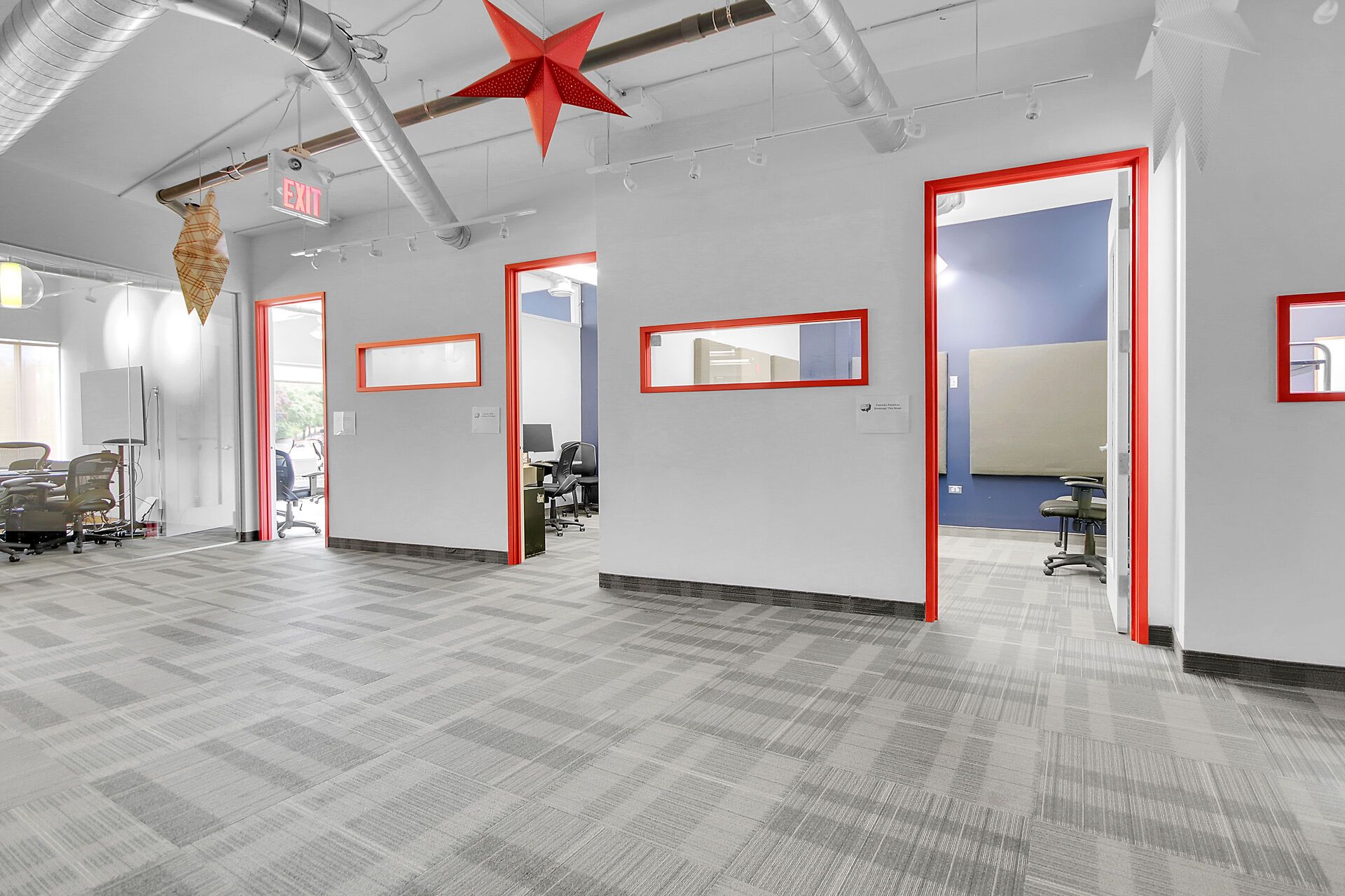 • Includes 10 private offices and a board room for meetings.