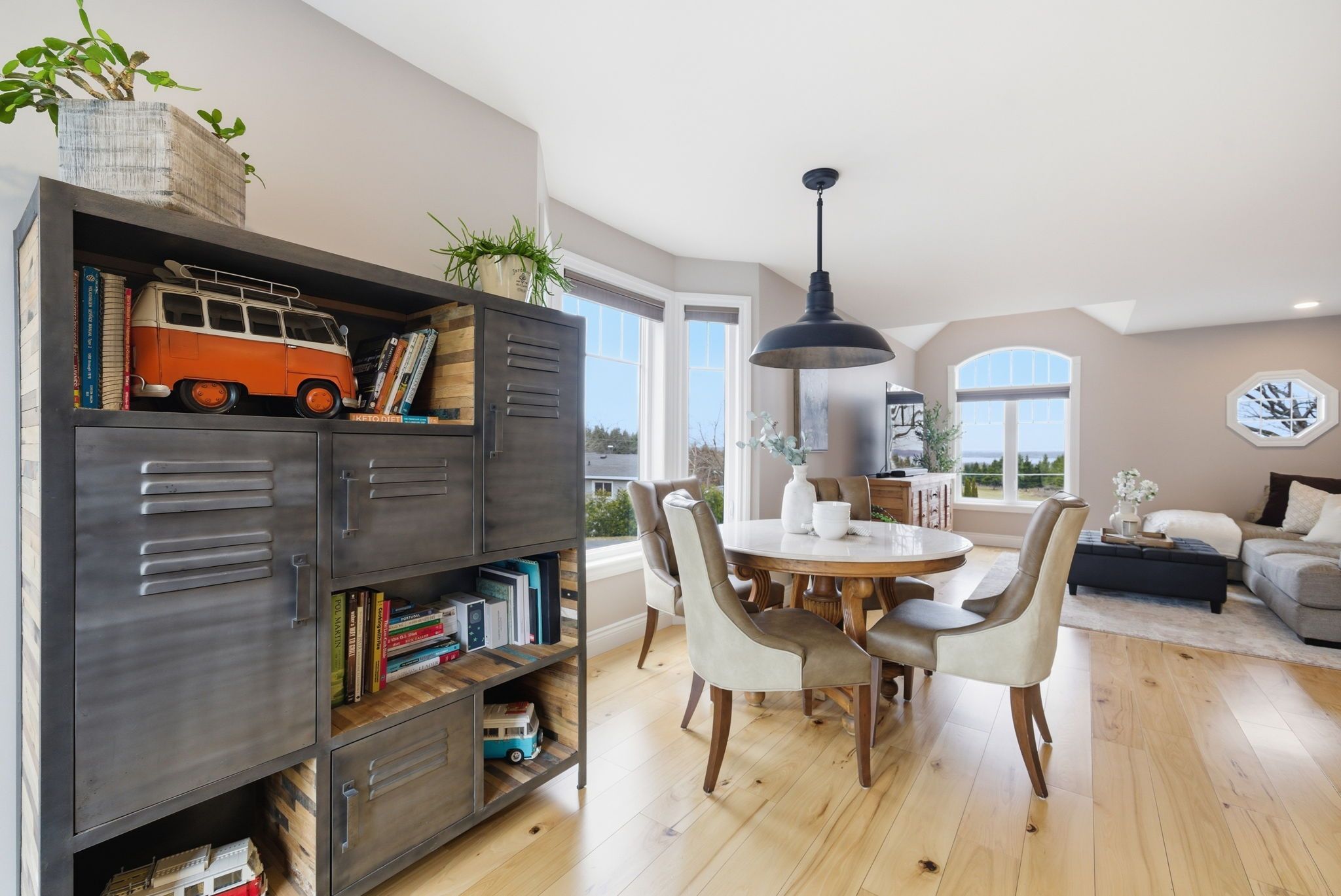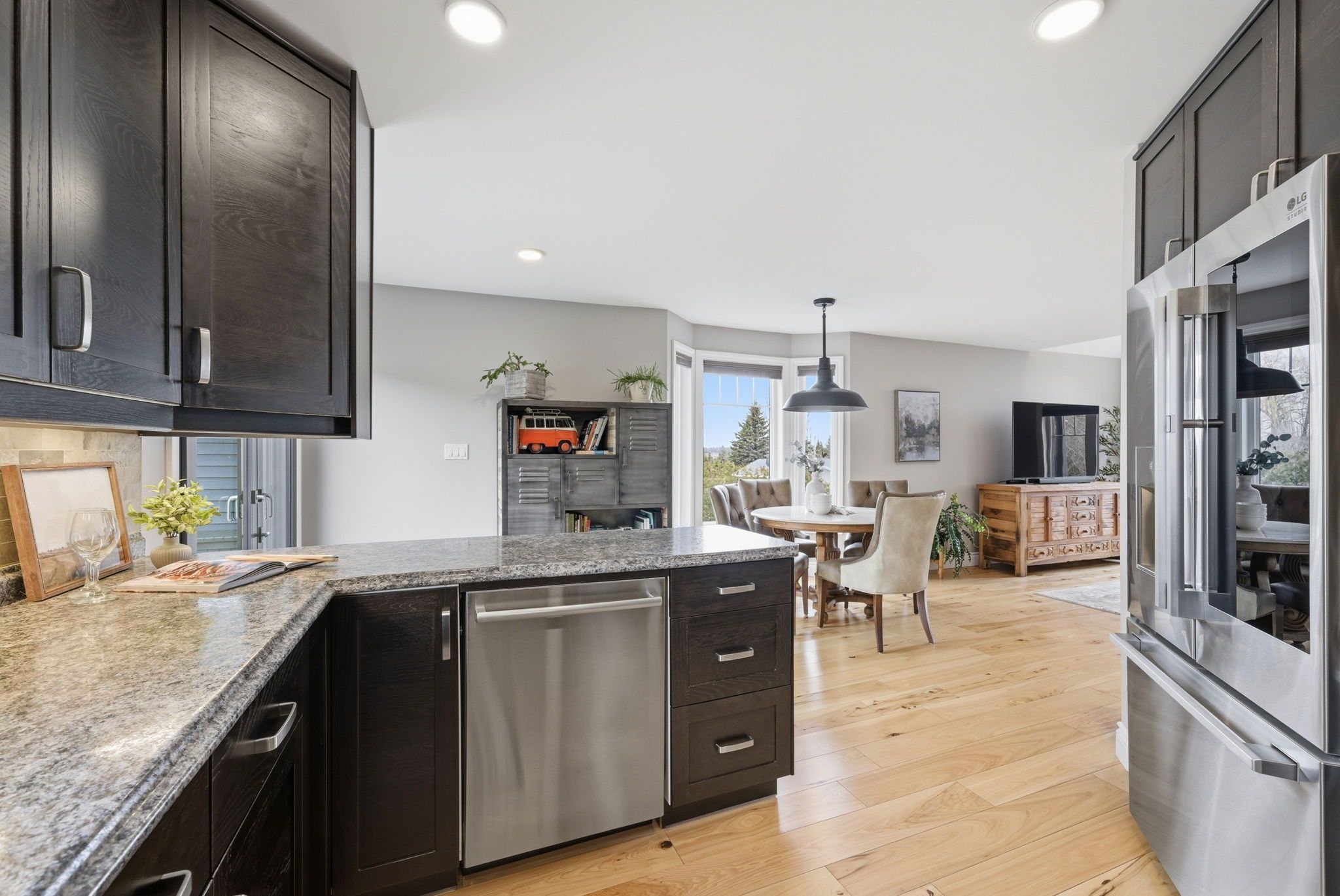 • Bright main floor features hardwood floors and an open layout.