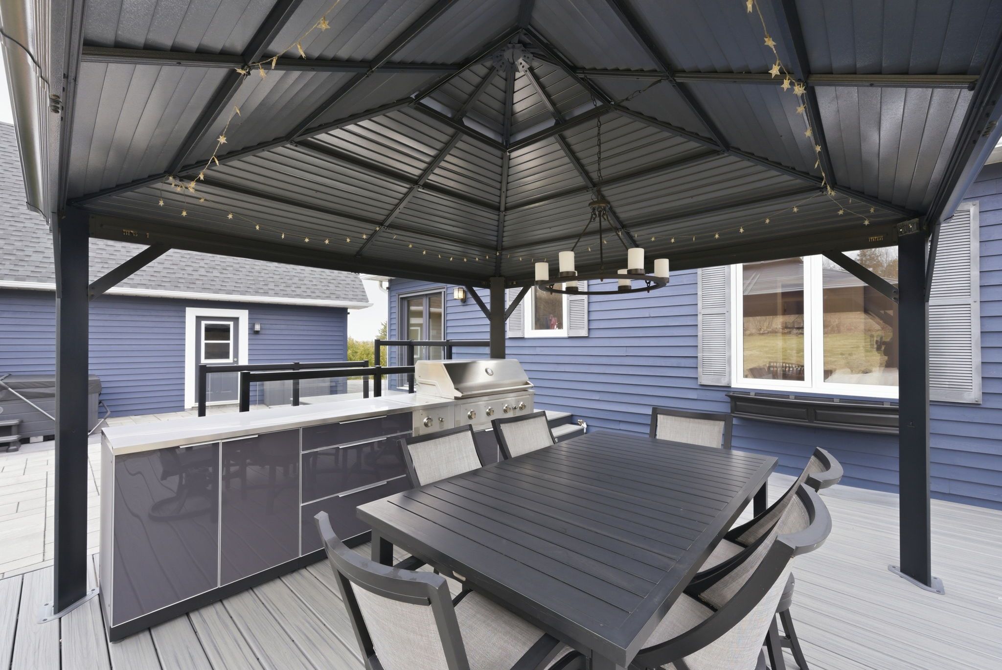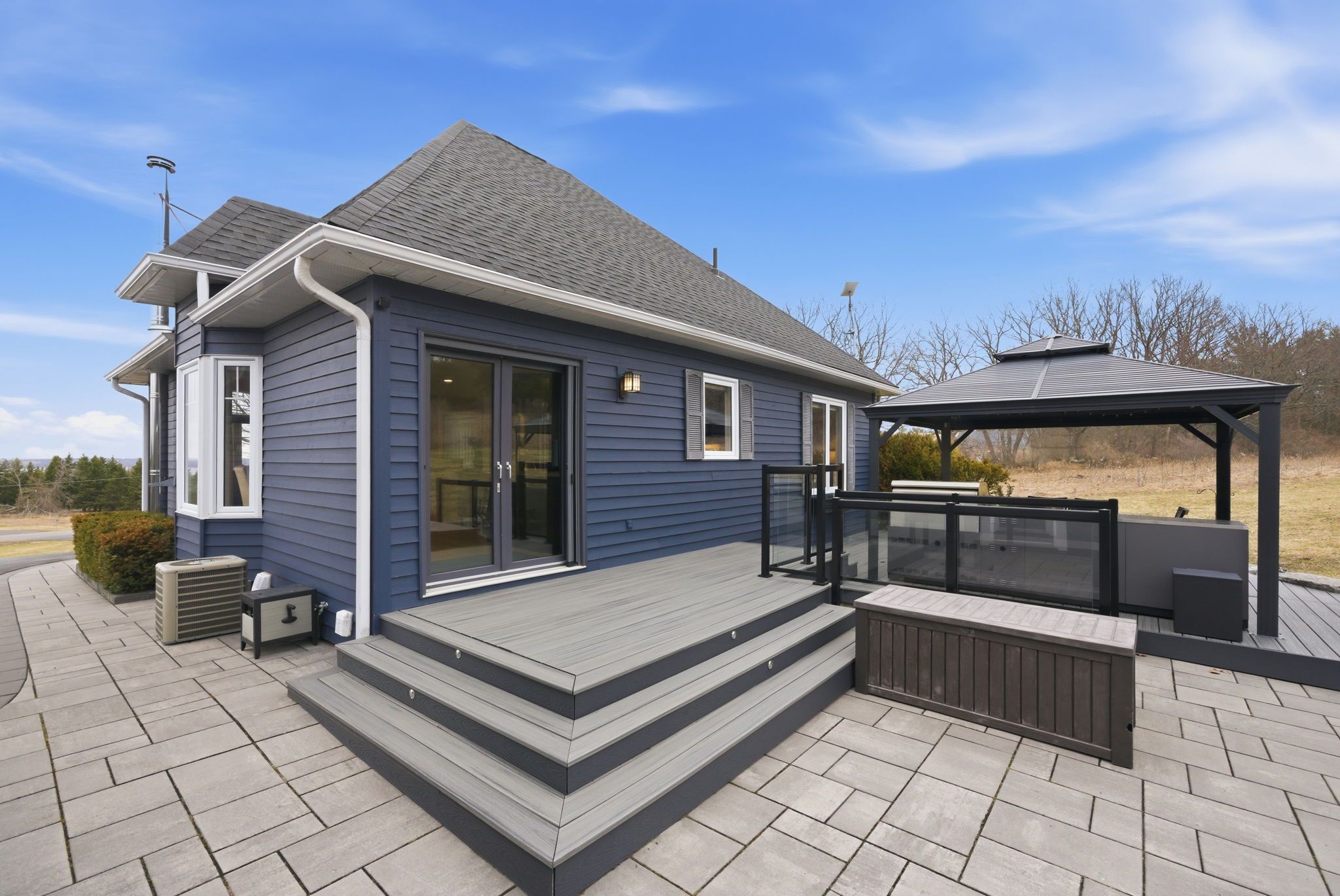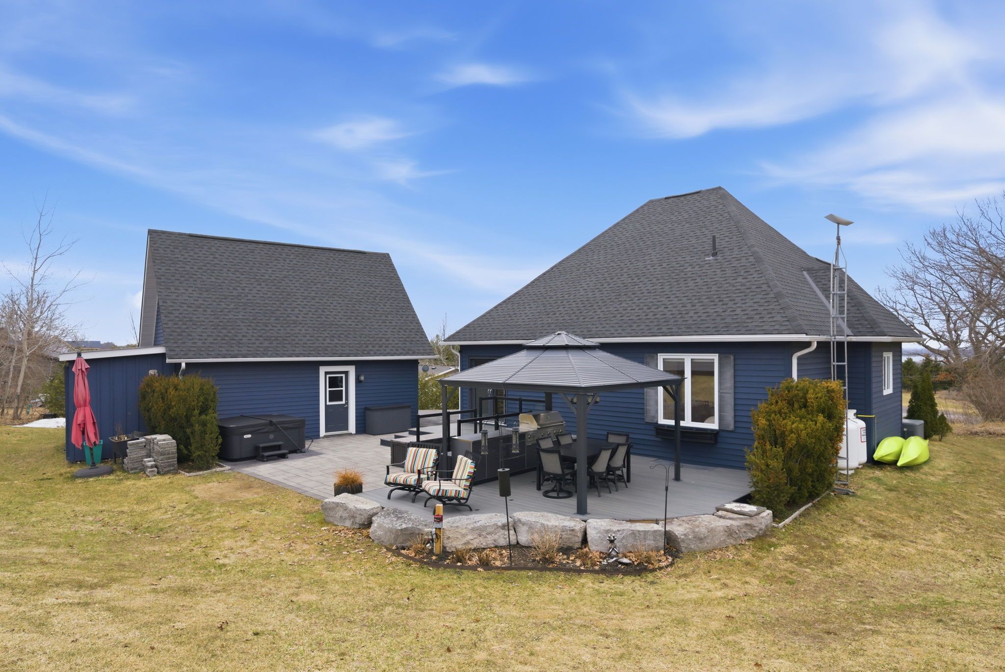 • Outdoor space with updated decking, gazebo, hot tub, and patio.