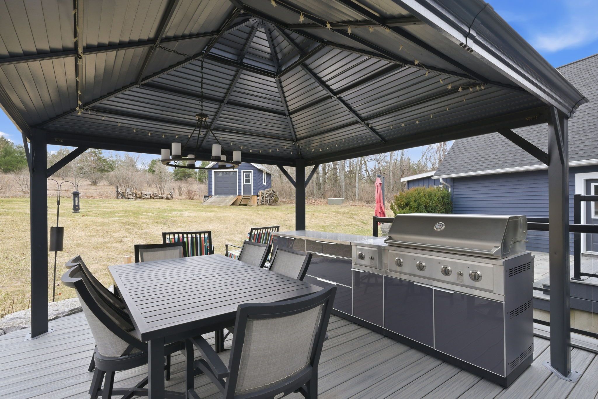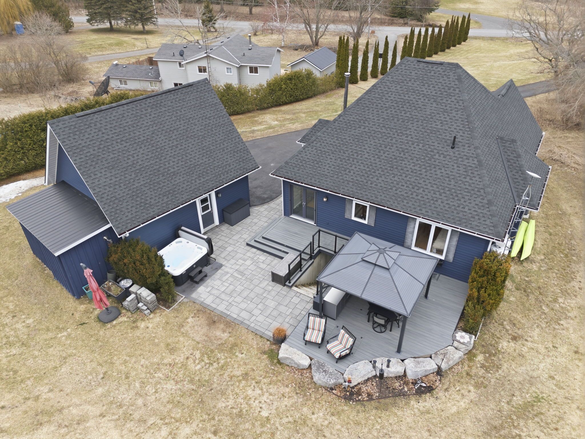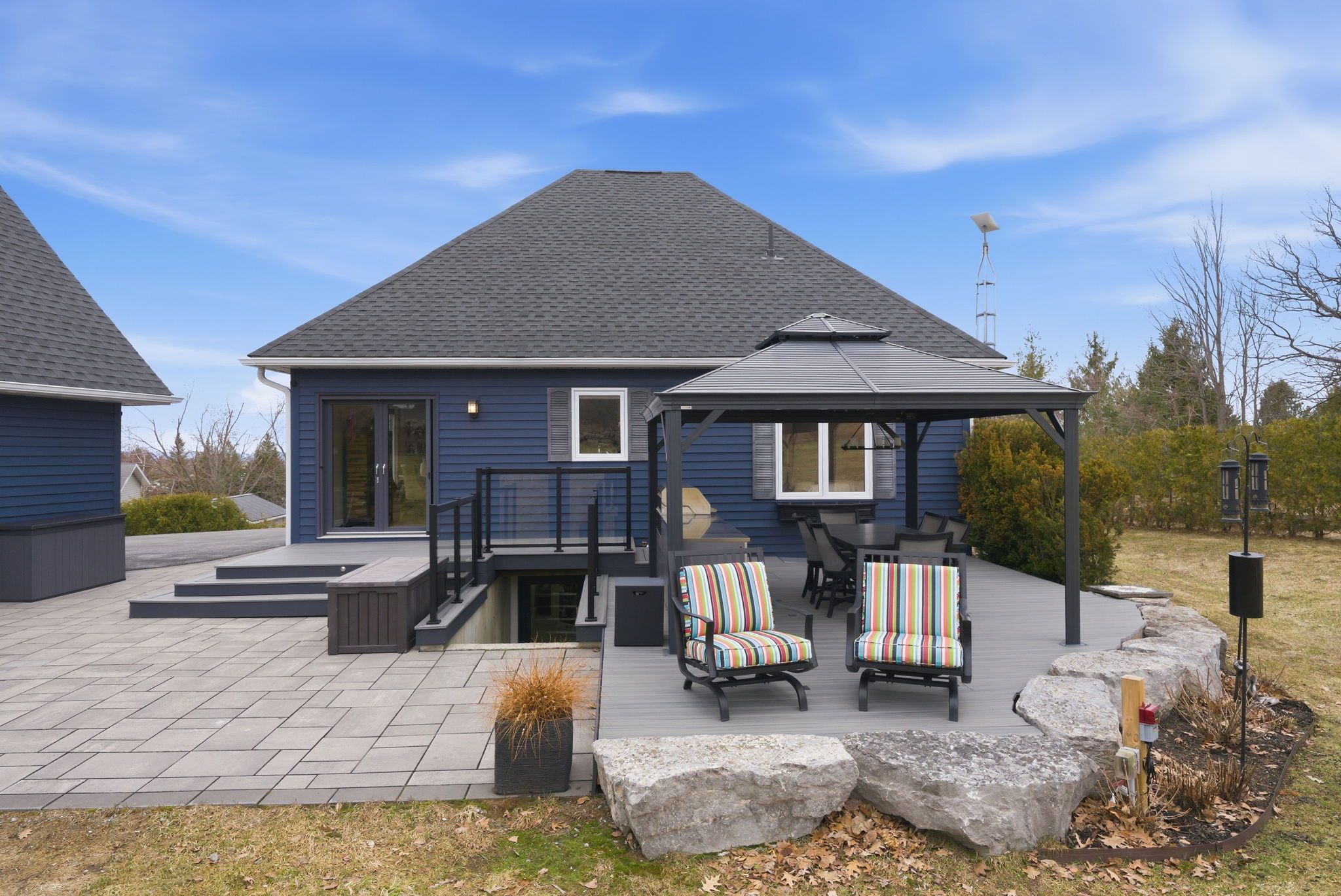 • Outdoor space with updated decking, gazebo, hot tub, and patio.