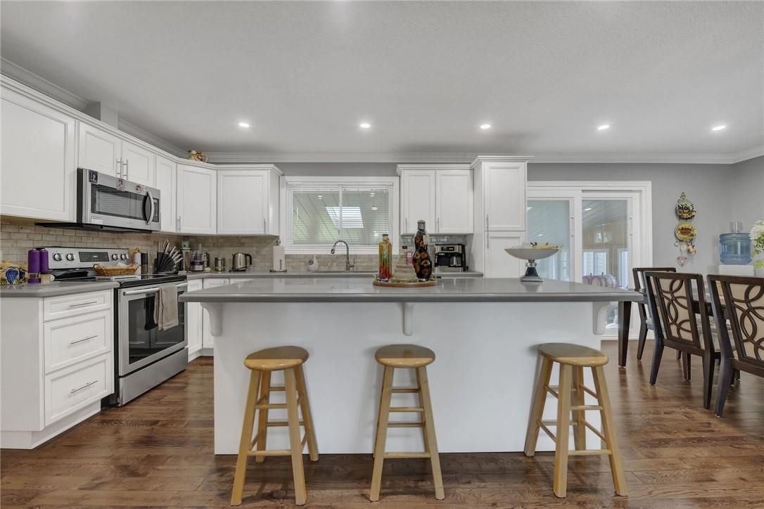 Welcome to breathtaking, beautiful home at 982 highland road e, stoney creek. A rare opportunity to own unique property in rural stoney creek by escaping city traffic, while staying just minutes from city conveniences. Renovated and updated large bungalow features 3 spacious bedrooms with hardwood flooring, open concept kitchen, dining room, living room, 5 pcs bathroom (heated floor) and sun room on main floor. Fully finished lower level features in-law suite set up, with another large eat-in-kitchen, bedroom, full bathroom (heated floor), laundry and plenty of storage space. Step outside to humongous family friendly back yard, with large covered sitting area between garage and home for enjoyment and entertainment of summer days/nights. Standout feature of this property is detached double car garage/workshop. This is dream come true for hobbyist, trades people, or anyone needing ample storage or parking spaces that can fit up to 14-15 cars. Endless possibilities are here. Property offers the ideal combination of function, comfort, and accessibility. 100x200 lot. Rsa
