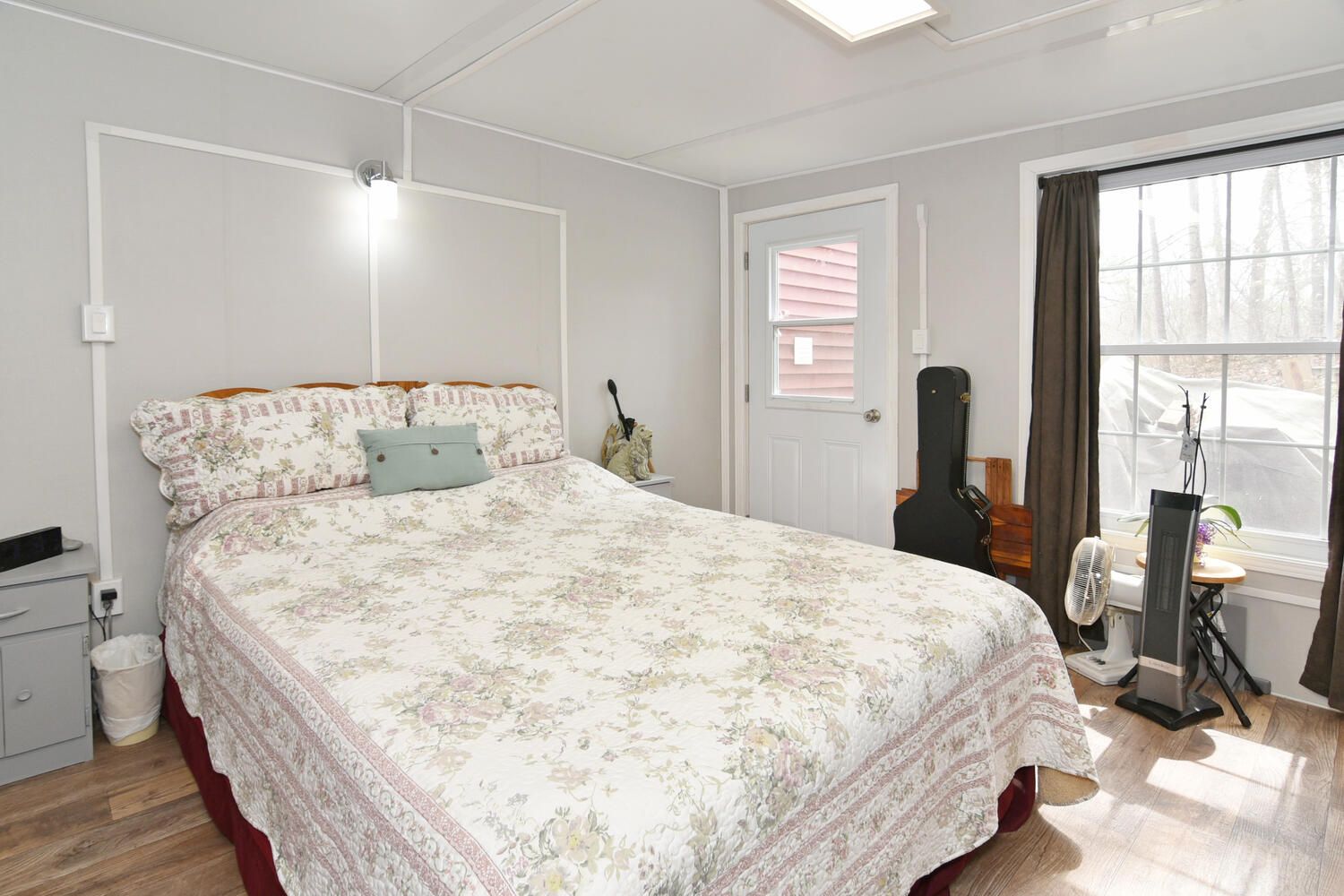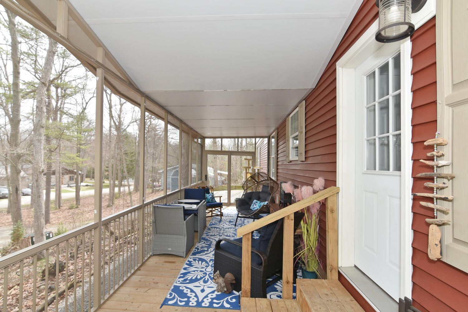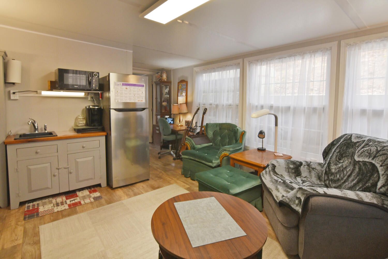 Four season modular home in northville estates... A desirable 55+ community in lambton shores. Built in 2016. Spacious unit with 3 bedrooms and 2 full bathrooms. Walk into the inviting living room with a cathedral ceiling and floor to ceiling gas fireplace featuring stone & barnboard. Beautiful white kitchen with stainless double oven, gas stove, fridge and dishwasher. Dining area can accommodate a large table. Large primary bedroom with built-in vanity and a walkout to a private deck. Cozy 2nd bedroom and a lovely 3-piece bathroom with large shower stall. Laundry closet. Lvp flooring and pot lights throughout. The add-on includes another living room with kitchenette, large bedroom with door to a deck, and a 3 piece bathroom with walk-in shower. Forced-air gas furnace and c/a. Hwt owned. Outdoor features include a screened-in 3-season sunroom, covered front veranda, new shingles (2023) and shed. Monthly fees will be $645. 69 which includes land lease, property tax, garbage fee and sewer testing. Water is metered and billed quarterly. Amenities include an inground pool, club house and playground for the grandchildren. Close to restaurants, wineries, golf and the beach!