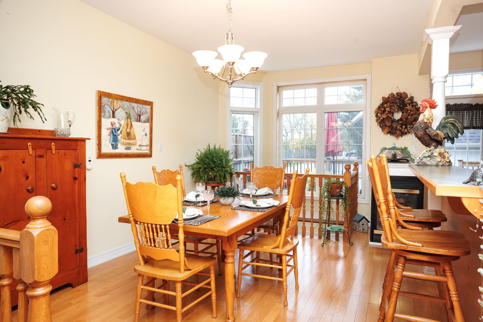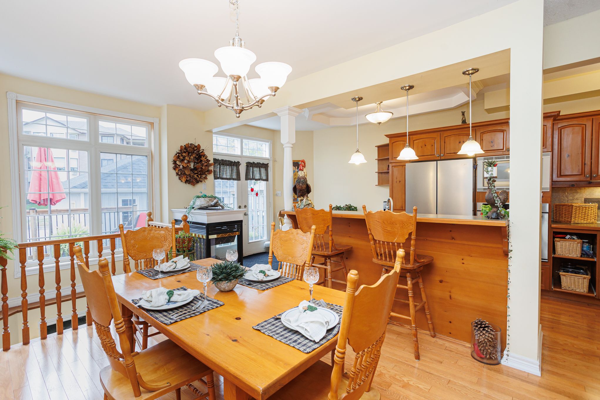 • Cozy gas fireplace adds warmth to the dining and kitchen area.