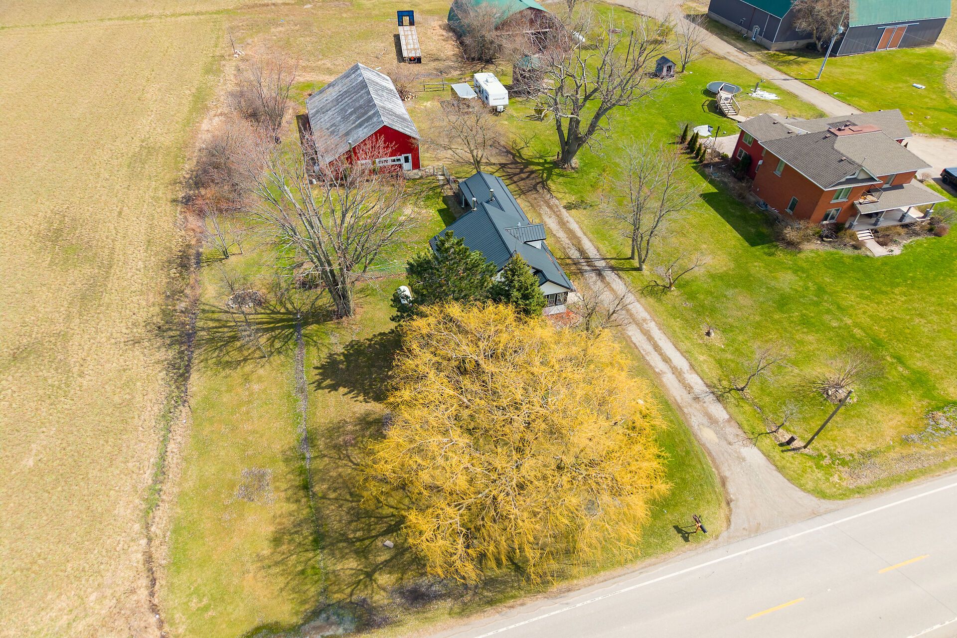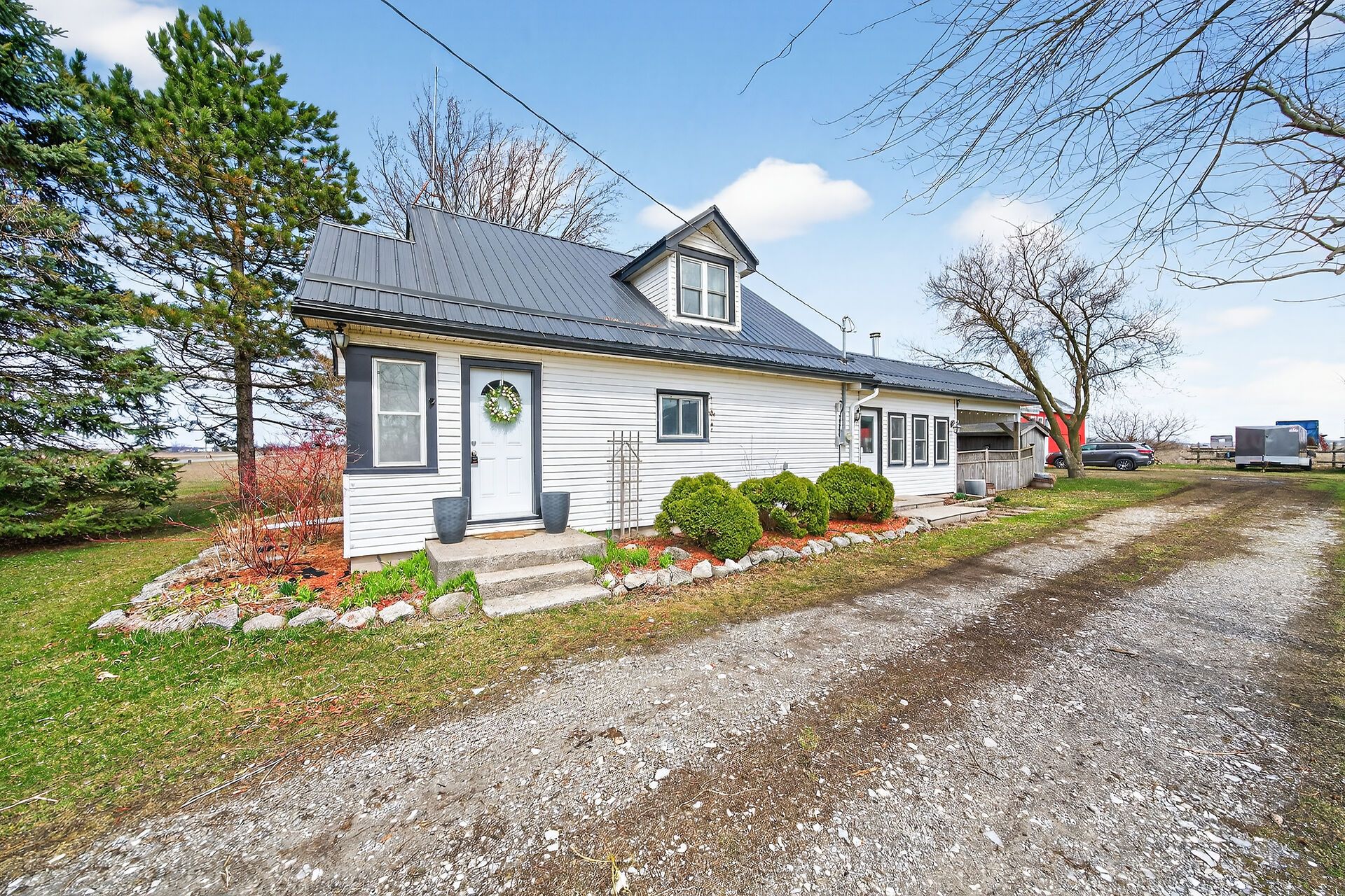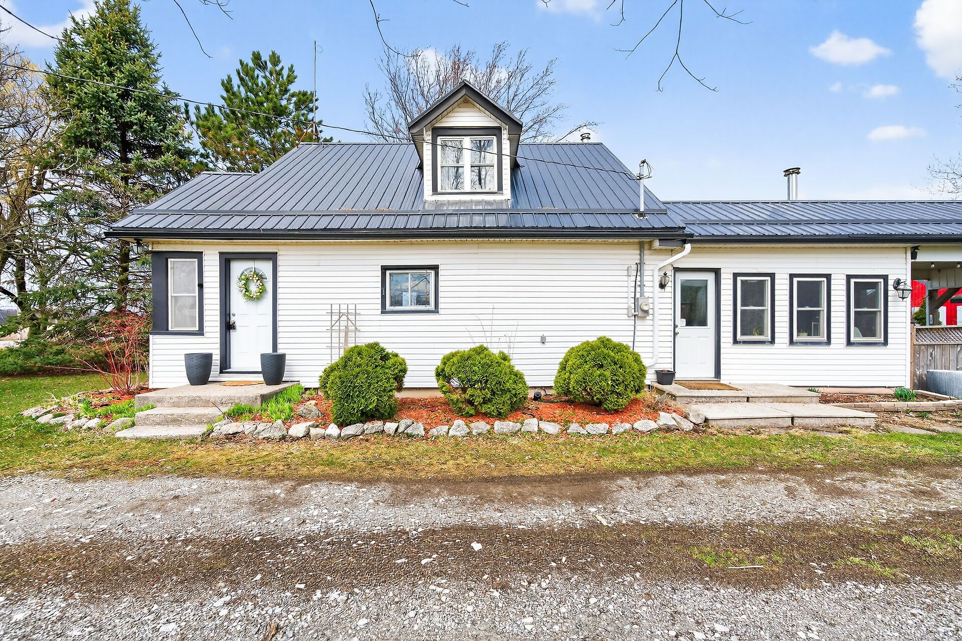 Beautifully presented 3 bedroom home set on picturesque 90' x 214' lot on desired cheapside road with sought after 32' x 60' detached garage with 32' x 40' heated area with concrete floor, hydro, woodstove, & hoist providing a dream shop / space for the hobbyist, mechanic, or business owner. Great curb appeal set amongst mature treed lot, steel roof, partially fenced back yard, & back covered porch area with hot tub. The flowing interior has been tastefully updated throughout highlighted by updated eat in kitchen & island with granite countertop, multiple rustic wood beamed accents throughout, large living room, back family room with woodstove, mf laundry, updated 4 pc bathroom, main floor bedroom, & 2 spacious upper level bedrooms. The partial basement houses the mechanicals and provides storage. Recent updates throughout include 2022 - high efficiency stage 2 furnace / heat pump combination for economical heating & a/c, fixtures, & lighting, flooring, uv light & water filters, & more. The complete country package at a realistic price!