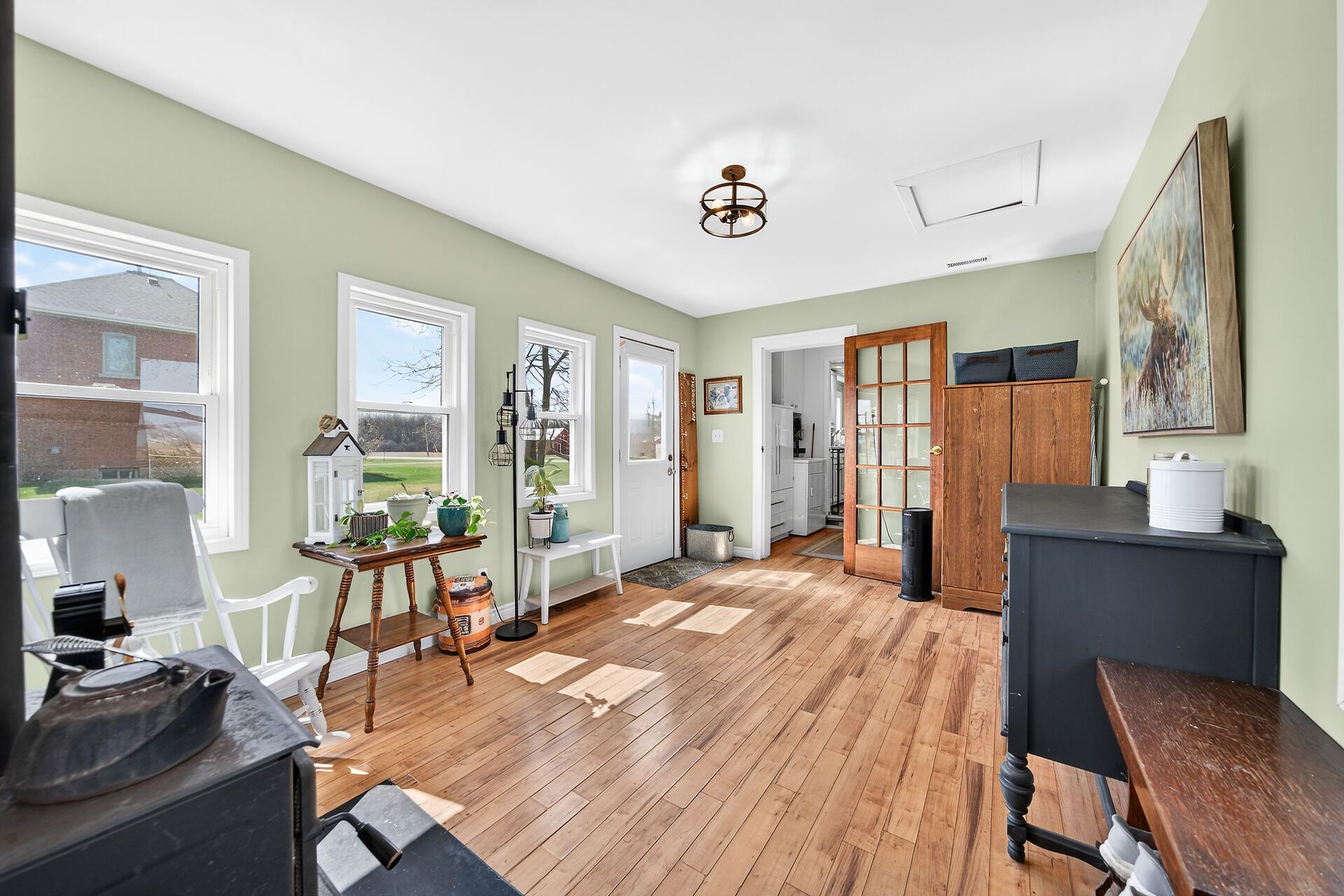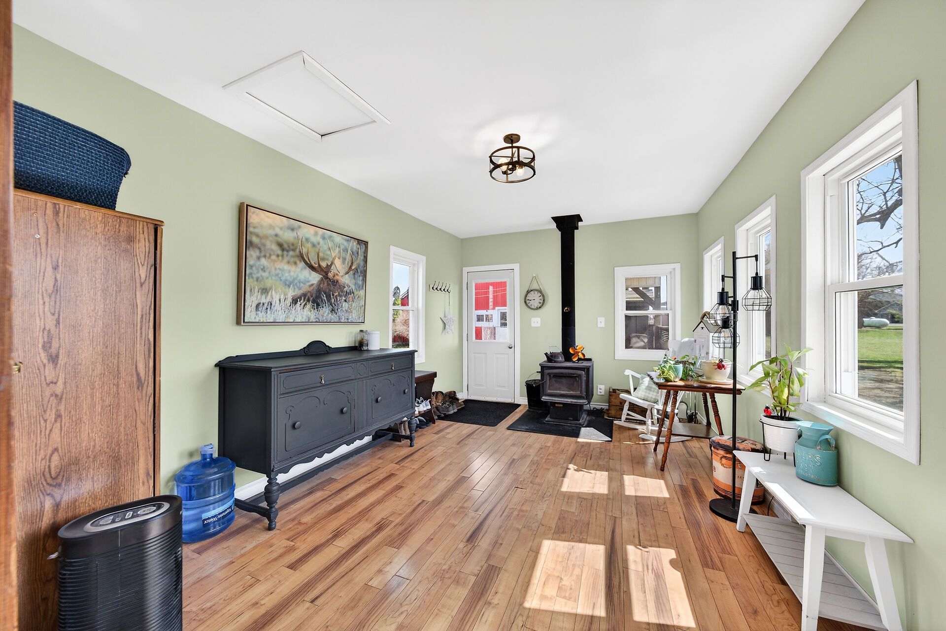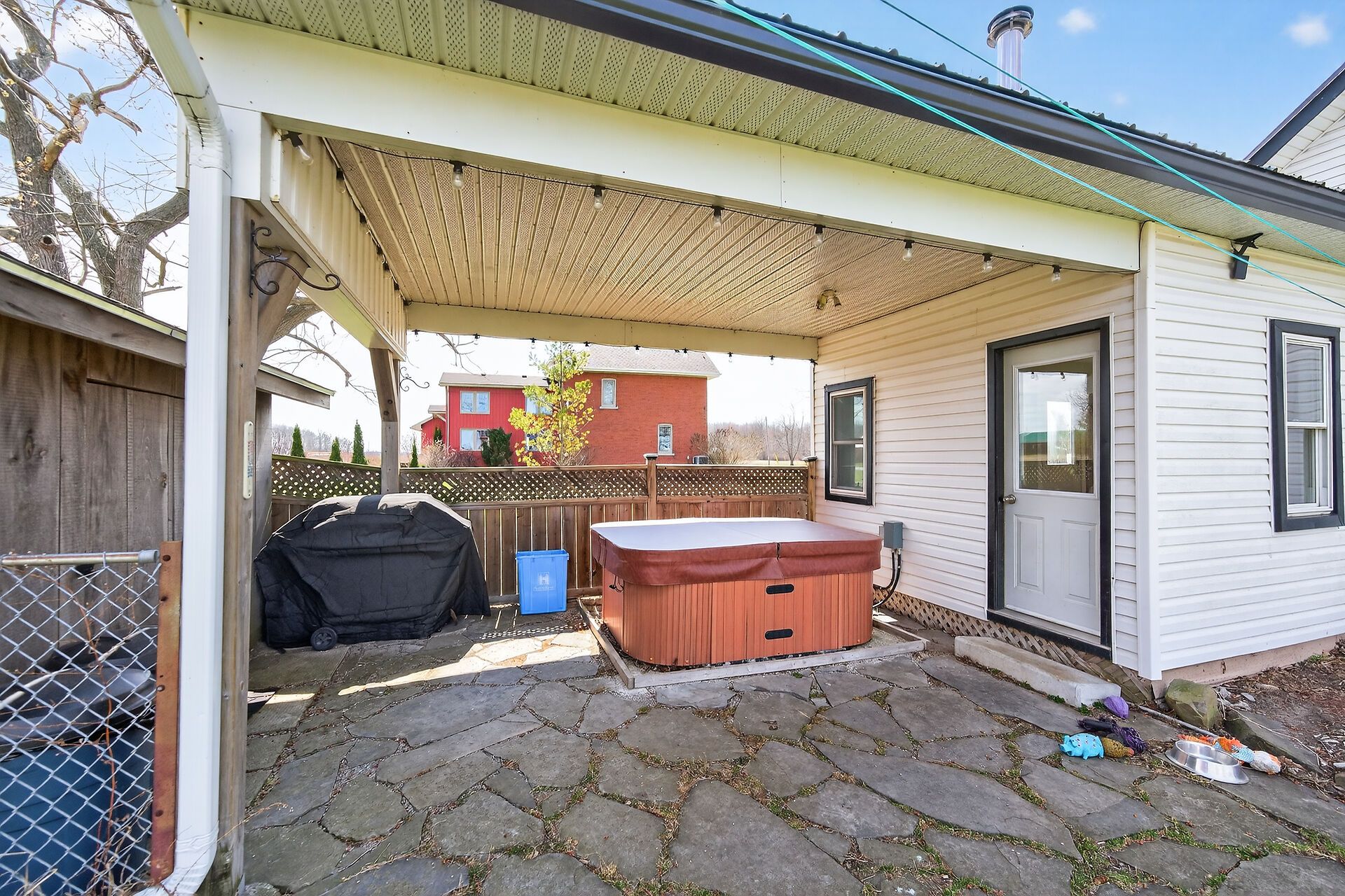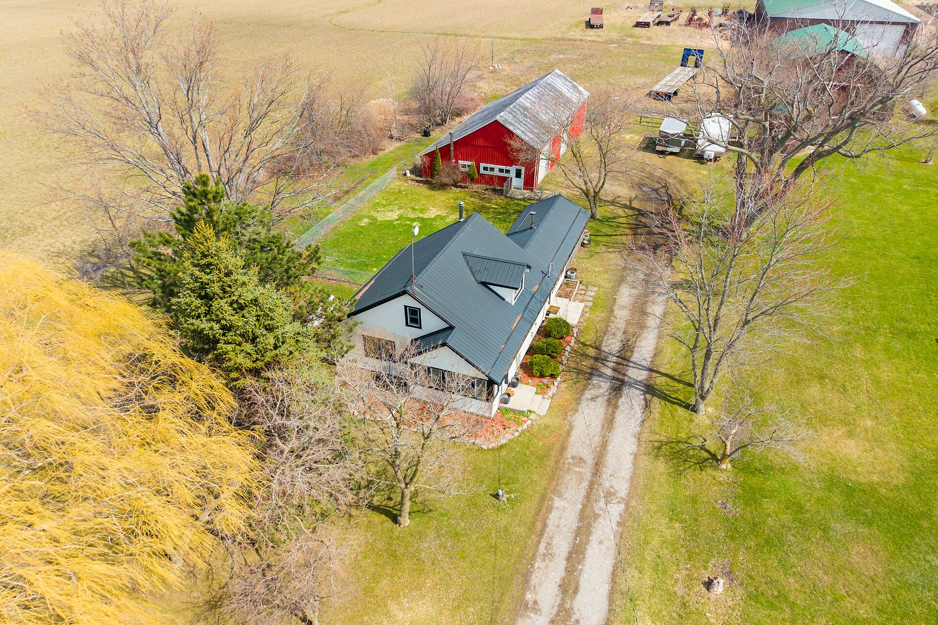 Beautifully presented 3 bedroom home set on picturesque 90' x 214' lot on desired cheapside road with sought after 32' x 60' detached garage with 32' x 40' heated area with concrete floor, hydro, woodstove, & hoist providing a dream shop / space for the hobbyist, mechanic, or business owner. Great curb appeal set amongst mature treed lot, steel roof, partially fenced back yard, & back covered porch area with hot tub. The flowing interior has been tastefully updated throughout highlighted by updated eat in kitchen & island with granite countertop, multiple rustic wood beamed accents throughout, large living room, back family room with woodstove, mf laundry, updated 4 pc bathroom, main floor bedroom, & 2 spacious upper level bedrooms. The partial basement houses the mechanicals and provides storage. Recent updates throughout include 2022 - high efficiency stage 2 furnace / heat pump combination for economical heating & a/c, fixtures, & lighting, flooring, uv light & water filters, & more. The complete country package at a realistic price!