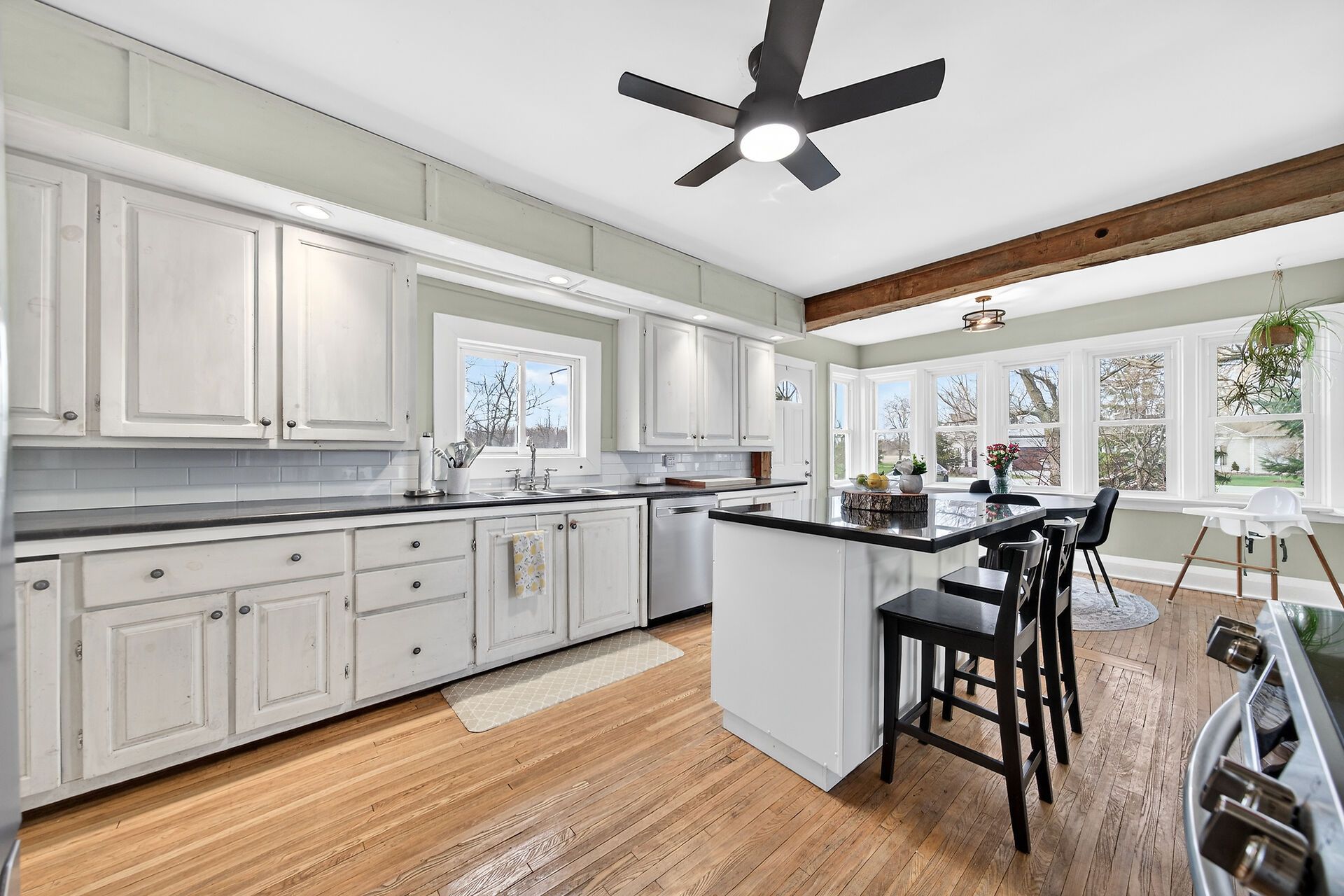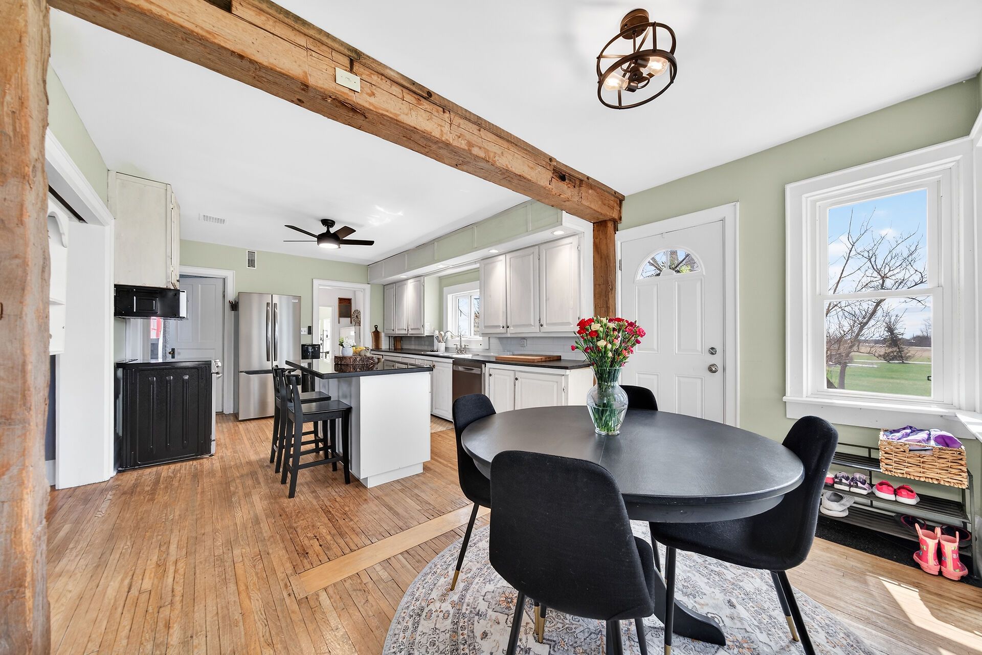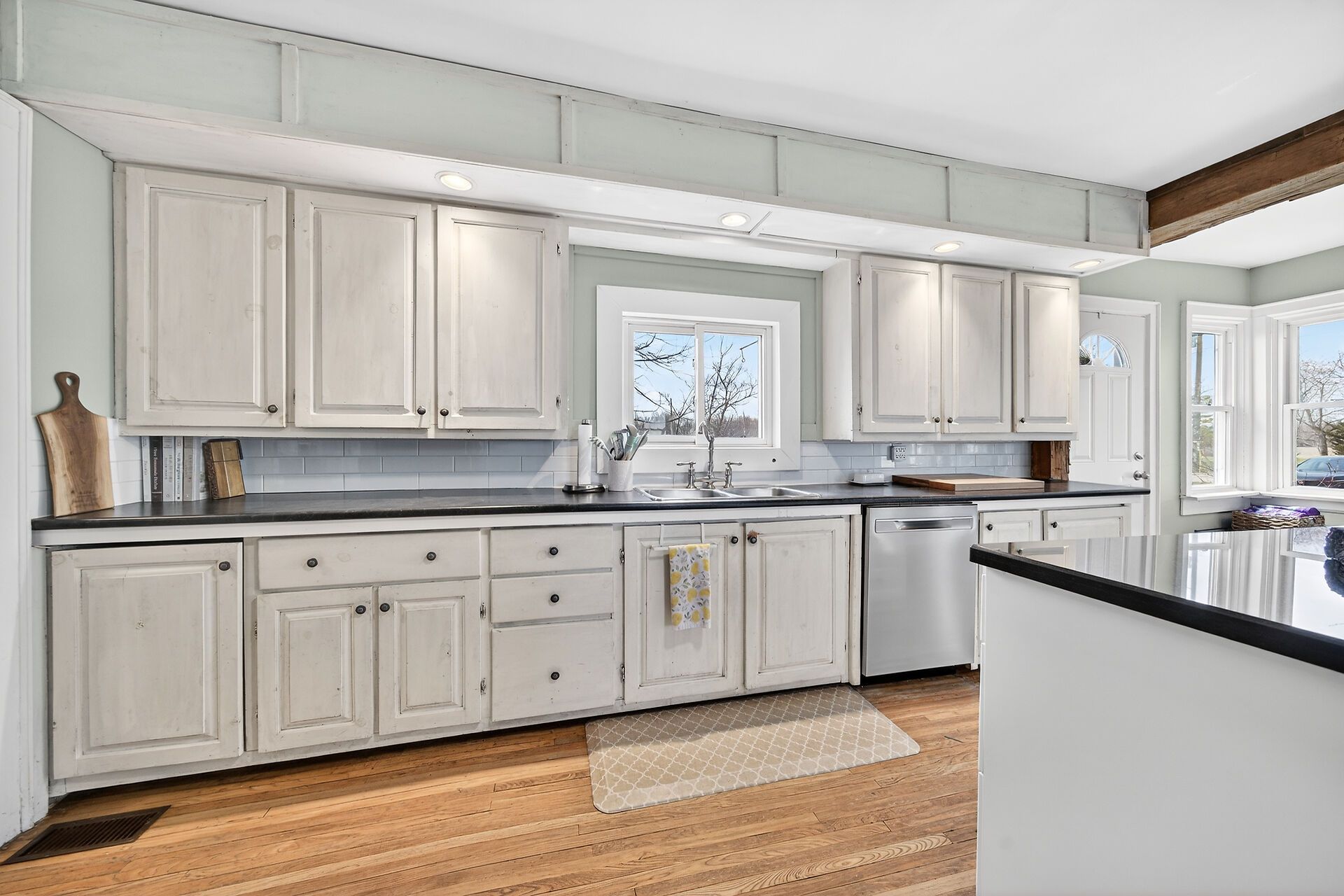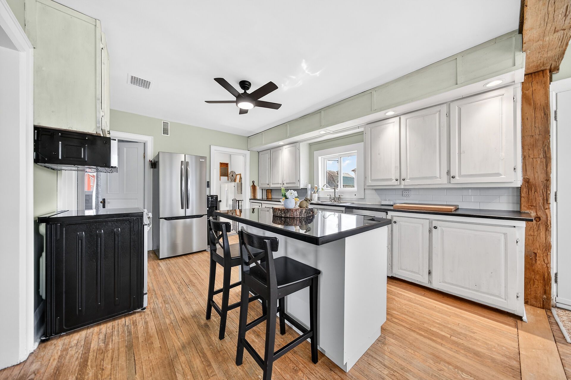 • Updated eat-in kitchen with granite countertops and rustic accents.