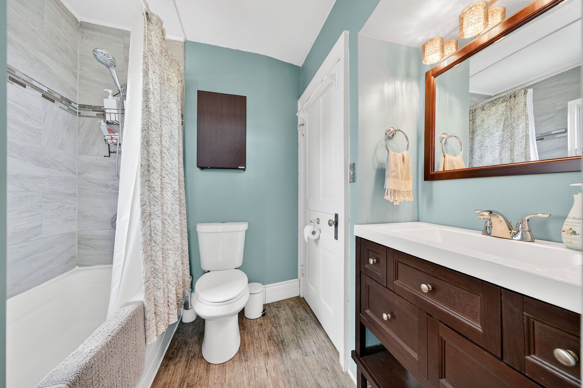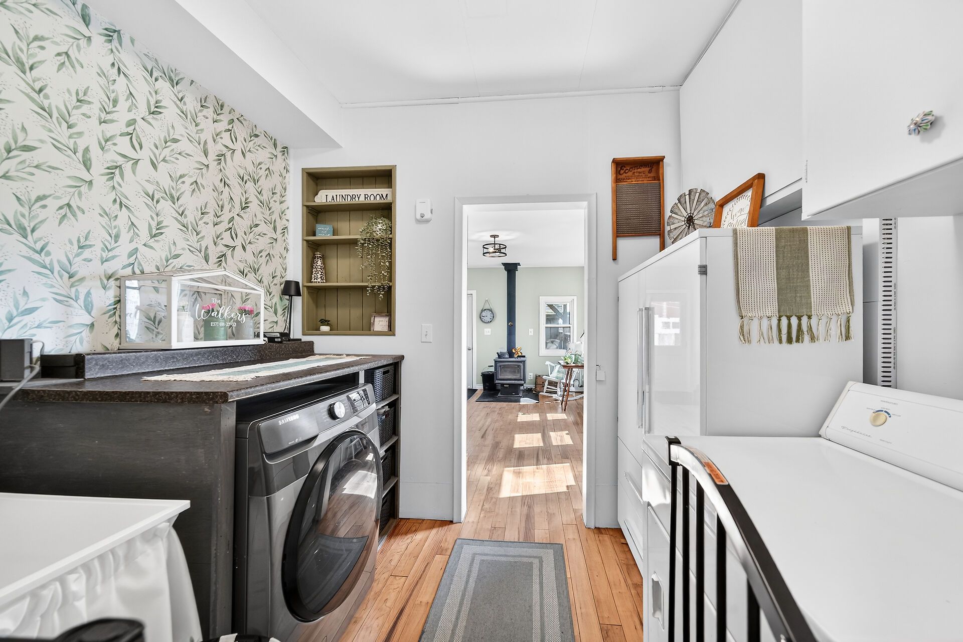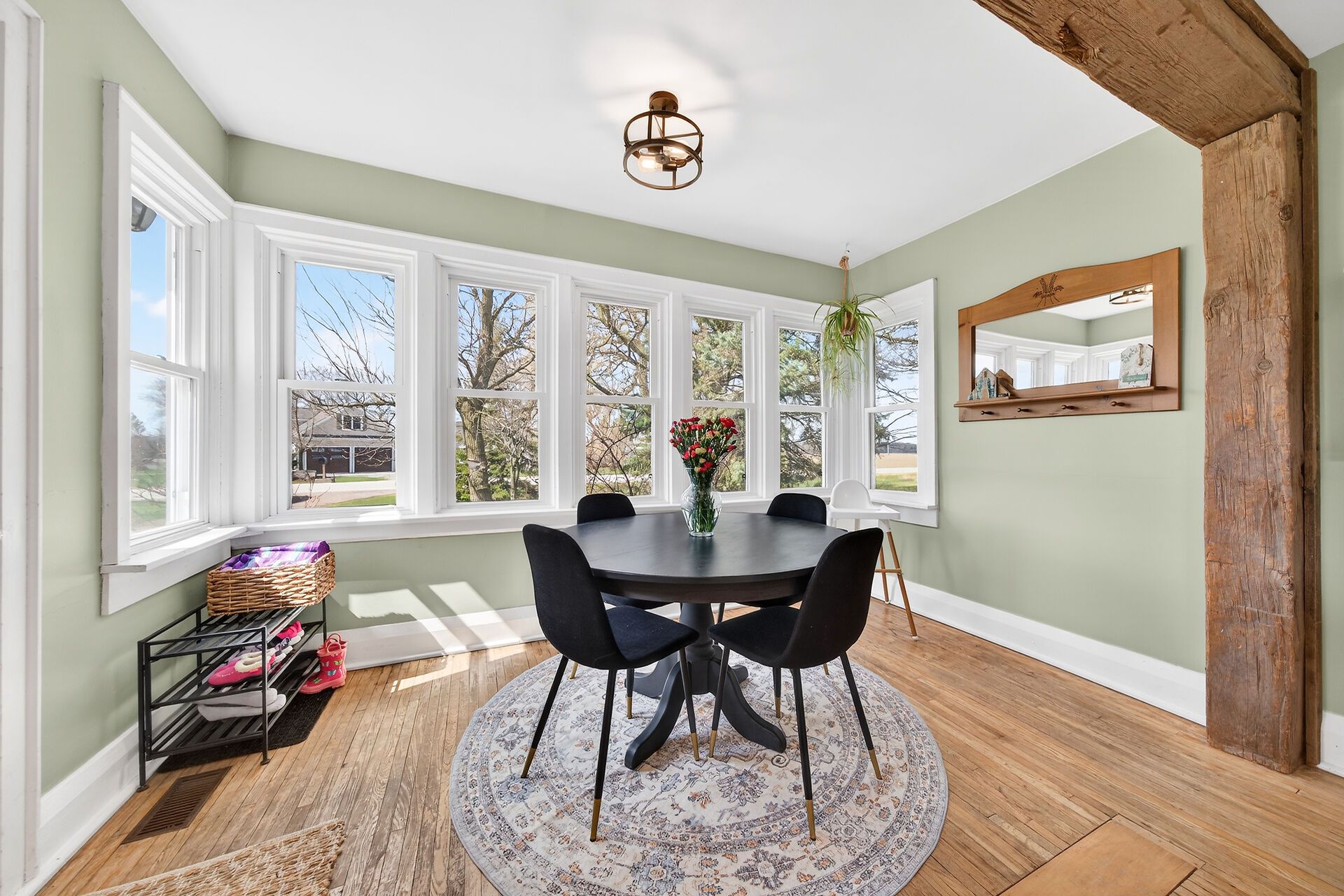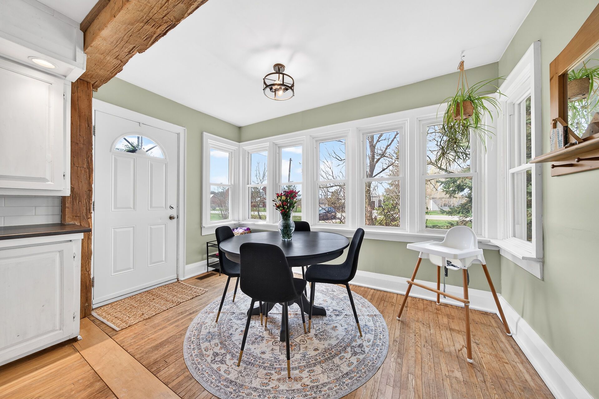 • Updated eat-in kitchen with granite countertops and rustic accents.