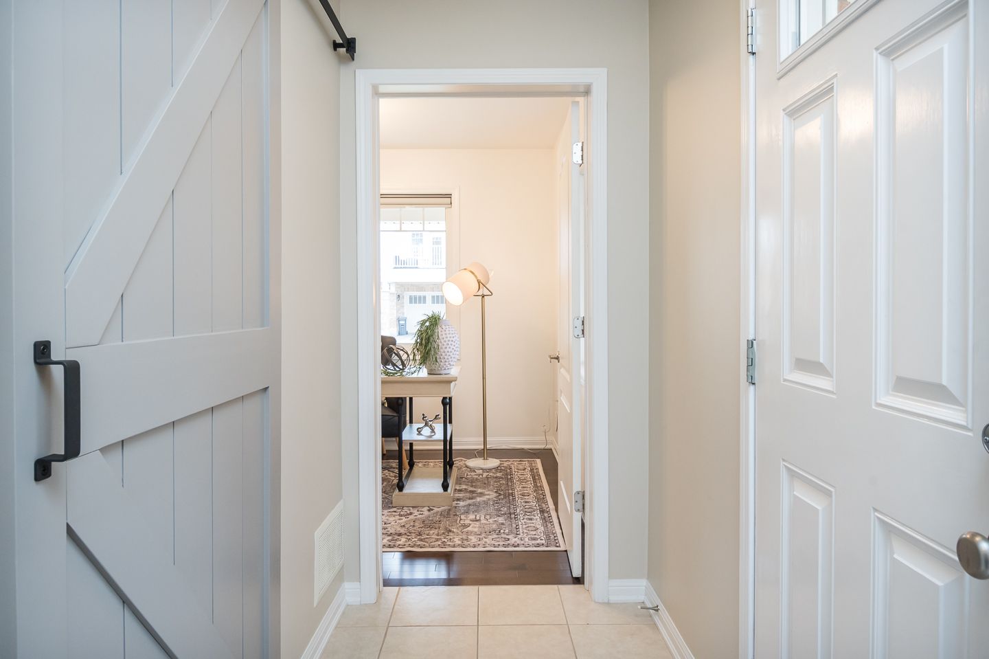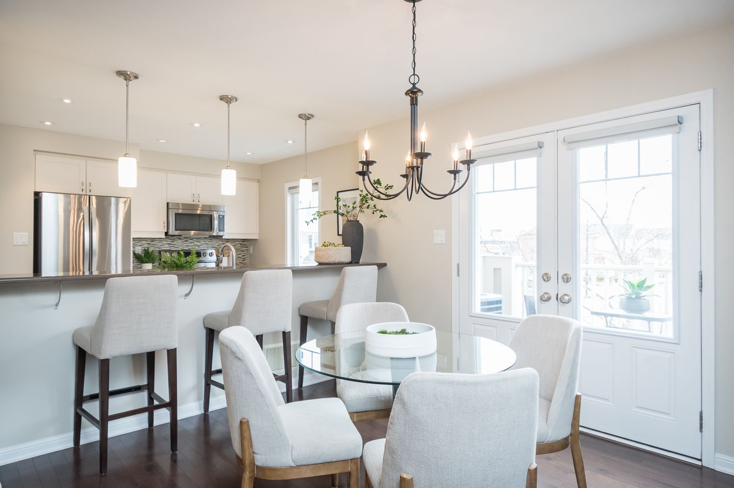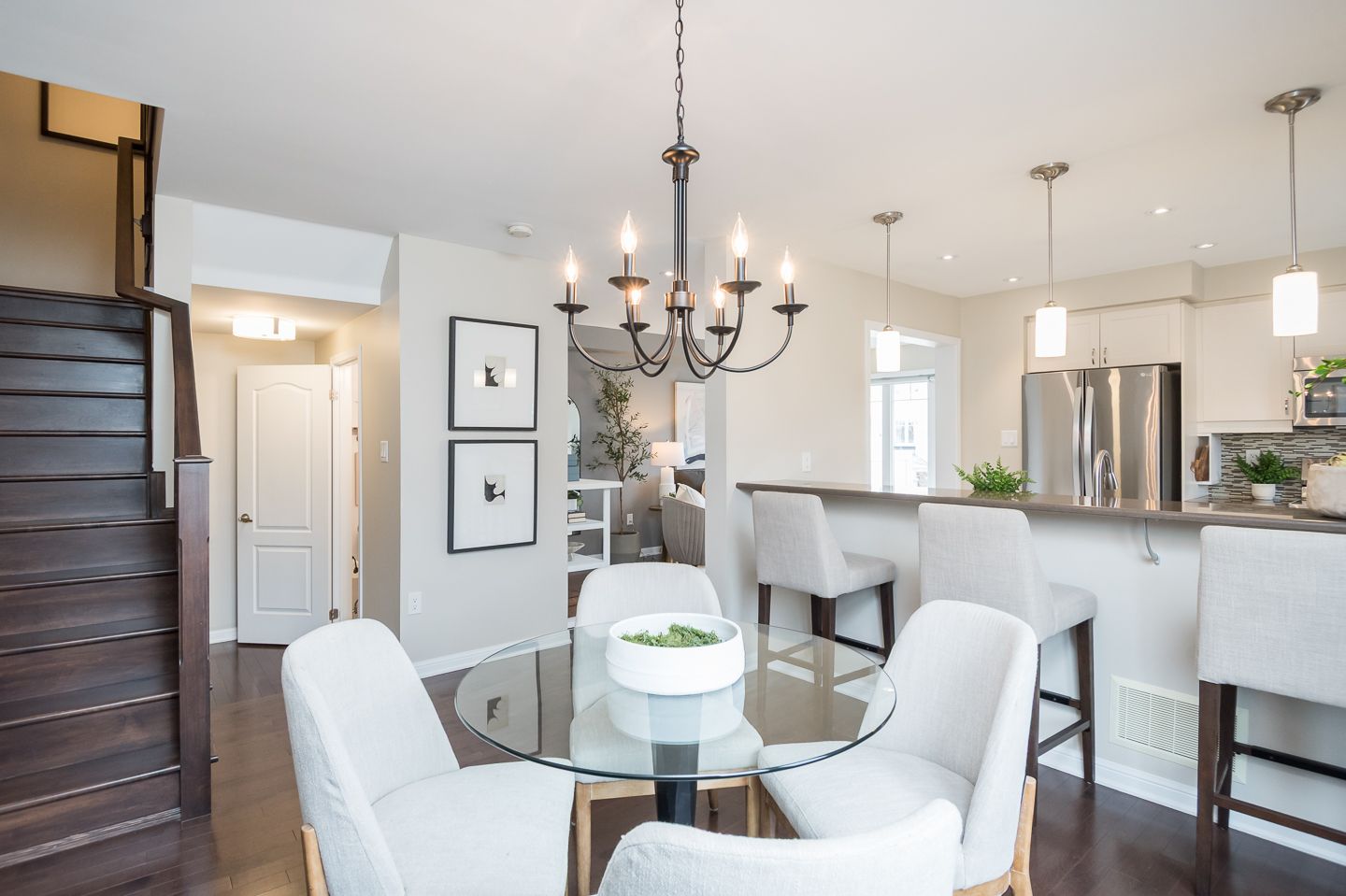 Bright. Freehold. Corner living done right. Welcome to 984 nadalin heights, a meticulously maintained sumac corner model in milton's sought-after willmott neighbourhood. This is true freehold living with no sidewalk and a private driveway, offering extra parking and a little more breathing room. Set in a friendly pocket where evening walks often come with a wave or quick chat... If that's your thing. The main floor features a dedicated den, ideal for working from home with clear separation from your living space, so you can actually "leave work" at the end of the day. This flexible room easily functions as a guest bedroom, fitness area, or quiet retreat. Inside access from the extra-long garage leads into a practical laundry/utility space, complemented by a large coat closet to keep daily life organized. Up the hardwood staircase, the second level opens into a bright, welcoming living area. As a corner unit, natural light pours into the living room, dining space, and kitchen throughout the day. Step out to the bbq balcony for morning coffee, summer grilling, or a quiet moment outdoors. The kitchen offers ample cabinetry, a functional layout, and a breakfast bar for casual dining. Designed to be spacious enough to entertain, without the burden of excess space to heat, clean, and maintain. The upper level features two generous bedrooms and two full bathrooms. The primary suite includes a walk-in closet and 3-piece ensuite, while the second bedroom has convenient access to a 4-piece bath, ideal for guests, children, or roommates. Exceptionally maintained and truly move-in ready. If you've been searching for a bright, freehold corner home in an established neighbourhood, this could be your door to a bright new beginning.