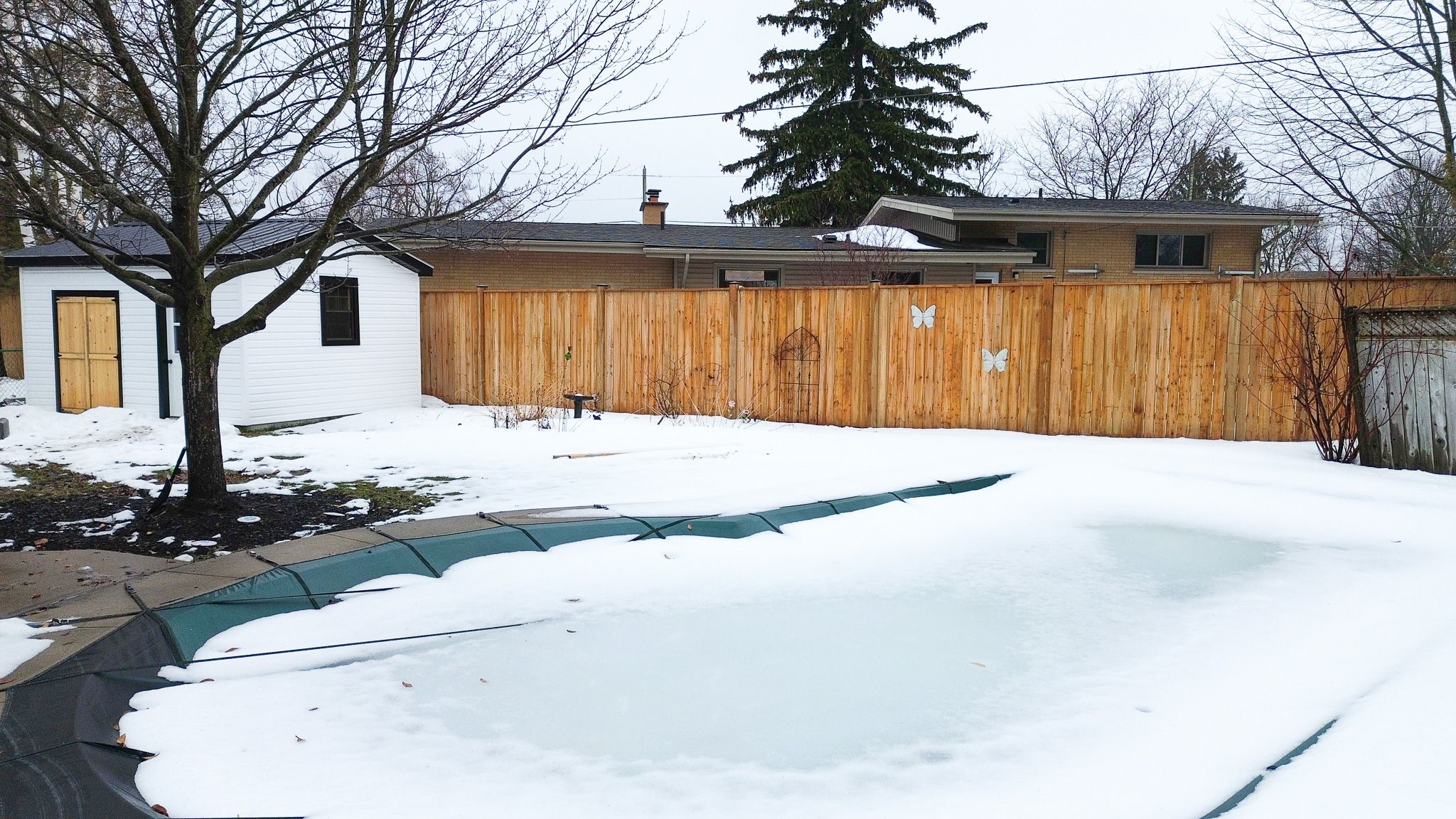 • Fully fenced backyard with an inground pool and plenty of grassy space.