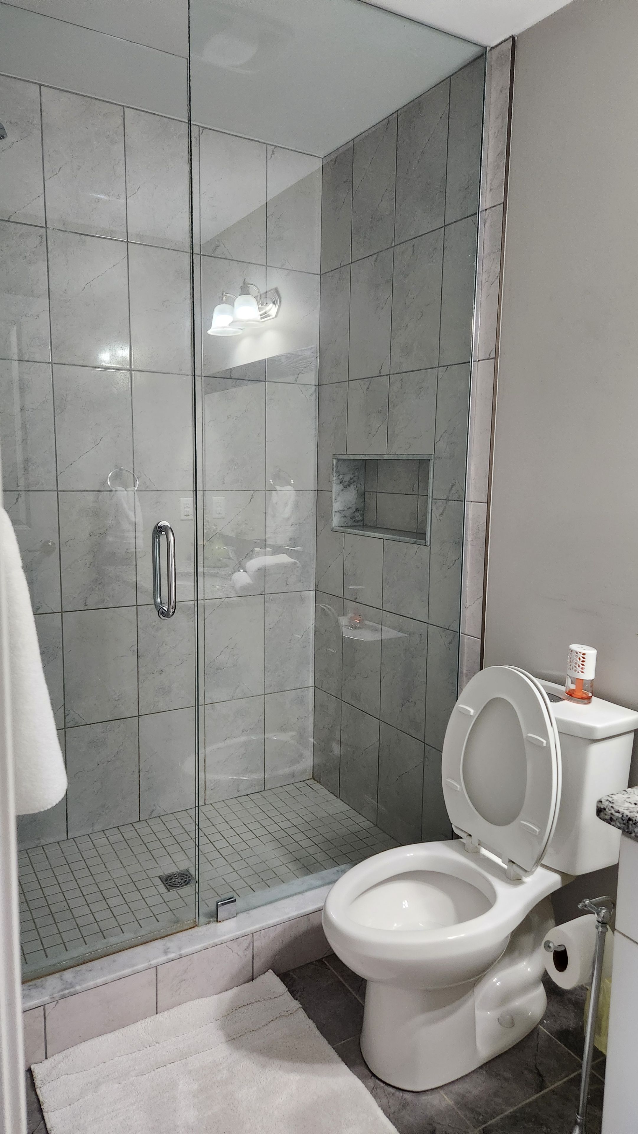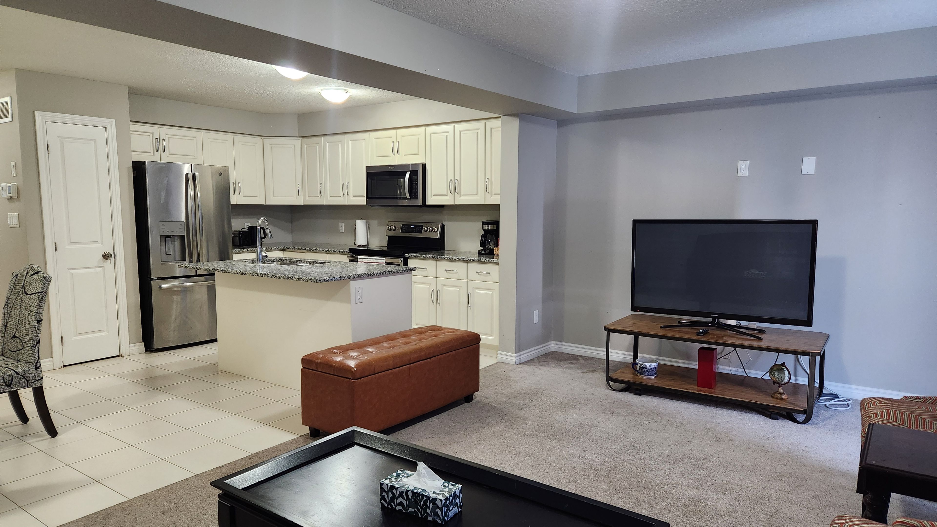 • Fully equipped kitchen with stainless steel appliances and granite countertops.