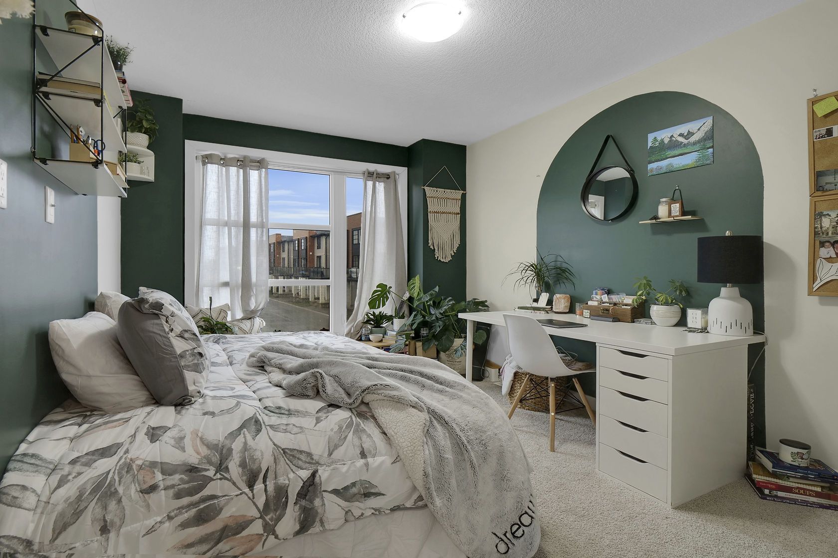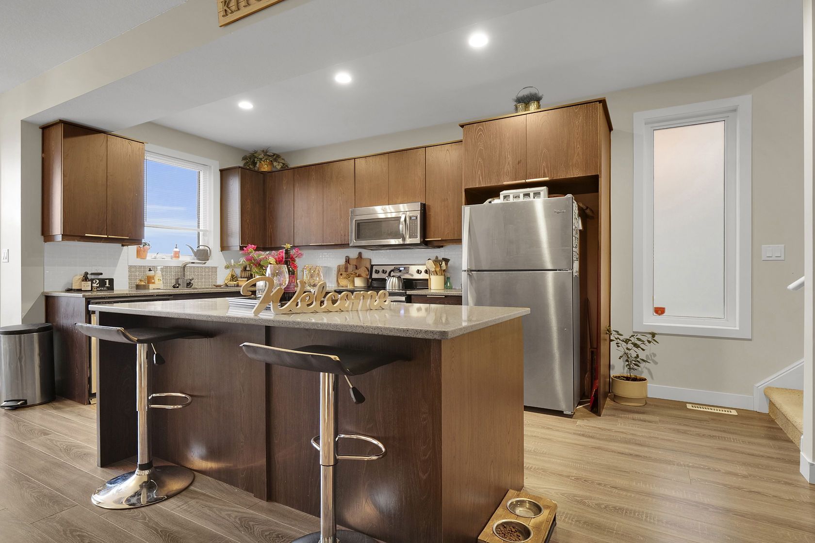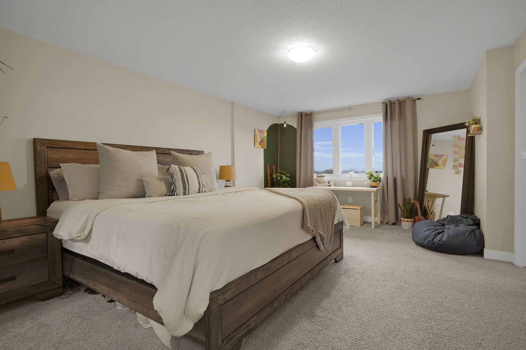 4 bedroom,4 bathroom with a fully finished basement! The moment you walk in you will be greeted with a bright large hallway with a 2 pc bath and entrance to the attached garage. The open concept living room, dining room & kitchen features a stylish kitchen with an island large dining room with a great view which has a balcony over looking the green space. Living room with a designer fireplace. The upper level boasts a large primary bedroom with a 4 pc bath large walk in closet. The other 2 bedrooms are great for kids or guests. You will love the 2nd floor laundry. Comes furnished.