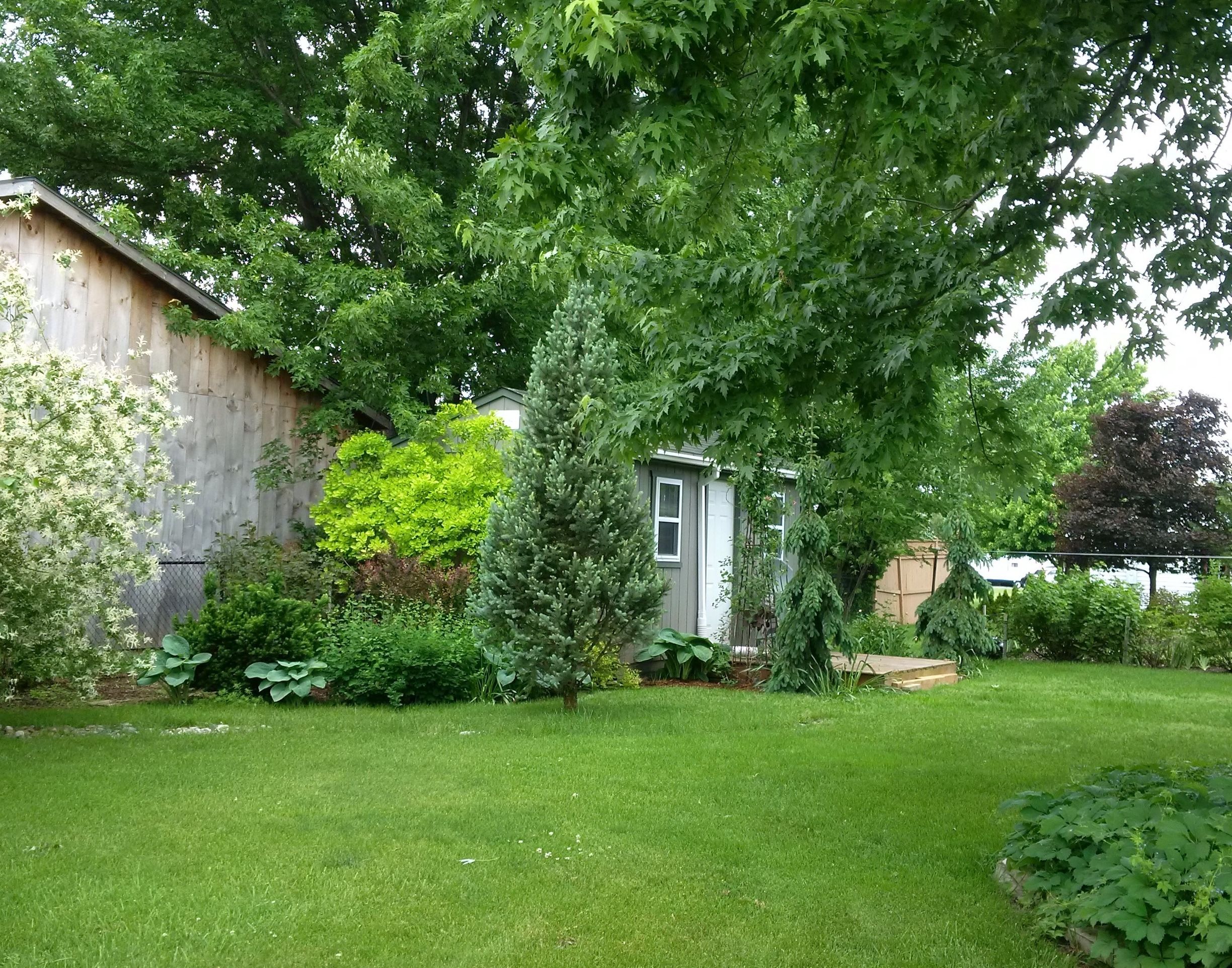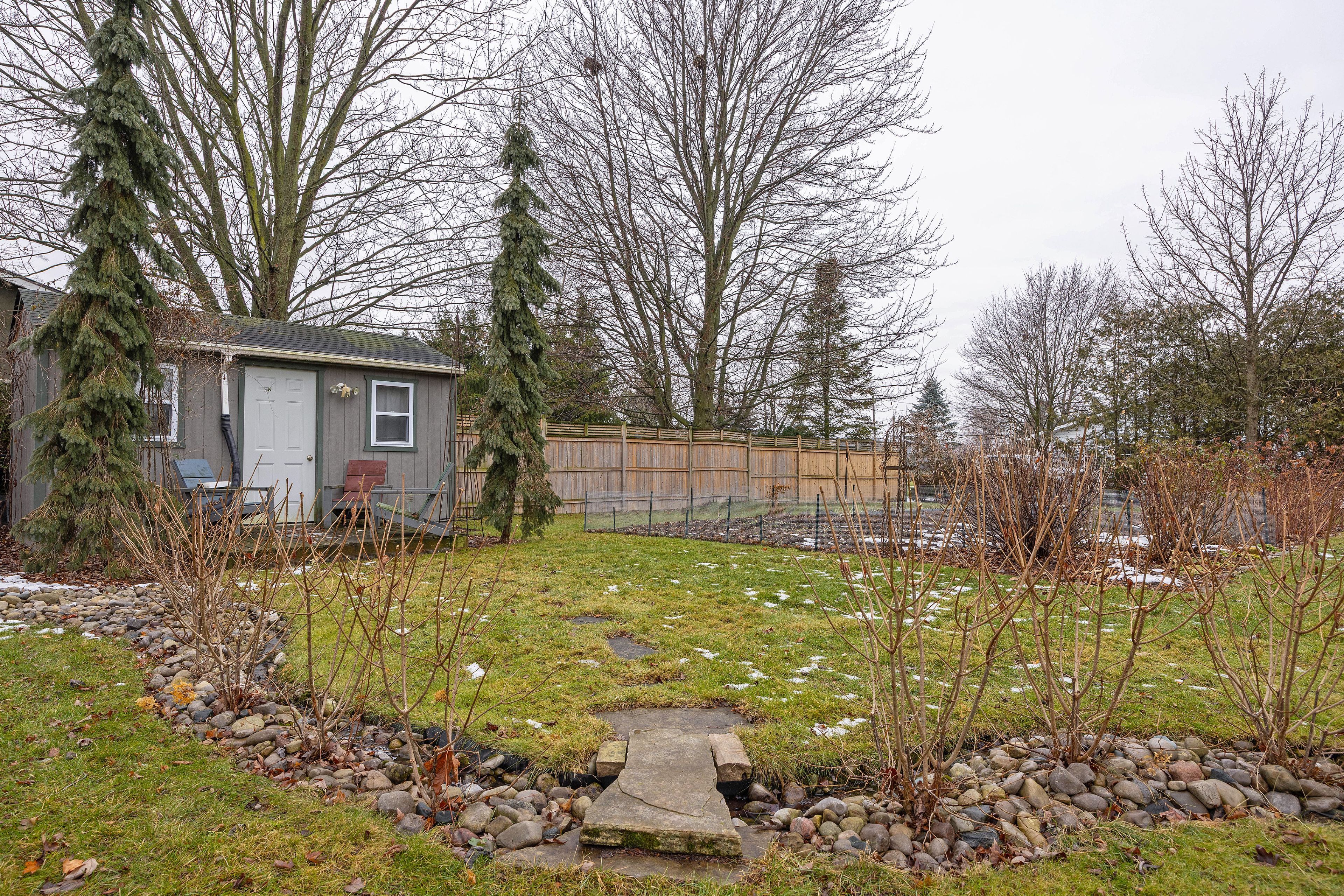 This charming yellow brick bungalow is full of character and comfort, featuring original knotty pine floors and trim that add timeless warmth throughout. A true gardener's dream, the property offers exceptional privacy surrounded by lush gardens and a separate fenced in outdoor retreat directly off the primary bedroom- perfect for morning coffee or quiet evenings. Out back, you'll find a heated shed ideal for hobbies or storage, along with an impressive 24' x 48' vegetable garden ready to produce this summer's harvest. A new garage was added approximately 8 years ago, while the furnace and water heater were upgraded 5 years ago. For added peace of mind, the home also includes a built-in backup battery system in the event of a power outage. Tucked away on just under half an acre, on a private street just off the main road and 15 minutes to london & st thomas, this home offers the perfect blend of charm, functionality, and seclusion. 9855 john st should be your next stop