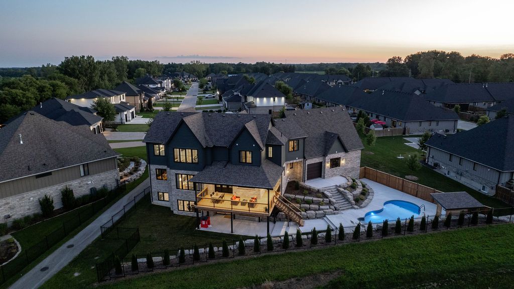Welcome to bella lago estates, komoka's most exclusive and sought after neighbourhood. This exceptional property offers a rare opportunity for the discerning buyer to acquire a home defined by aesthetic perfection, timeless design, and a superior lifestyle. With just under 6,000 sq ft of luxurious living space, this residence truly offers something for everyone that's looking for superior design and elegance. A majestic exterior features a classic stone facade, a vast stamped concrete driveway, and hand picked pine trees, ensuring a timeless arrival. Step inside to soaring ceilings and abundant natural light that flows over a beautiful herringbone brick pattern floor. The open concept layout includes a great room and dining space perfect for entertaining. Enjoy seamless indoor/outdoor living with access to a covered deck offering tranquil views of the pond, ideal for your morning coffee or evening retreat. The executive den exudes sophistication with exposed wood beams and a built-in library. The second floor is dedicated to family comfort, featuring four spacious bedrooms, three full bathrooms, a convenient laundry room, and a bonus family room perfect for media or gaming. The fully finished walkout lower level is an entertainer's dream, complete with an additional bedroom, a full bathroom, a large rec room, and a dedicated gym space. The lower level walks out directly to your fully fenced backyard oasis featuring a sparkling pool. The yard is beautifully landscaped with armour stone and low-maintenance trees and shrubs. Access to the oversized heated triple car garage is made easy via slate stone steps from the backyard. Komoka is a fantastic community offering great schools, the ymca community centre, grocery shopping, walking trails, and quick access to highway 402. There are fine restaurants just steps away. Opportunities to purchase within this exclusive enclave of just 29 homes in the private residence are rare, don't miss your chance.