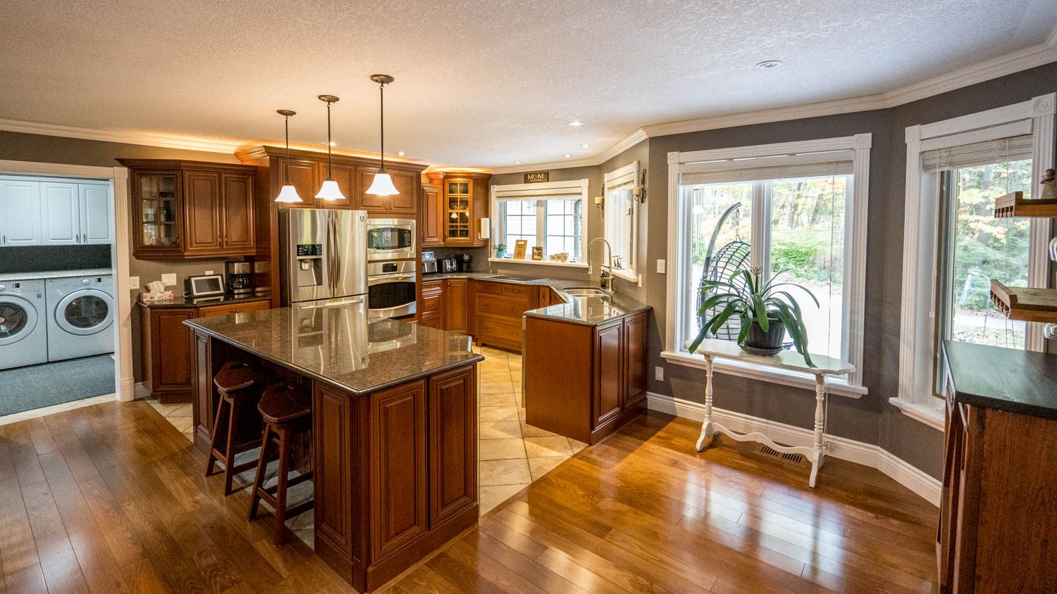 Custom built executive bungalow resting on 9. 7 acres backing onto endless trails and beach access via pinery park. This meticulously maintained 3600 sq ft. 4 bed/4 bath full brick house with an immaculate detached insulated heated shop creates the perfect experience of tranquility while maintaining the perfect location with all amenities within a short distance. The newer home features chef's kitchen & island with granite counter tops, main floor laundry, open concept kitchen and living room with a gas fireplace, alongside a generous sized master bedroom with; a 2nd gas fireplace, walk-in closet and vast en-suite bath with double vanity. Also features a stellar office, den (currently used as 5th bedroom), man cave of your dreams with; a walk-out seperate entrance, a kitchenette, pool table, wet bar, and 3rd gas fireplace which makes it perfect for an in-law suite. The property has endless parking, and plenty of room for all your rvs, boats, or atvs. Updates include brand new eavestroughs with leaf guards, front porch veka deck boards (better then composite), new rear and side stamped concrete decks, as well as celebright lights (lights built into the soffit that match any occasion) this home is perfect for the outdoor enthusiast, large families, atv/snowmobile/boat/rv owners or buyers just looking for premium privacy. You'll fall in the love the moment you arrive with the breath taking oak savannah canopies and vast assemblage of natural beauty and wildlife.