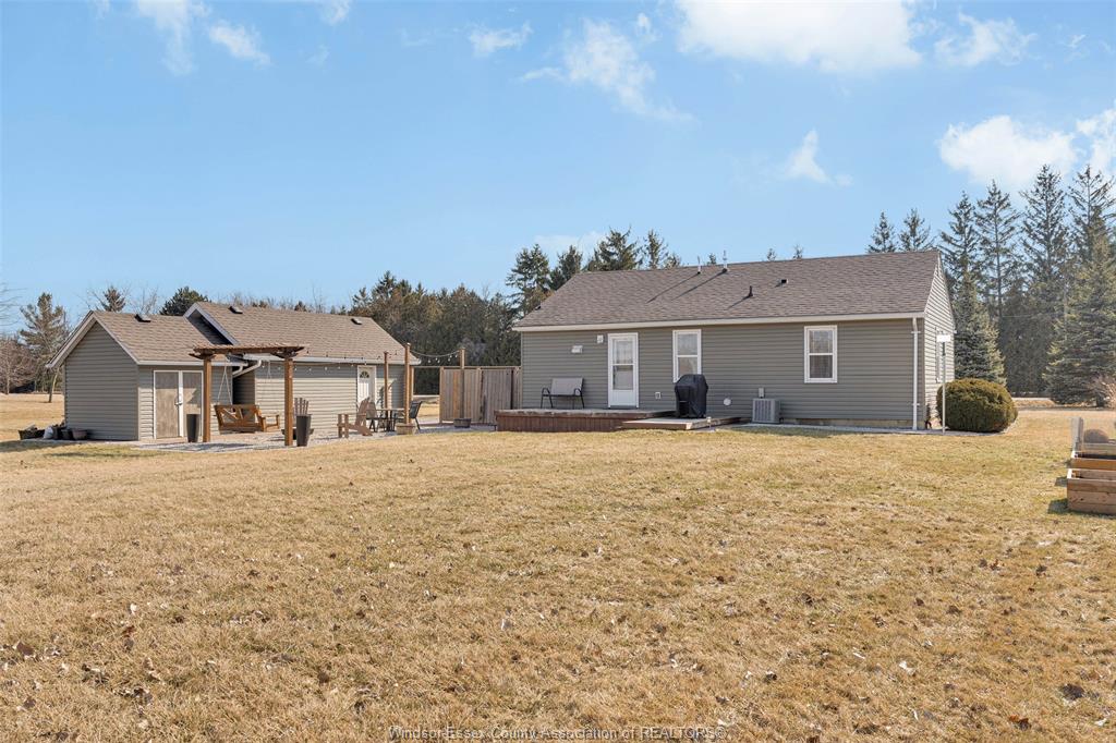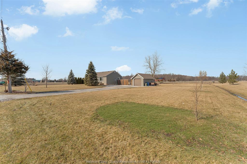 Welcome to 9872 9th concession, a beautiful property offering 1 acre of peaceful living, set in the quiet countryside, only minutes from the amenities of essex. This recently renovated 2 bedroom, 1 bath bungalow is a must see featuring a bright, spacious open concept living area that includes a kitchen with plenty of room to entertain, a dining room, living room and a utility room with laundry. The charming decks and patio are surrounded by open land and natural views that provide instant rural serenity. The 1 car garage includes a workshop area with 100amp service. The insulated storage shed offers 40amp service, which is ideal for projects, hobbies or extra storage. This expansive property presents endless possibilities. A rare opportunity to own a country retreat that feels worlds away, yet close to everything you need.