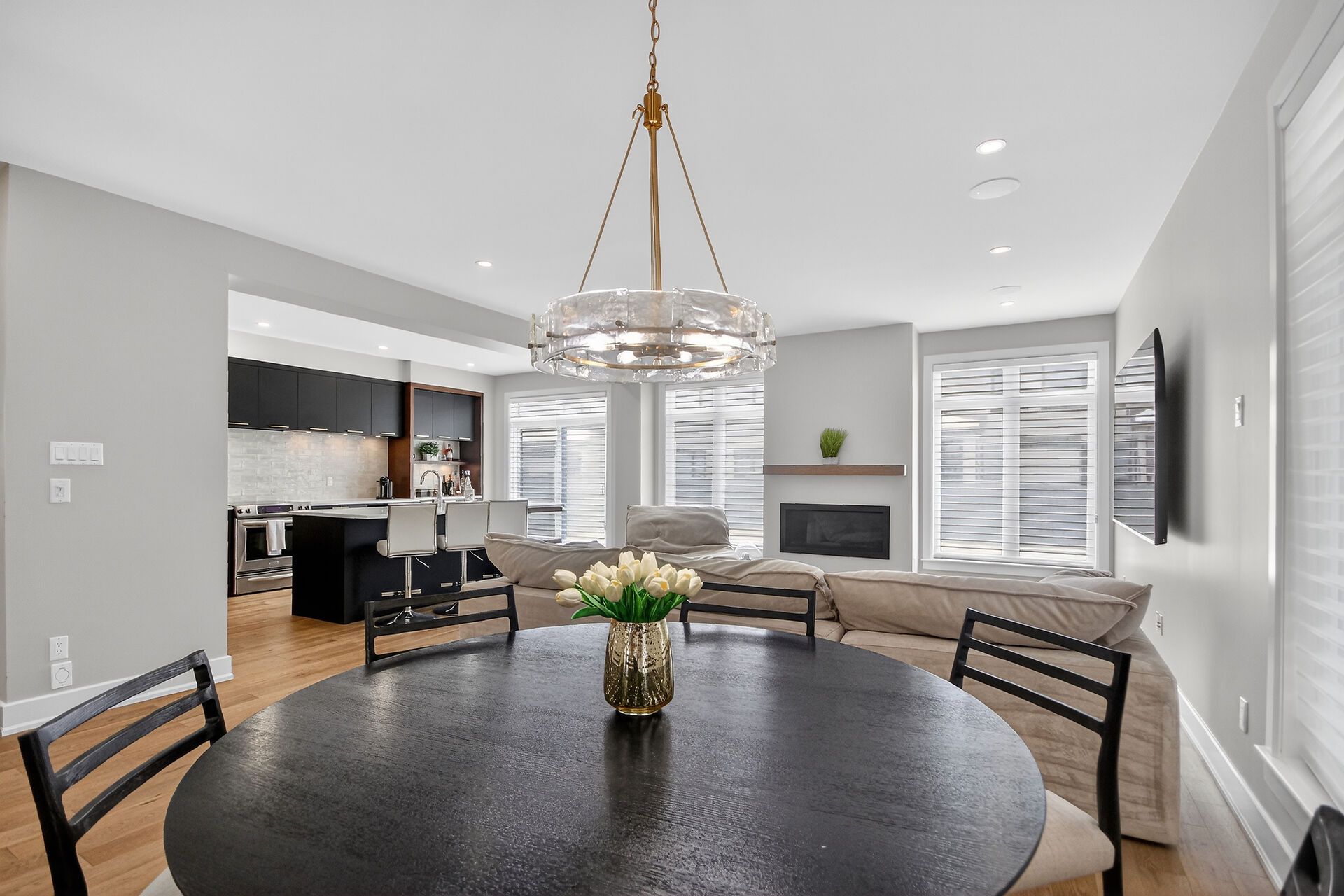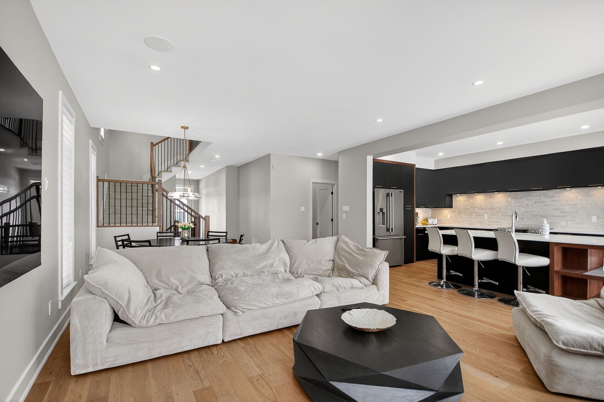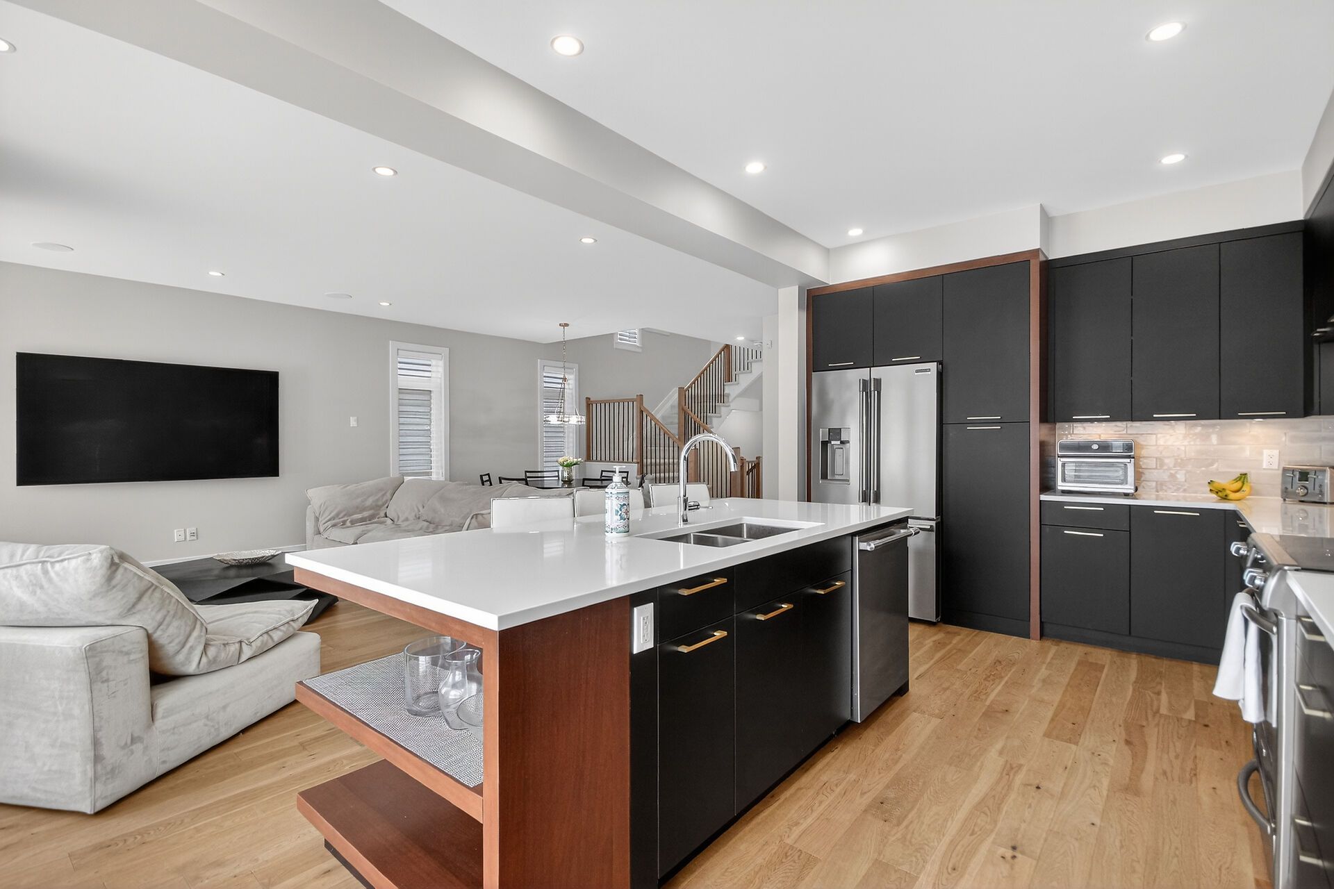 • Chef's kitchen with high-end appliances and elegant quartz countertops.