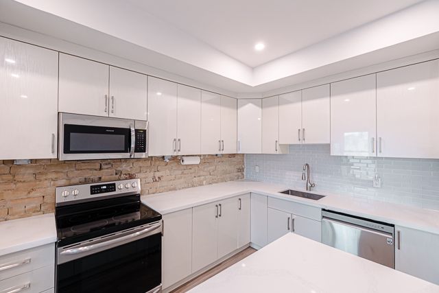 Experience the best of queen east in this professionally renovated 1-bedroom suite at queen and pape. Located in a quaint, character-filled walk-up, this home offers a spacious layout and a chef-inspired kitchen designed with the cook in mind. This suite offers modern comforts including ensuite laundry and the location is sublime. The convenient location features all the pleasures of city living. You are only steps away from charming streets, tree lined parks, and local shops, bars, restaurant, coffee shop and the queen street car. Parking is also available if needed for an extra $150/month, all utilities are extra. It's time to live your best leslieville life!