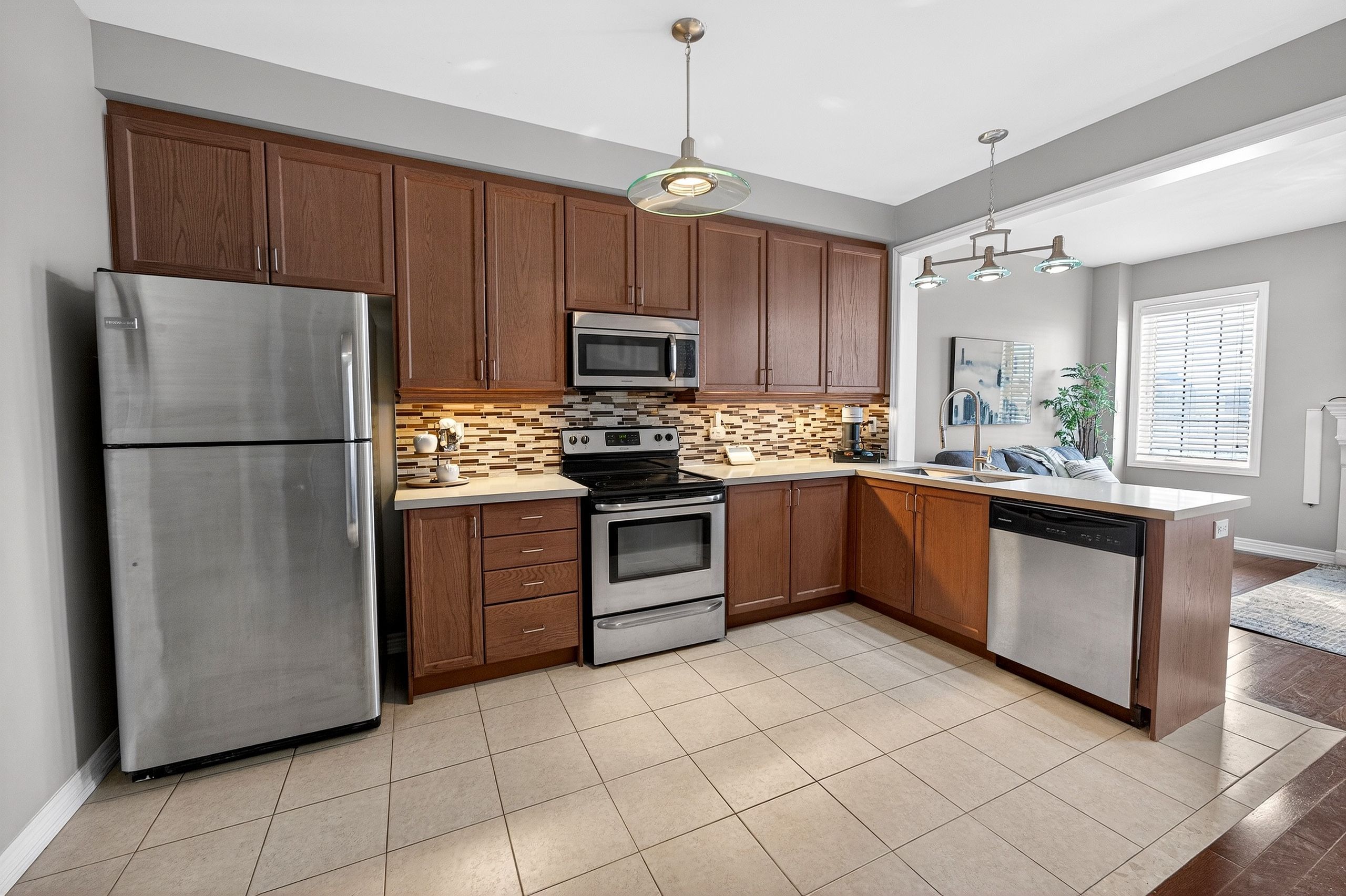 Beautiful executive townhouse offering 3 bedrooms and 3 bathrooms in the highly desirable vellore village. Approximately 1,700 square feet of living space with numerous upgrades throughout. Features include 9-foot ceilings, hardwood floors, iron pickets, with extended cabinetry in kitchen, caesarstone countertops, and an undermount sink. The cozy family room is highlighted by a gas fireplace, perfect for relaxing or entertaining. The primary bedroom includes a 4-piece ensuite with a separate shower and a walk in closet. Enjoy a spacious and bright layout with convenient access from the garage to the house and backyard. Ideally located close to excellent shopping amenities, schools, public transit, the new vaughan hospital, and with easy access to highways 400 and 407. A perfect place to call home!