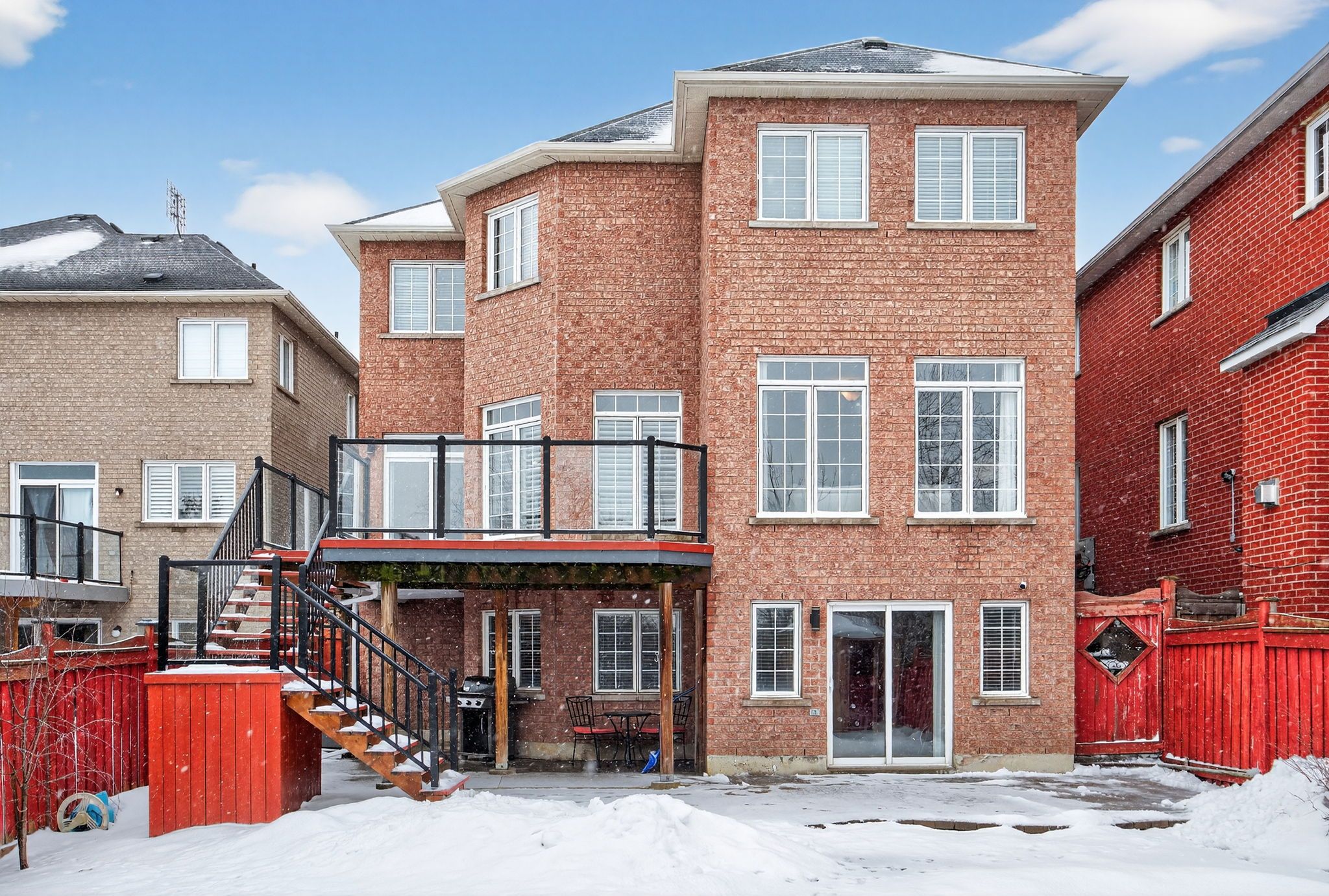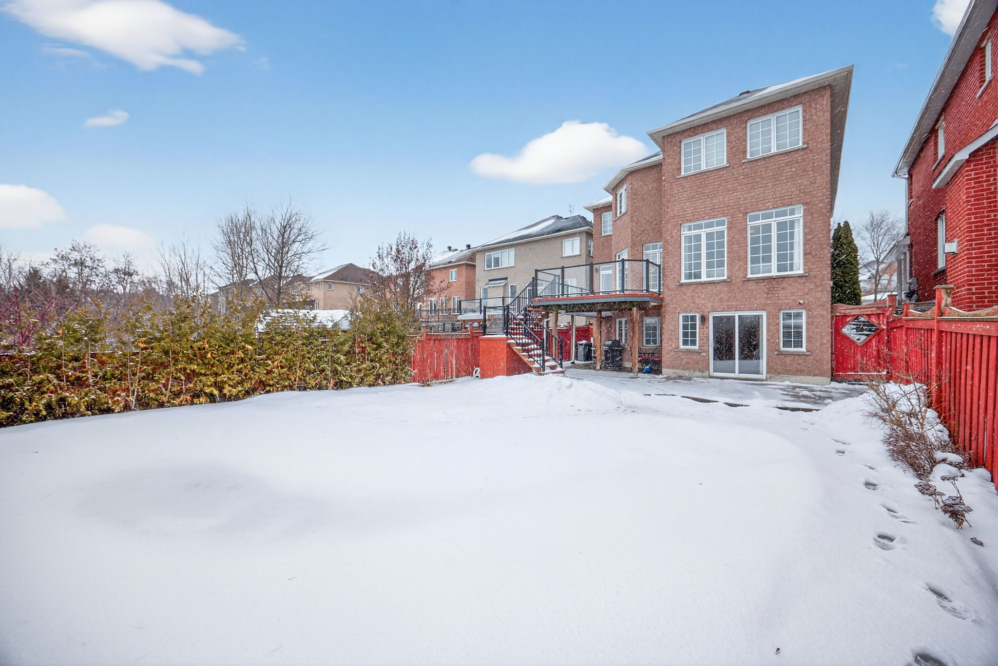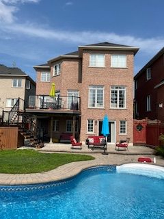 Welcome to 99 barberry crescent, ideally located in the heart of oak ridges and situated on one of the largest lots in the area. This premium property backs directly onto the oak ridges moraine, offering exceptional privacy, daily views of protected green space, direct access to scenic walking trails, and the opportunity to enjoy local wildlife from your own backyard. The home features a bright open-concept layout, highlighted by expansive west-facing windows that flood the space with natural light and showcase the stunning natural backdrop. The walkout kitchen leads to an impressive outdoor living area featuring an in-ground saltwater pool, custom-built cabana, an expansive trek deck with aluminum railings, an interlock and patterned concrete patio, creating an ideal setting for outdoor entertaining. The cabana is fully waterproof and wired for electricity, making it ideal for a bar when hosting summer gatherings or for secure, year-round storage. The trek deck which includes aluminum under-siding, provides a shaded seating area below for a seamless indoor-outdoor connection. The finished walkout basement offers direct access to the backyard and is filled with natural sunlight, providing a flexible living space for entertaining, relaxing or accommodating guests. Inside, the home offers four bedrooms, three of which enjoy direct access to an ensuite or shared his-and-hers bathroom. All four bathrooms were renovated in 2019. Additional features include second-floor laundry for added convenience, custom-built closets in the main hallway and primary bedroom, hardwood flooring throughout the main floor, staircase, and upper hallway, new flooring in all bedrooms (2025), and a cold cellar for additional storage. A rare opportunity to own a beautifully maintained home that blends nature, privacy, and modern comfort in one of oak ridges' most desirable neighbourhoods.