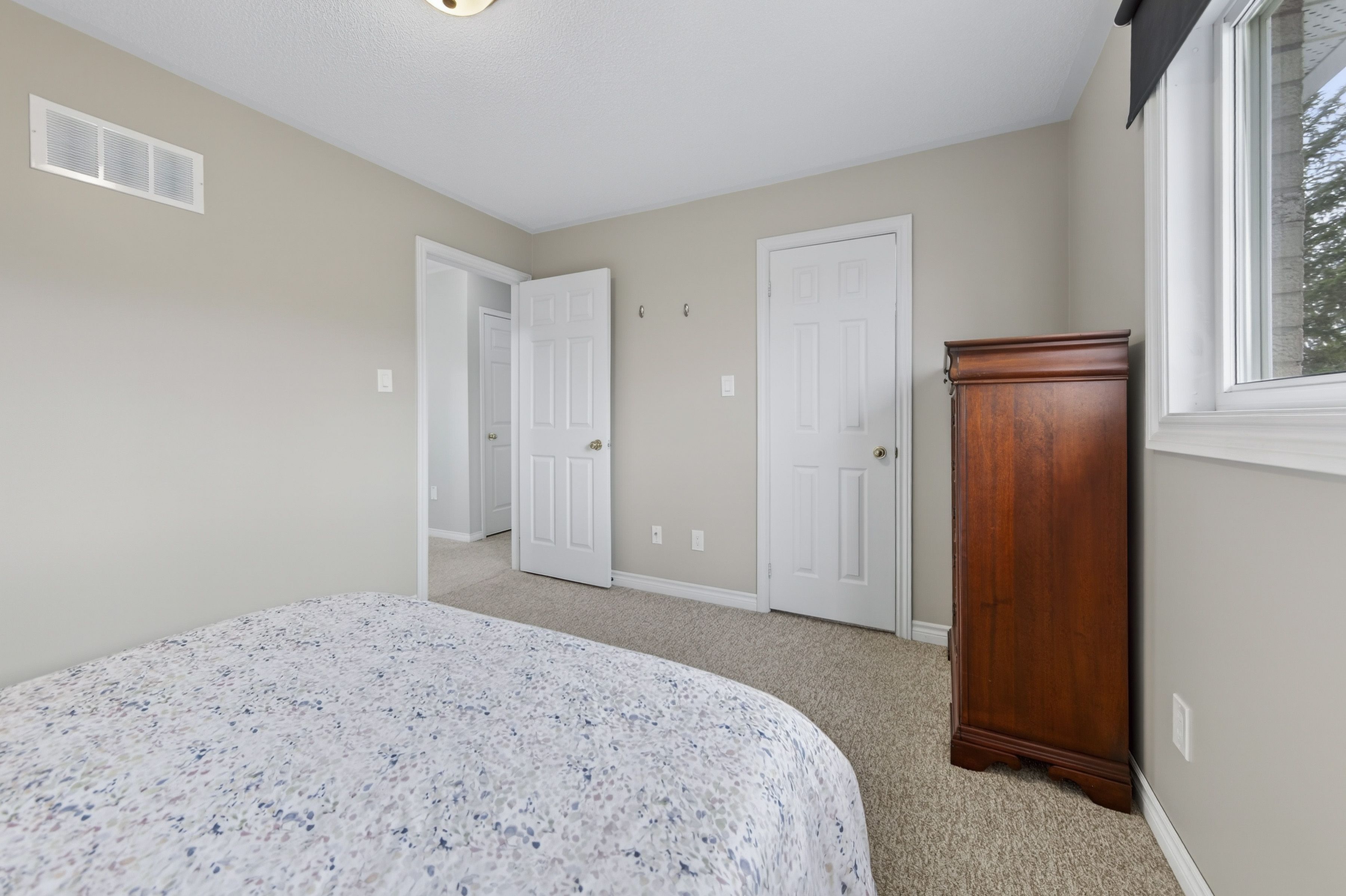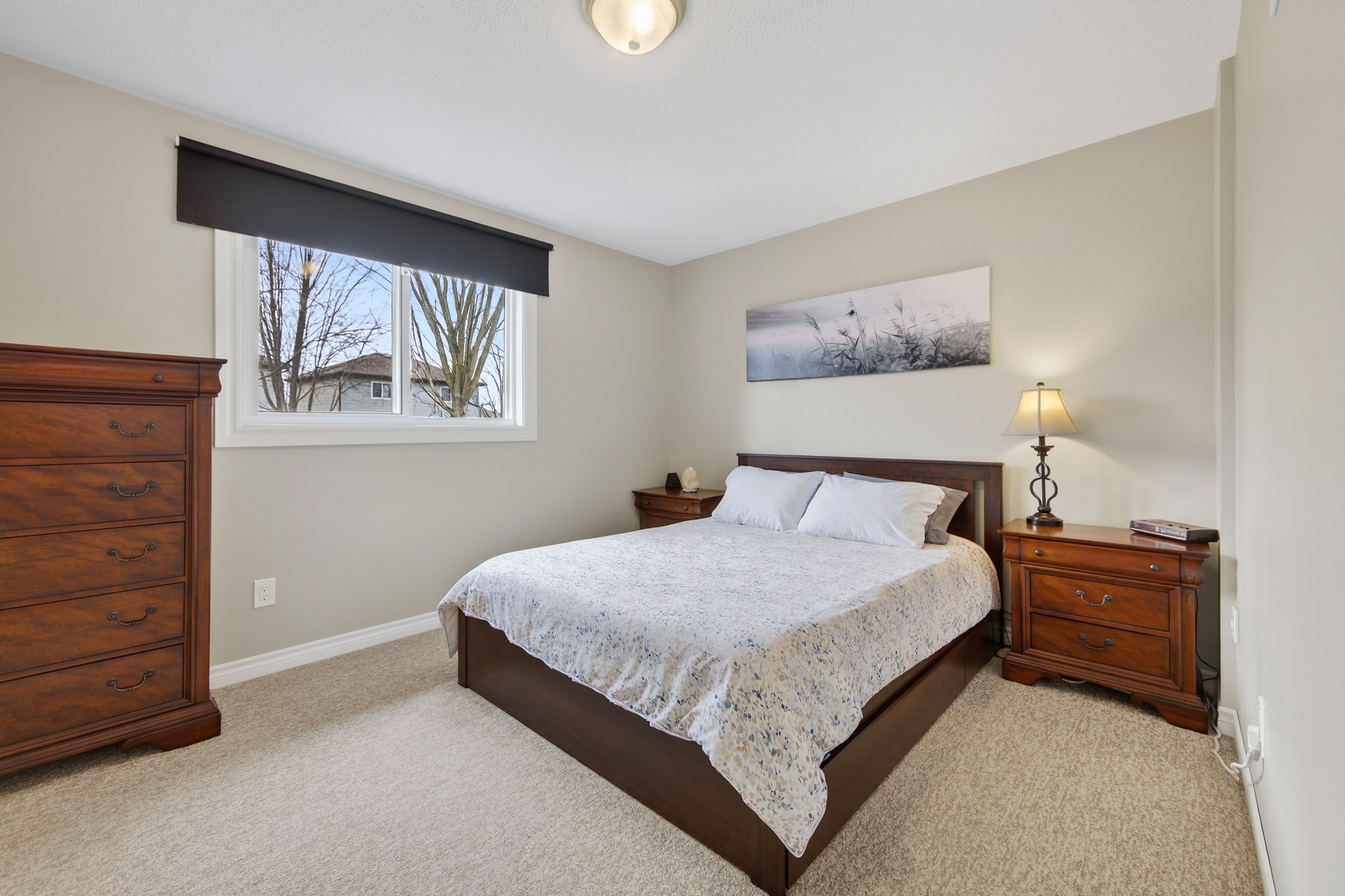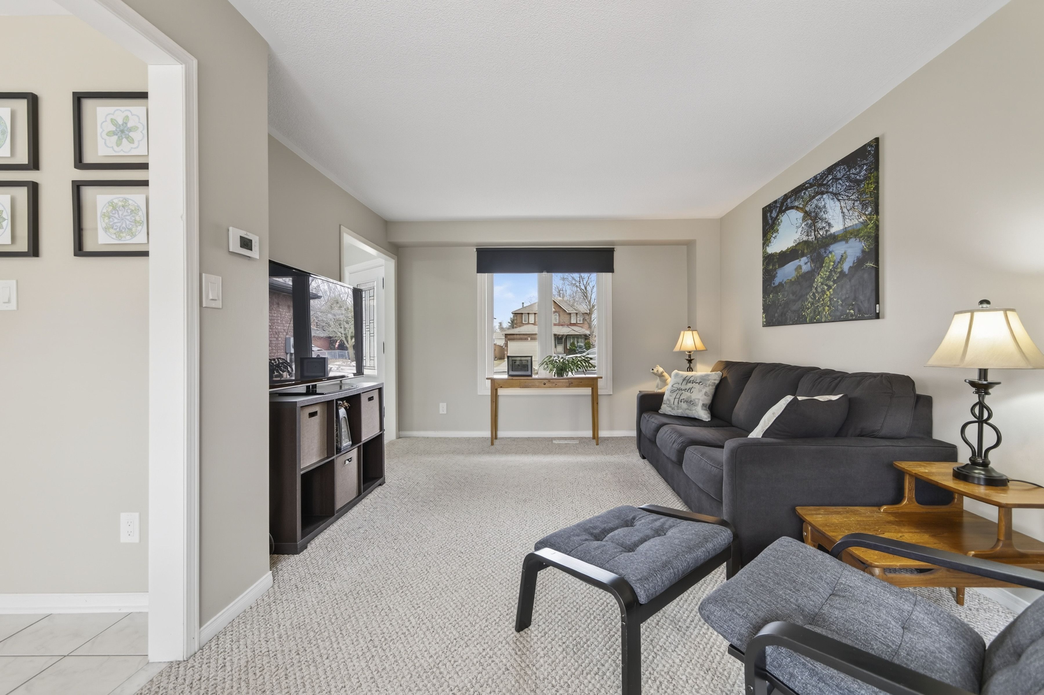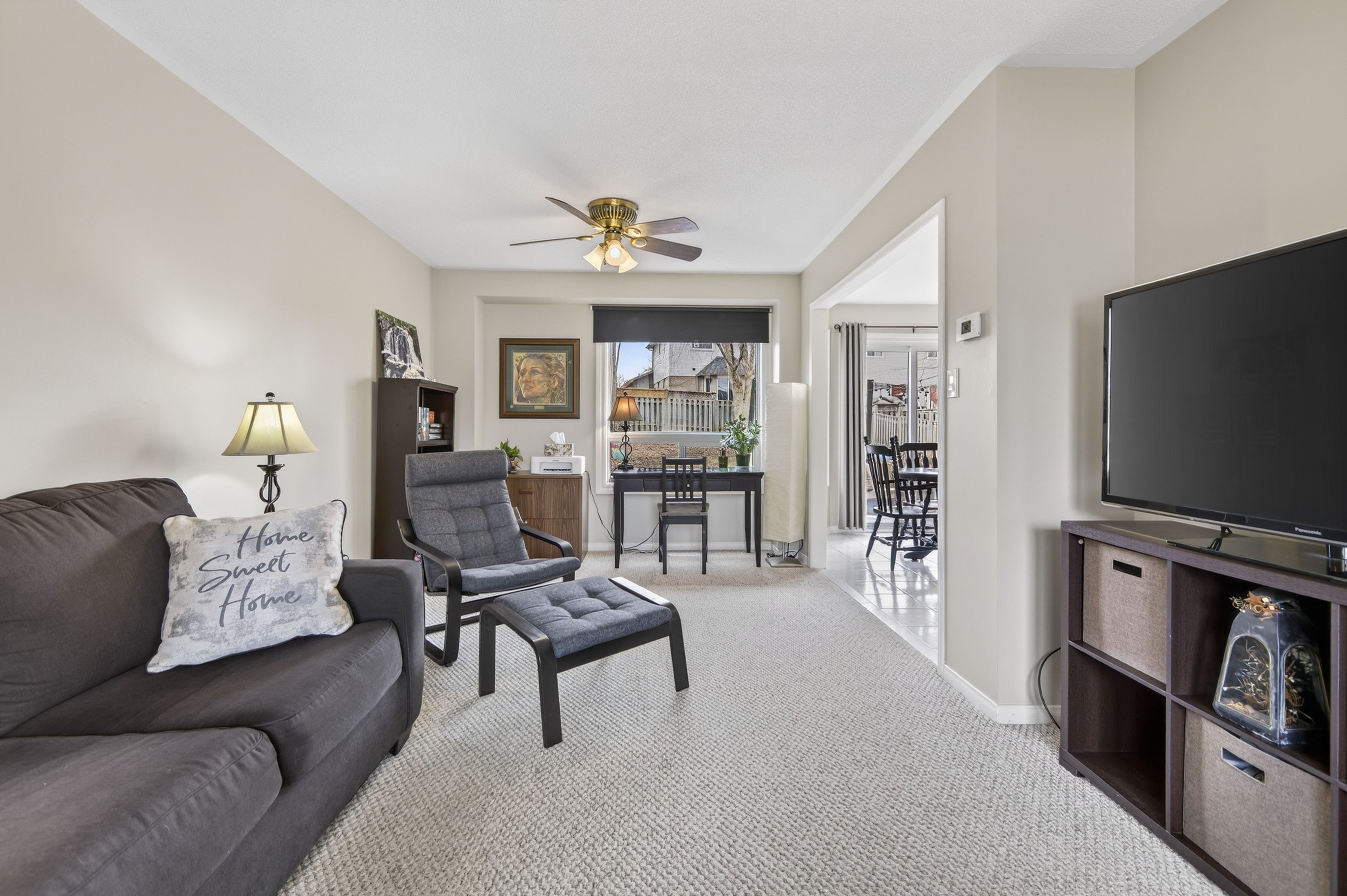 Well maintained all brick detached 2 storey family home situated in the south end on a quiet street offering 3 bedrooms and almost 2000 square feet finished. Main floor dining/livingroom combination with a large front window overlooking the covered front porch and large rear window overlooking the oversized rear yard. Nice main floor flows in to the eat-in kitchen with a walkout to a fully fenced rear yard featuring an interlock patio and nice mature trees. Main floor also has a 2 pc powder room for you and your guests. Bright open staircase leads to the primary bedroom with walk-in closet, 2 more good sized bedrooms and a main 4 piece bath. Lower level has a fully finished recreation room with pot lights, a cold cellar and a laundry/utility room with a bathroom rough-in including a separate door for your future design plans. Double attached garage with rear maintenance door and garage door opener with a paved driveway with no sidewalk interference. Updates include; shingles (2014), carpet, plumbing updates and patio door (2015), windows, sump pump and front door (2019), walkways, patio, water softener and eaves (2021), new furnace and central air (2025). Close to schools, parks, shopping, public transit, easy highway access and all the amenities of life in the ardagh bluffs.