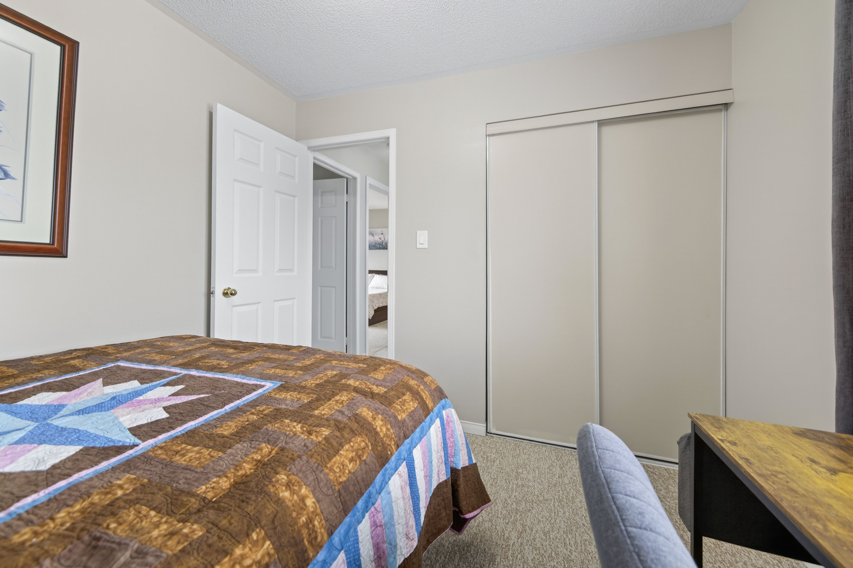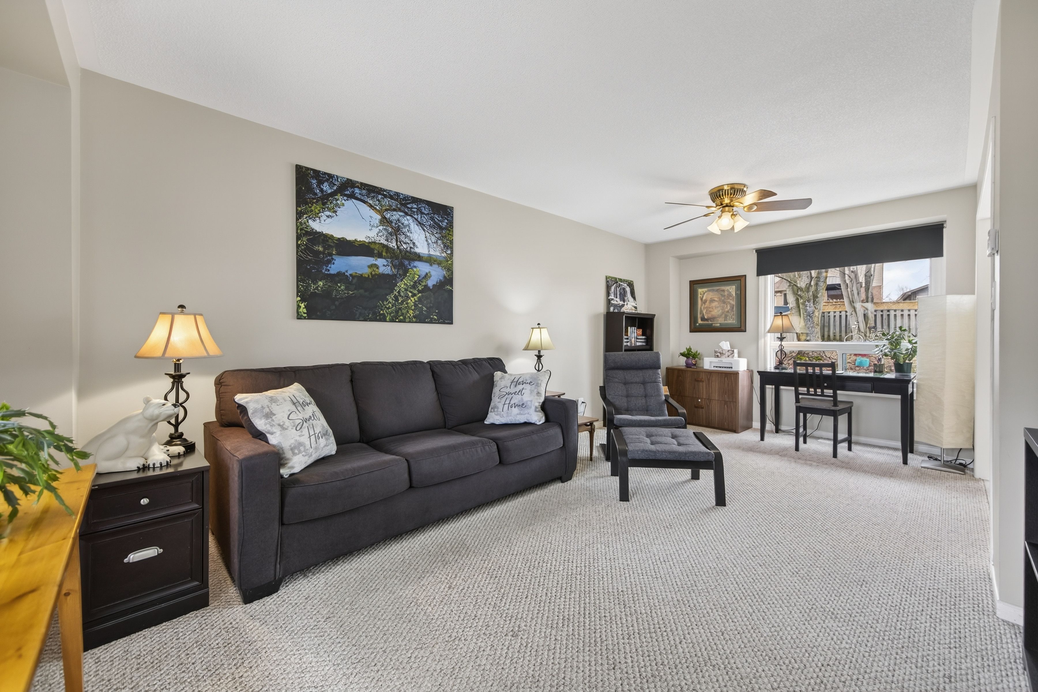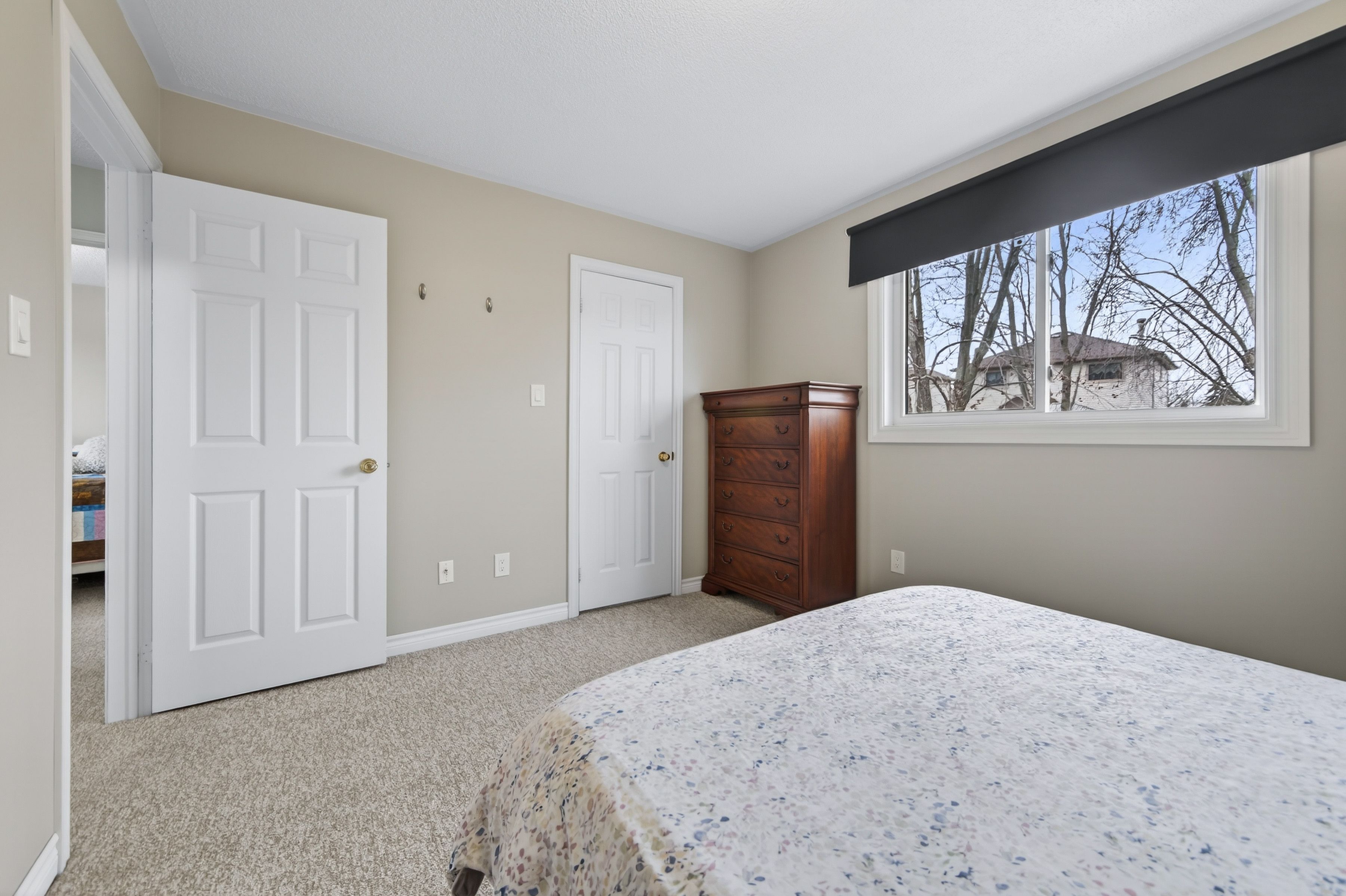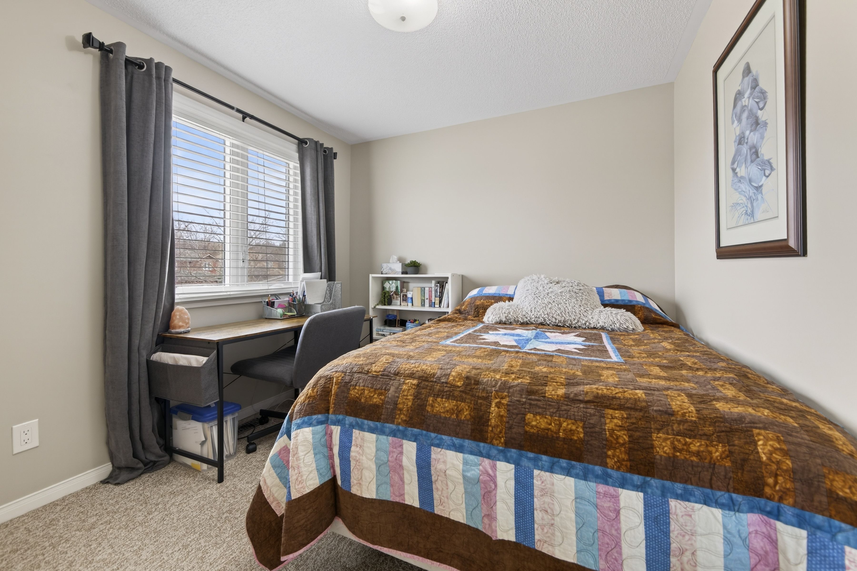 Well maintained all brick detached 2 storey family home situated in the south end on a quiet street offering 3 bedrooms and almost 2000 square feet finished. Main floor dining/livingroom combination with a large front window overlooking the covered front porch and large rear window overlooking the oversized rear yard. Nice main floor flows in to the eat-in kitchen with a walkout to a fully fenced rear yard featuring an interlock patio and nice mature trees. Main floor also has a 2 pc powder room for you and your guests. Bright open staircase leads to the primary bedroom with walk-in closet, 2 more good sized bedrooms and a main 4 piece bath. Lower level has a fully finished recreation room with pot lights, a cold cellar and a laundry/utility room with a bathroom rough-in including a separate door for your future design plans. Double attached garage with rear maintenance door and garage door opener with a paved driveway with no sidewalk interference. Updates include; shingles (2014), carpet, plumbing updates and patio door (2015), windows, sump pump and front door (2019), walkways, patio, water softener and eaves (2021), new furnace and central air (2025). Close to schools, parks, shopping, public transit, easy highway access and all the amenities of life in the ardagh bluffs.