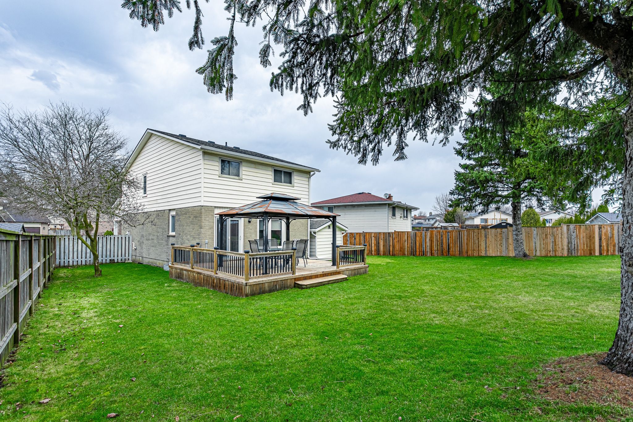 Welcome to this beautifully maintained two-storey home in london, perfectly situated close to all amenities and with easy access to highway 401-ideal for commuters and families alike. This spacious home offers 3 bedrooms and 3 bathrooms, designed with comfort and functionality in mind. The main floor features a bright and inviting layout with a generous living room, a formal dining area, and an updated kitchen (2012) showcasing crisp white cabinetry and a cozy eating area. You'll also find a convenient 2-piece powder room and a main floor laundry room complete with a sink . Upstairs, the large primary bedroom serves as a private retreat, featuring a walk-in closet and a beautifully appointed 3-piece ensuite with a marble shower, glass doors, and elegant marble countertops. Two additional well-sized bedrooms and a stylish 4-piece guest bathroom (updated in 2018) complete the second level. The fully finished lower level offers a versatile recreation room-perfect for family gatherings or relaxing-as well as a storage area. 100-amp electrical service. Step outside to enjoy the expansive, fully fenced backyard-ideal for children, pets, and entertaining. The large wood deck (2015) and charming gazebo create the perfect outdoor oasis for summer evenings. Updated windows throughout, adding to the home's value and efficiency. This is a fantastic opportunity to own a wonderful family home in a sought-after location close to schools, shopping, and all conveniences.
