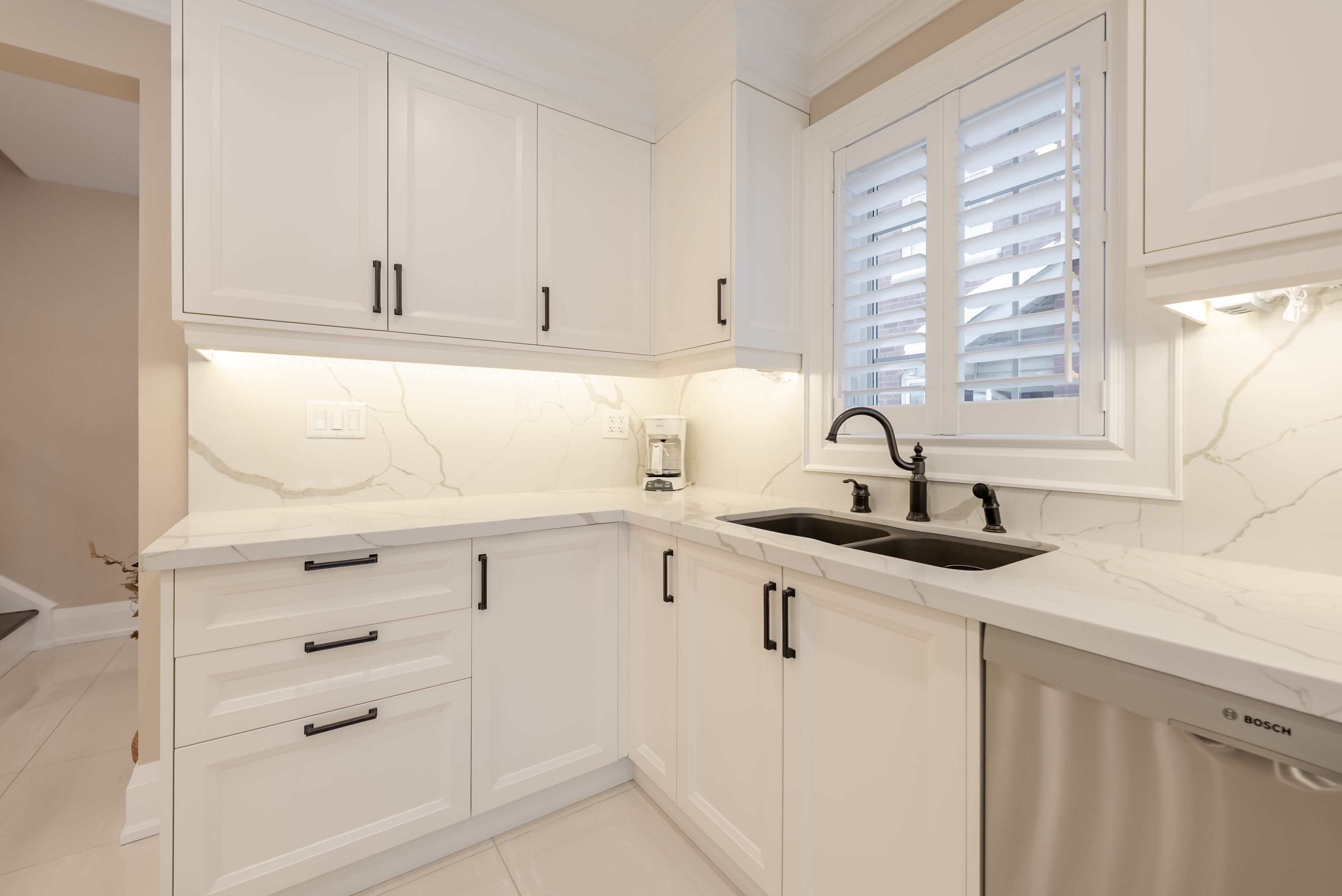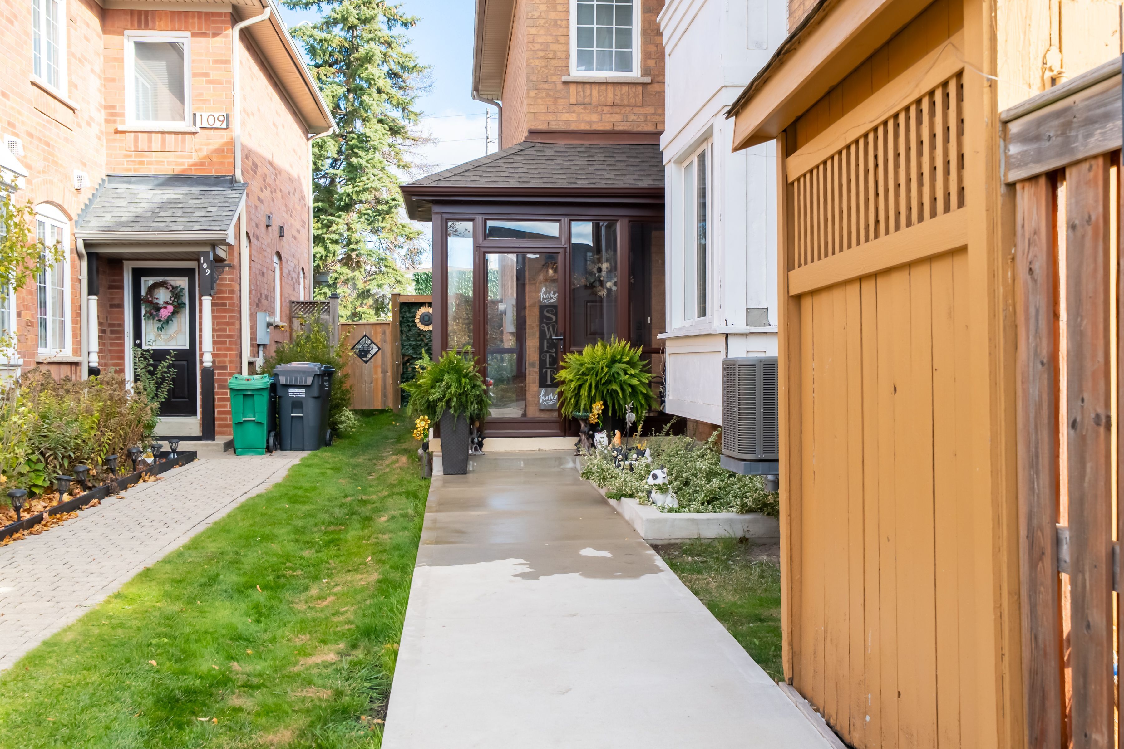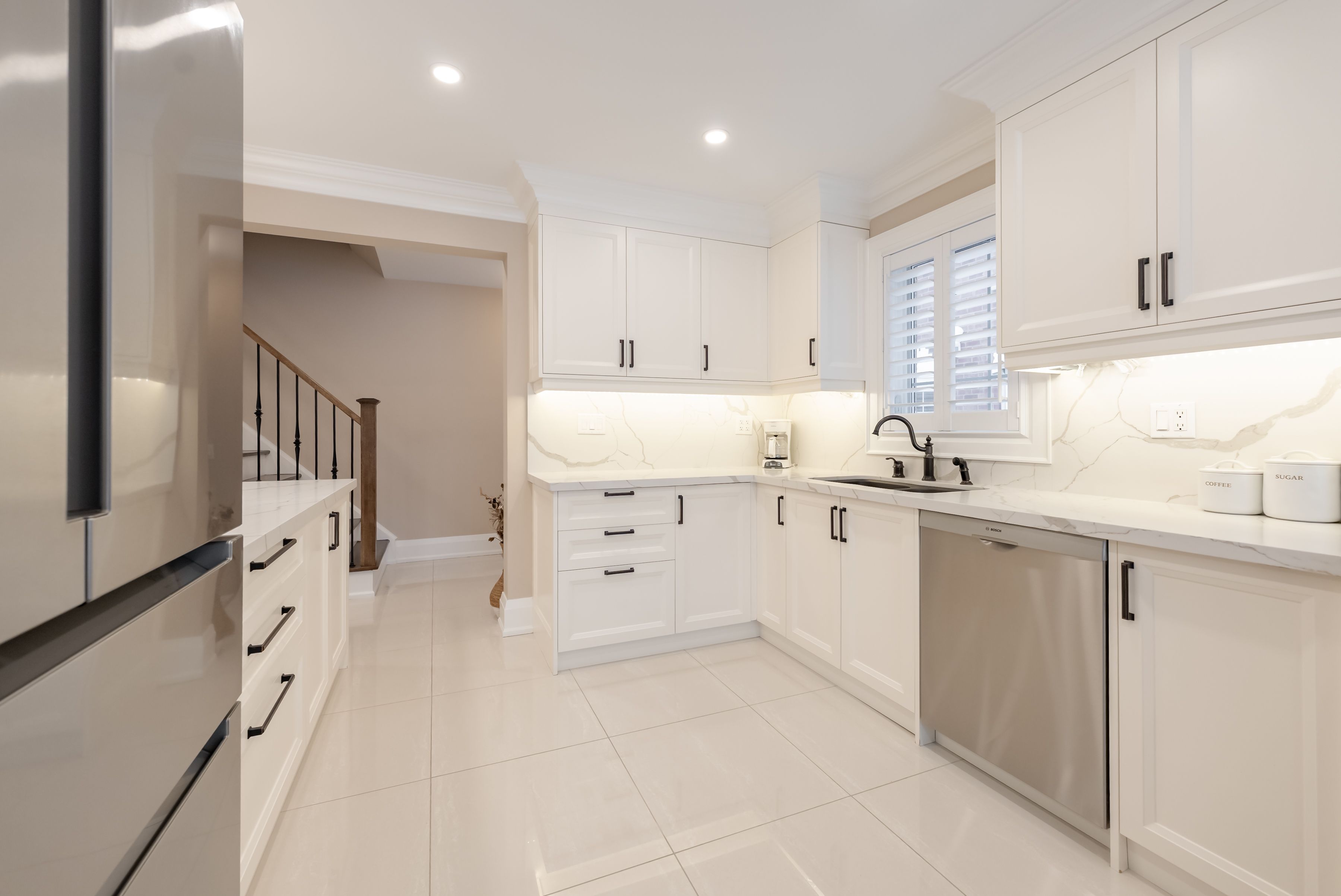 Turn-key/newly renovated *end unit/ freehold townhouse in desirable neighbourhood with 3 car parking. This unique, all-brick townhouse features an excellent layout with functional living space- no wasted square footage, and widens to 34 feet! - must see* the main floor was completely renovated in 2022, featuring an open concept kitchen/ living area. 24" porcelain tile flooring throughout, quartz countertops + backsplash with large island with breakfast nook, high quality/custom *bespoke kitchen- with dovetailed birch plywood cabinetry*, all bosch appliances (+gas range), new trim and crown moulding, new staircase and bannister, new front and back door, new powder room, pot lights, california shutters throughout with large bay window overlooking yard. *new electrical on main and lower level + much more! Upper level features 3 great size bedrooms with large closets. Primary bedroom features semi-ensuite access to the main 4 piece washroom. The lower level is equipped with brand new/durable (2025) *luxury vinyl flooring throughout, new stair cap + risers, new pot-lights and freshly painted, large closet/storage areas, laundry room + cold room under porch. The exterior upgrades include concrete pad walkway (2023) from front to back, custom deck (2020), and enclosed front porch (2022), private 3 car length driveway + more. Excellent location in a family friendly neighbourhood & great school district. Easy /walking access to many amenities featuring grocery, eateries, pharmacy, walk-in clinic, parks and more. Quick access to highway and transit* - move in and enjoy!