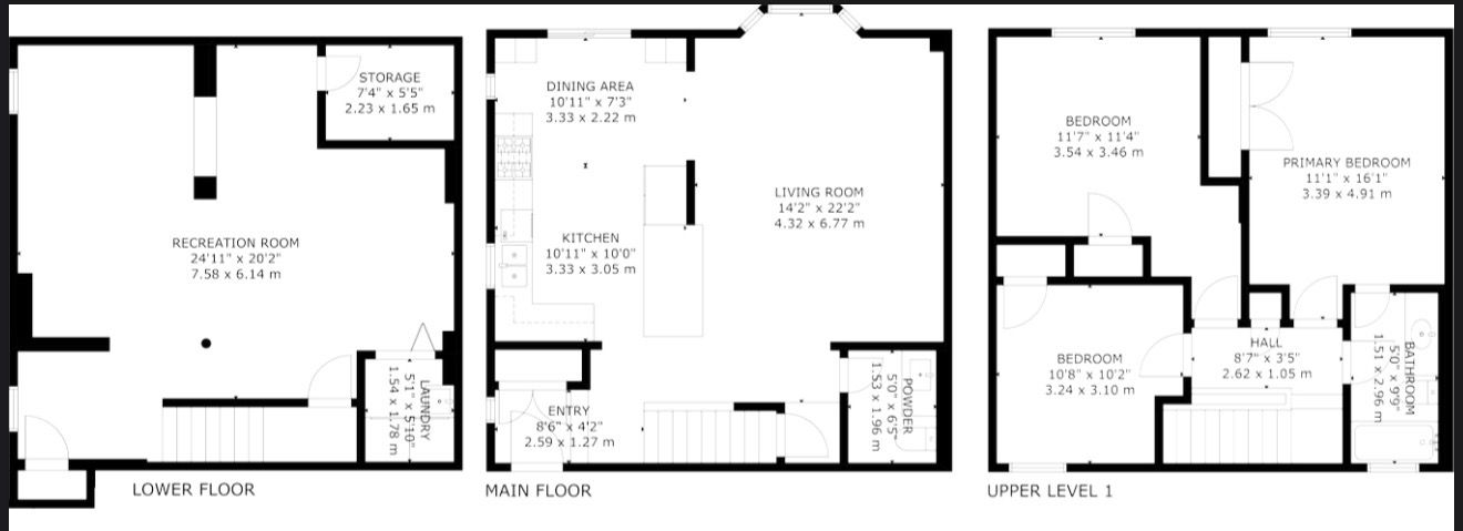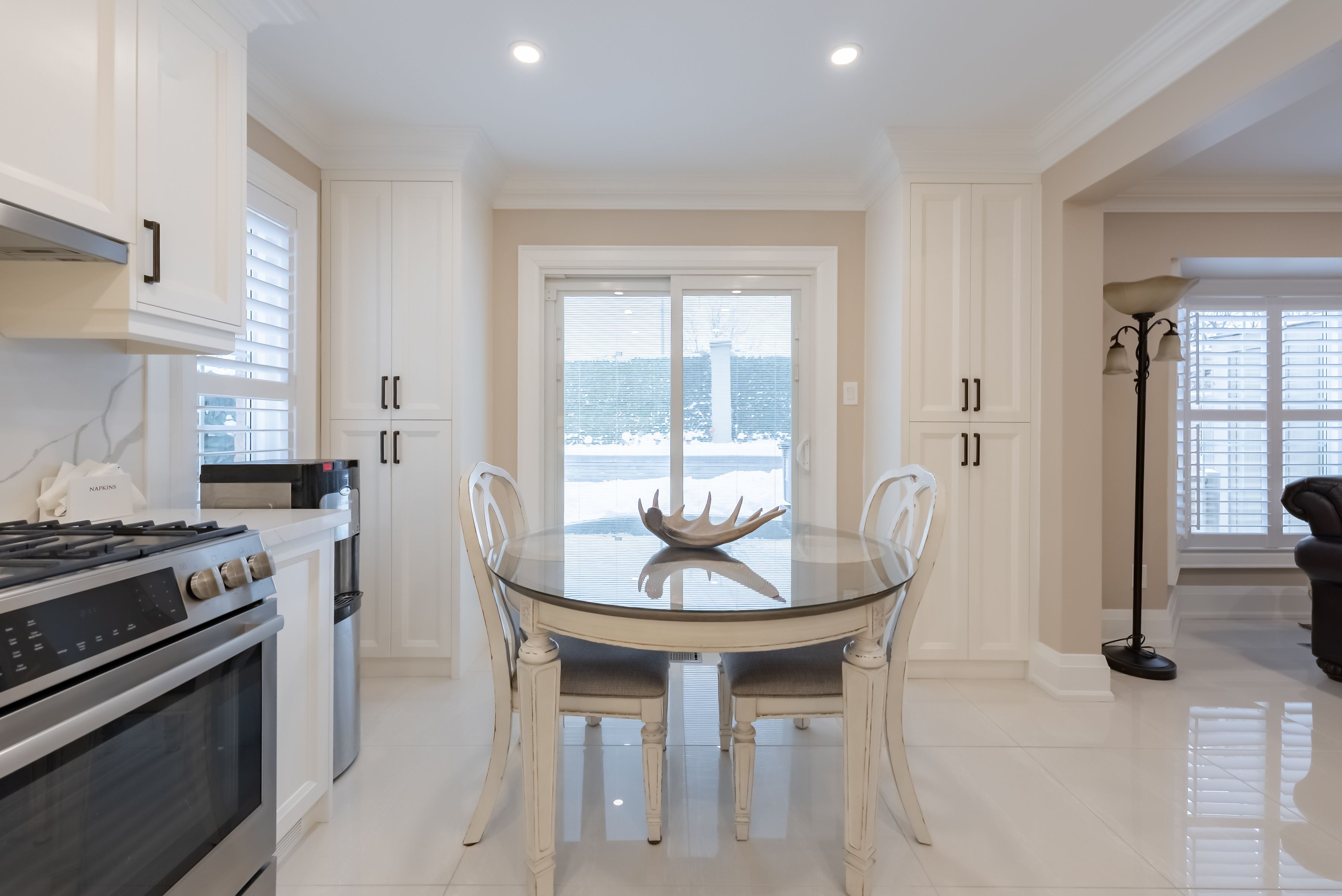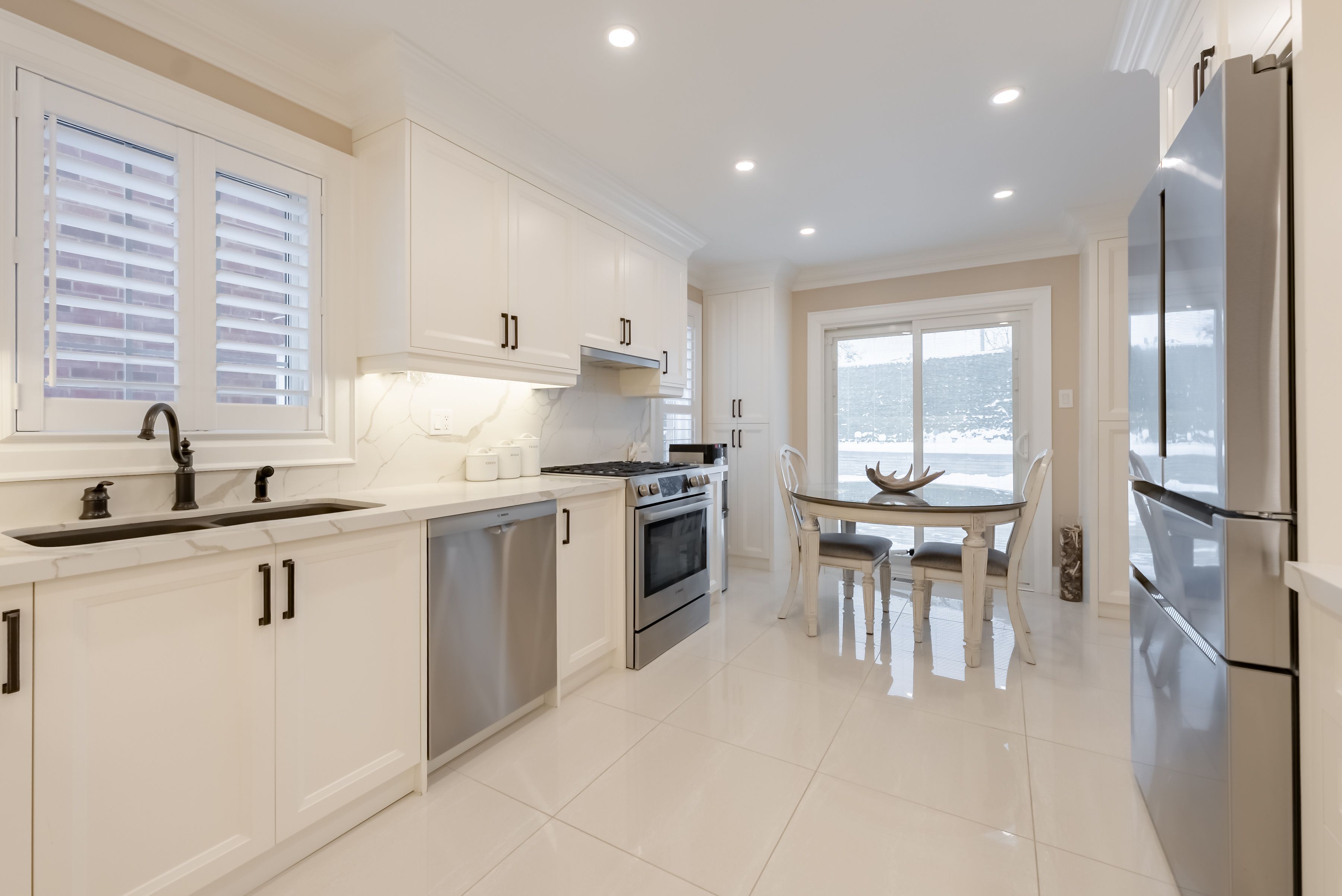 Turn-key/newly renovated *end unit/ freehold townhouse in desirable neighbourhood with 3 car parking. This unique, all-brick townhouse features an excellent layout with functional living space- no wasted square footage, and widens to 34 feet! - must see* the main floor was completely renovated in 2022, featuring an open concept kitchen/ living area. 24" porcelain tile flooring throughout, quartz countertops + backsplash with large island with breakfast nook, high quality/custom *bespoke kitchen- with dovetailed birch plywood cabinetry*, all bosch appliances (+gas range), new trim and crown moulding, new staircase and bannister, new front and back door, new powder room, pot lights, california shutters throughout with large bay window overlooking yard. *new electrical on main and lower level + much more! Upper level features 3 great size bedrooms with large closets. Primary bedroom features semi-ensuite access to the main 4 piece washroom. The lower level is equipped with brand new/durable (2025) *luxury vinyl flooring throughout, new stair cap + risers, new pot-lights and freshly painted, large closet/storage areas, laundry room + cold room under porch. The exterior upgrades include concrete pad walkway (2023) from front to back, custom deck (2020), and enclosed front porch (2022), private 3 car length driveway + more. Excellent location in a family friendly neighbourhood & great school district. Easy /walking access to many amenities featuring grocery, eateries, pharmacy, walk-in clinic, parks and more. Quick access to highway and transit* - move in and enjoy!