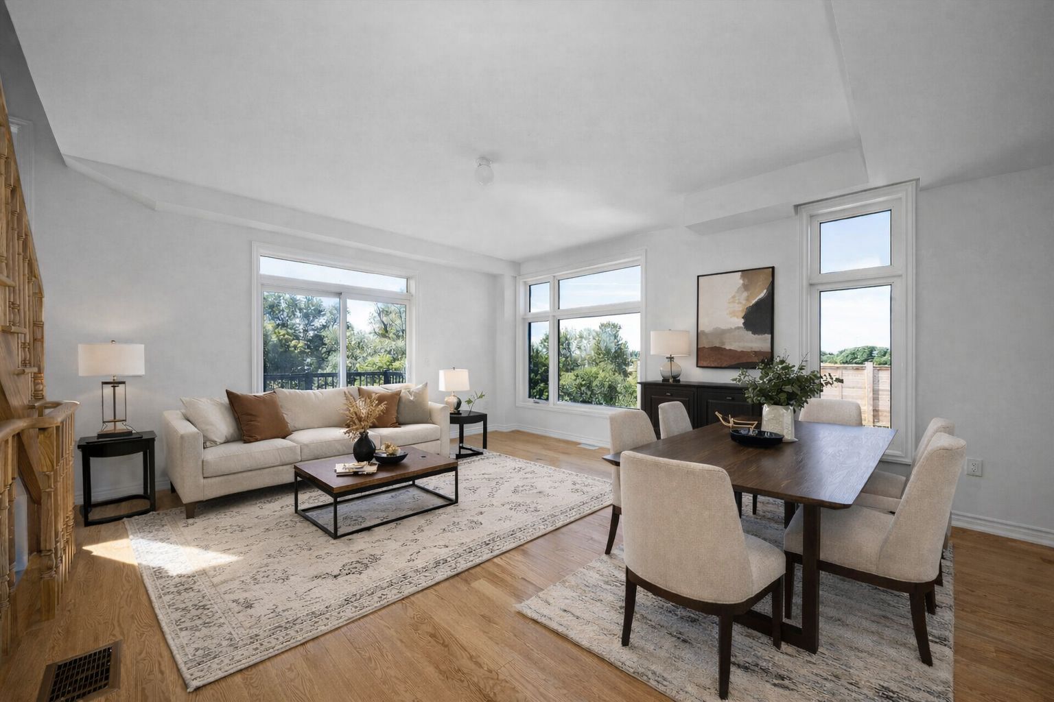 Rutherford heights by caliber homes! The varley model. Prestigious hilltop living in woodbridge. Welcome to rutherford heights, an exclusive hilltop community in the heart of woodbridge by renowned builder caliber homes. This executive townhome offers 2,401 sq. Ft. Of beautifully designed living space with 9-foot ceilings on all three levels, creating an airy, open feel throughout. Expansive windows fill every room with natural light, enhancing the home' warm and inviting atmosphere. Designed for both elegance and everyday functionality, this residence features:4 spacious bedrooms, 3 well-appointed bathrooms. Hardwood flooring throughout the second level (excluding tiled areas). A gourmet kitchen with granite countertops. Extended-height cabinetry for added storage and visual impact, a large centre island with extended breakfast bar perfect for entertaining. Refined 4 1 /8' prime prime baseboards for a polished finish. Spanning three storeys plus a basement, this home offers exceptional flexibility for growing families, professionals. Enjoy added confidence with a 7-year tarion warranty, delivering peace of mind alongside luxury and comfort. An exceptional opportunity to own in one of woodbridge's most desirable elevated communities. The images have been virtually staged. Furnishings and décor have been digitally added and may not represent the actual property.