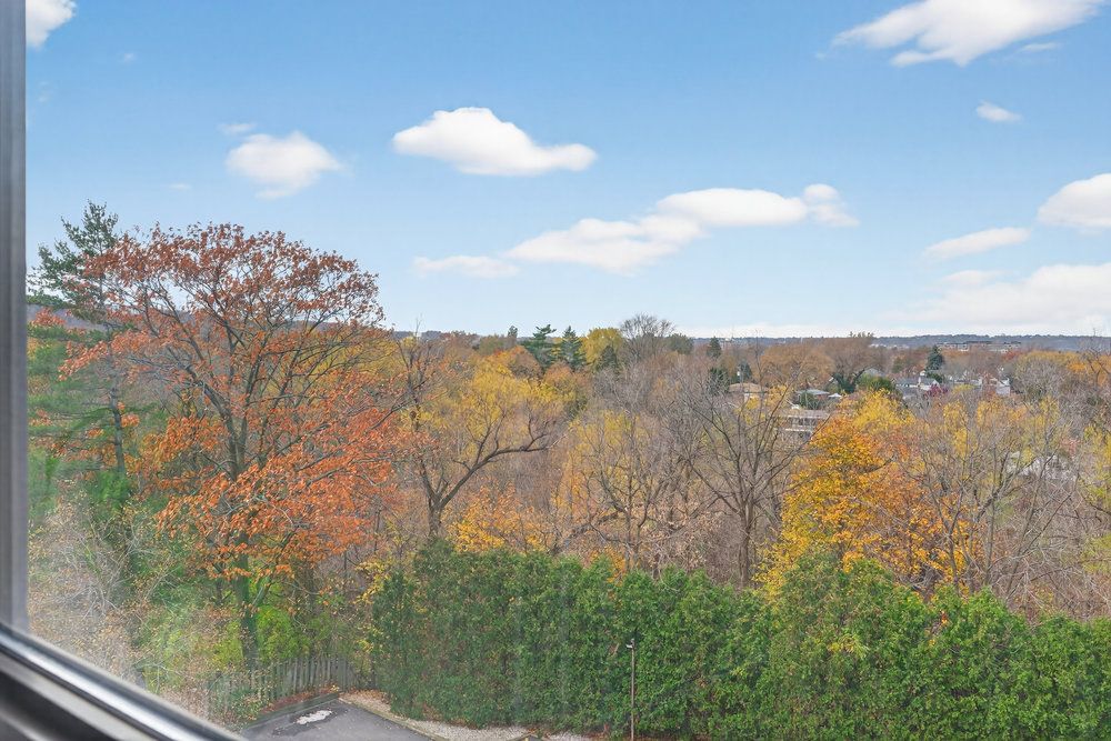 Highly sought-after "florentine" building just steps from public transit, confederation go station, shopping, dining, pharmacies, and countless everyday conveniences. This bright and spacious west-facing unit offers beautiful sunsets, featuring 2 bedrooms, 2 bathrooms, a massive living area, huge kitchen, and more. Views of the ravine through large picture windows. Enjoy open-concept living and dining areas with stylish hardwood-look vinyl flooring, and an eat-in kitchen with ample cabinetry and counter space. The generously sized primary bedroom easily fits a king-size suite and includes a 3-piece ensuite with a step-in shower and an extra linen closet. The second bedroom is also spacious, and the main bath features a relaxing tub to soak in. In-suite laundry adds everyday convenience. The building offers excellent amenities including a fitness room, party room, games room & underground parking. A prime location with everything at your doorstep-this is one you won't want to miss!