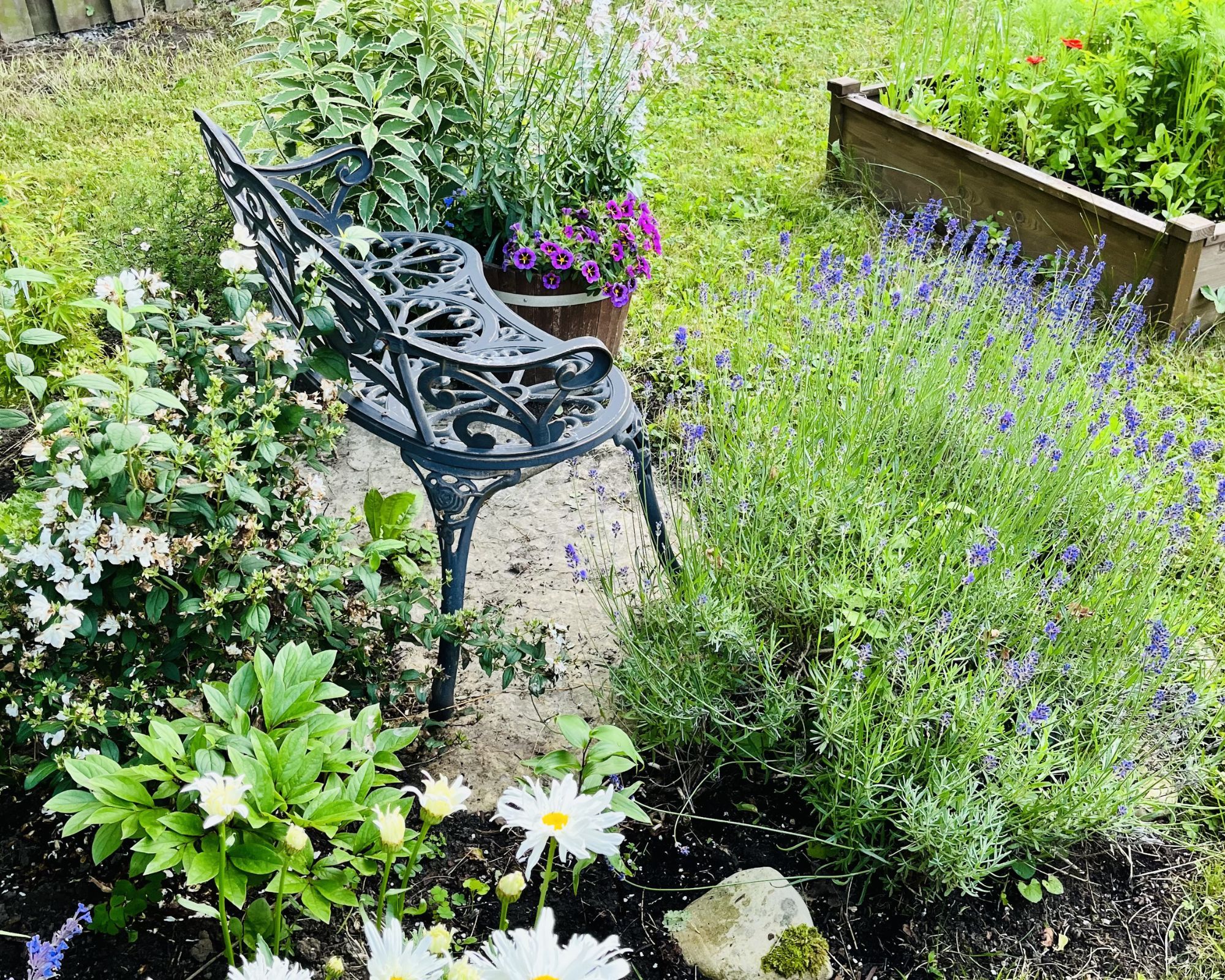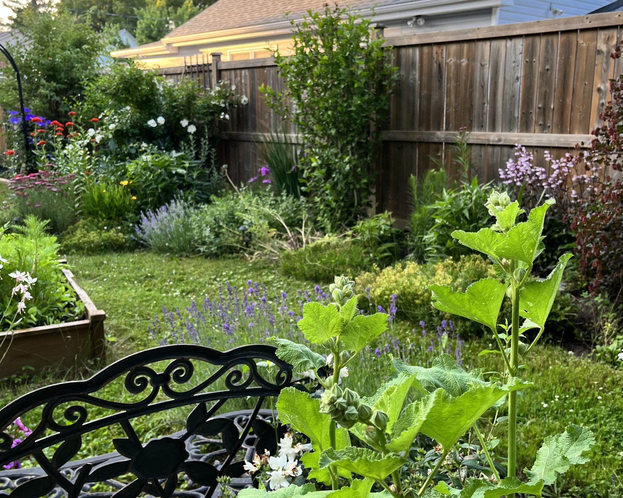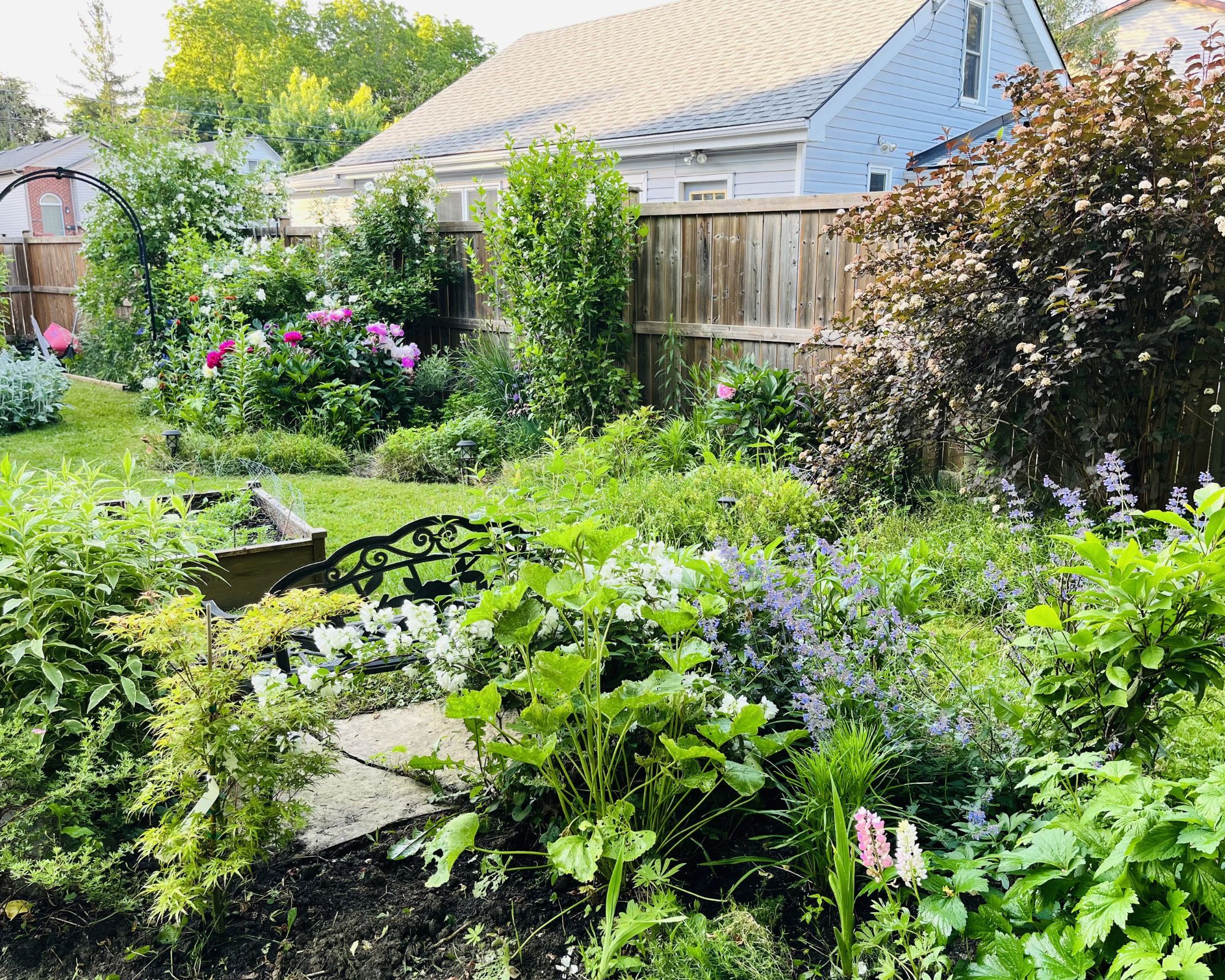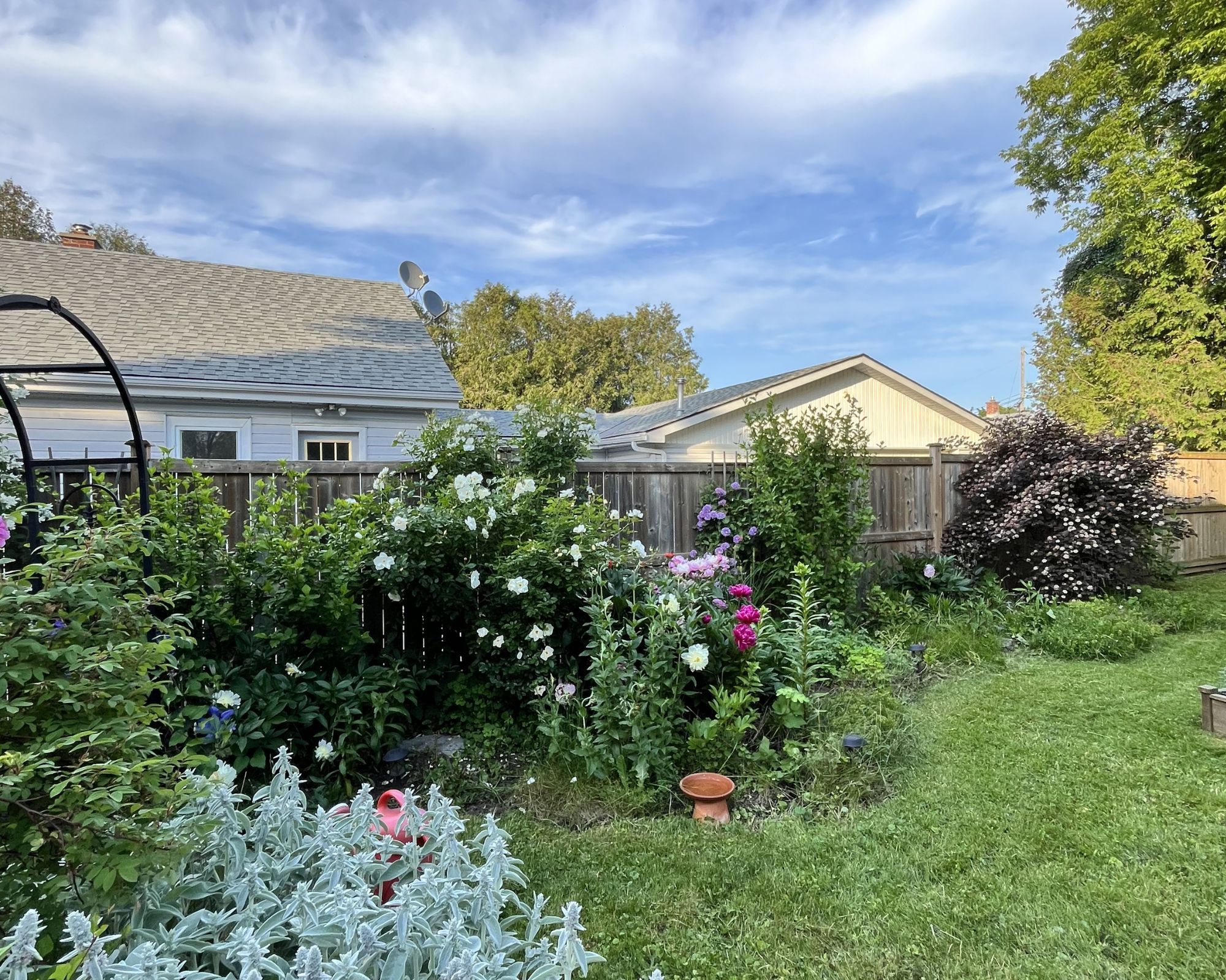 • Oversized backyard with lush gardens for outdoor enjoyment.