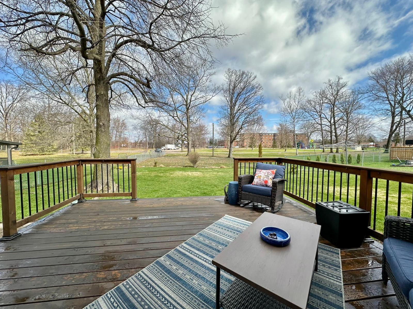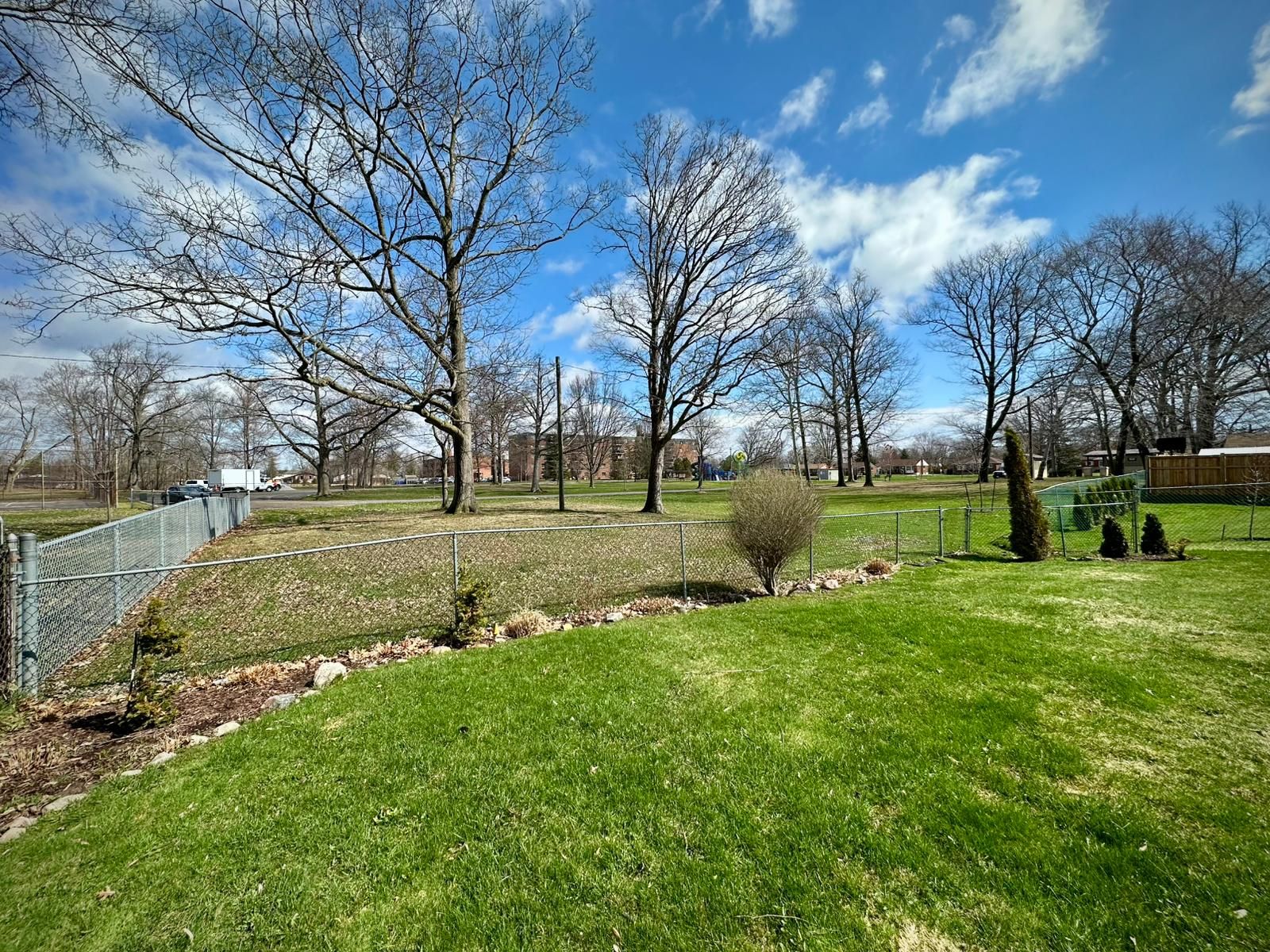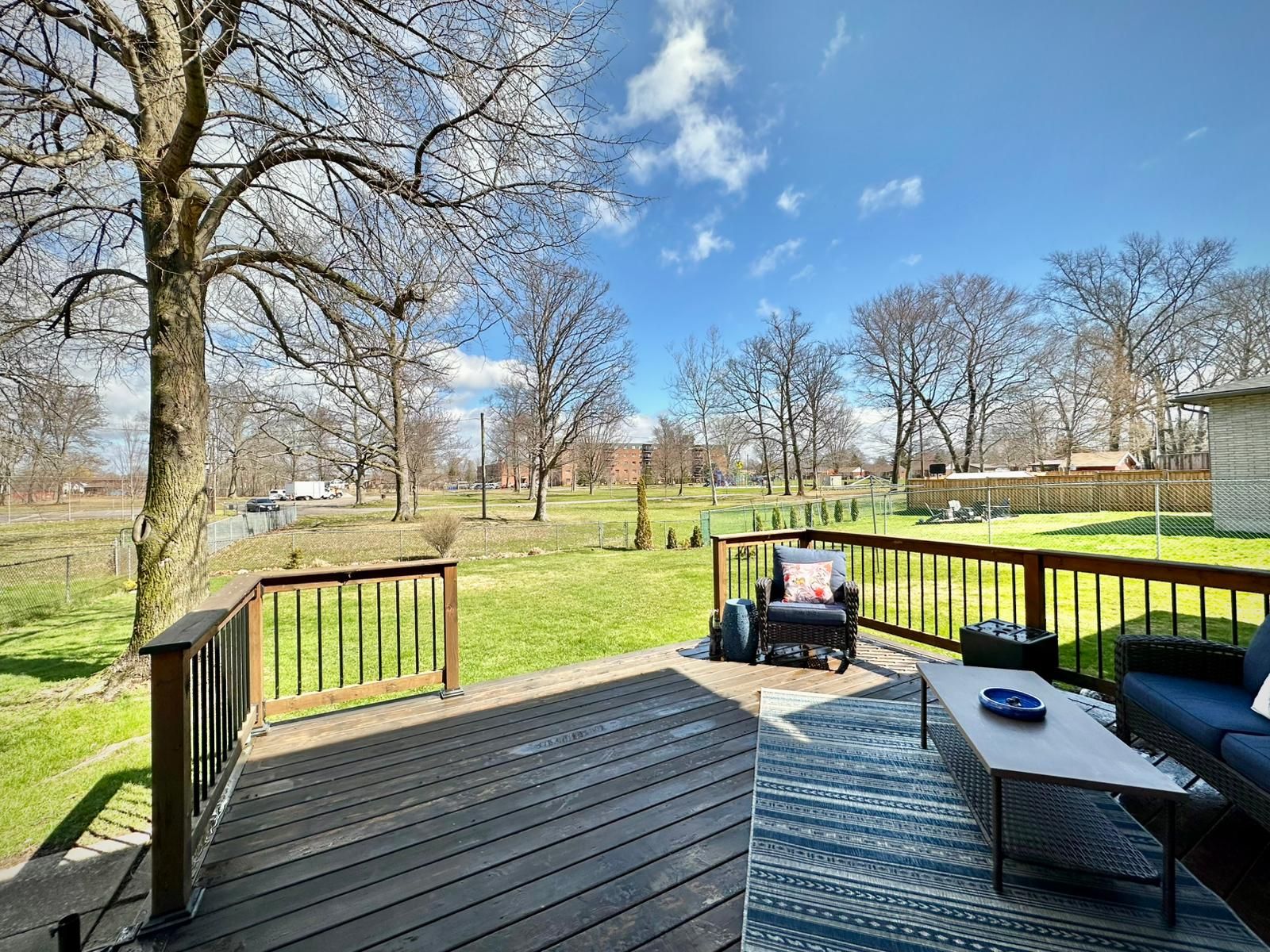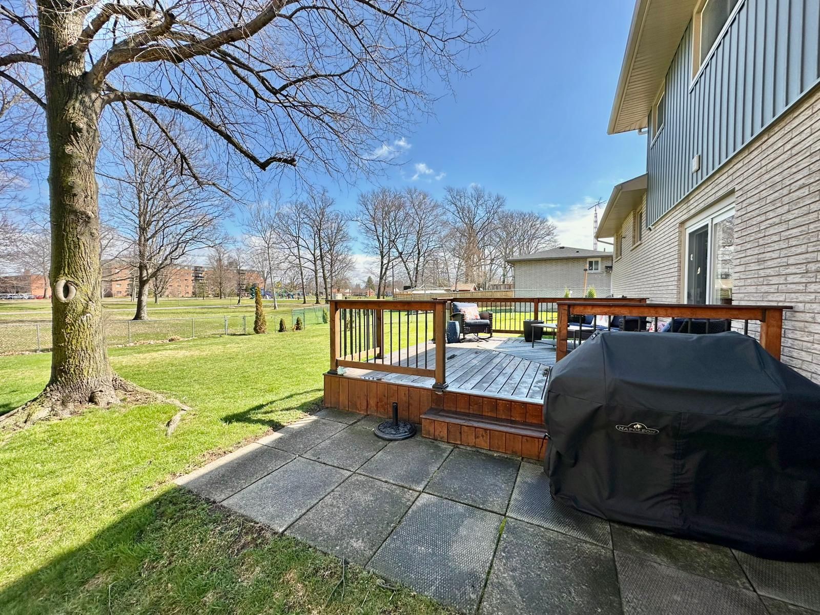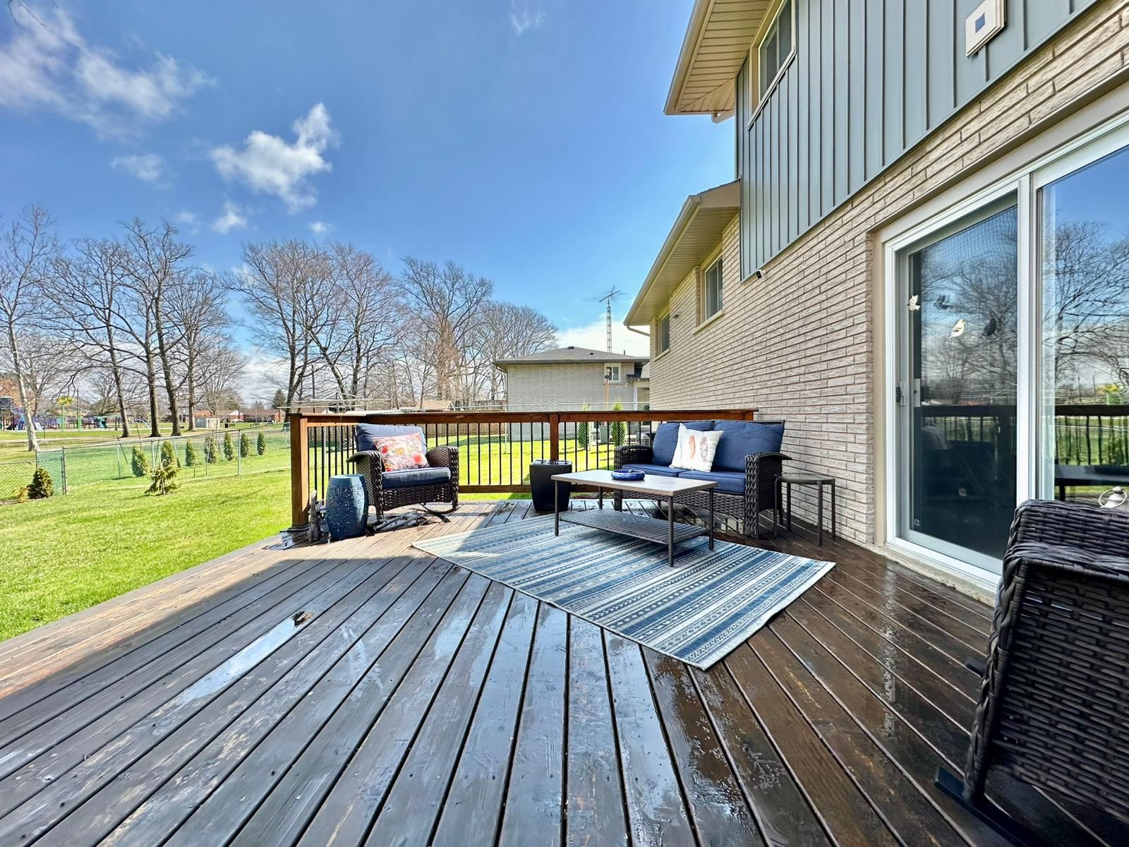 • Private backyard backing onto Maple Park, perfect for outdoor activities.