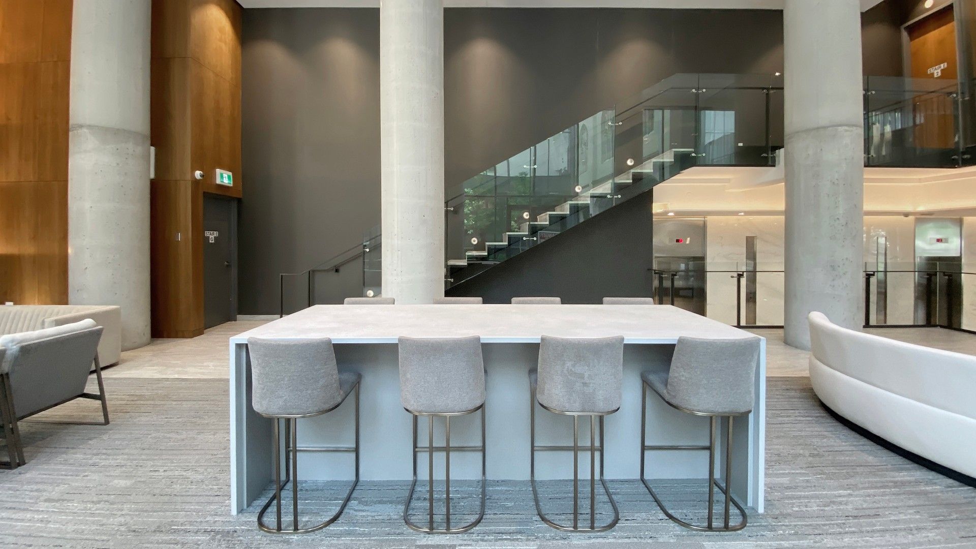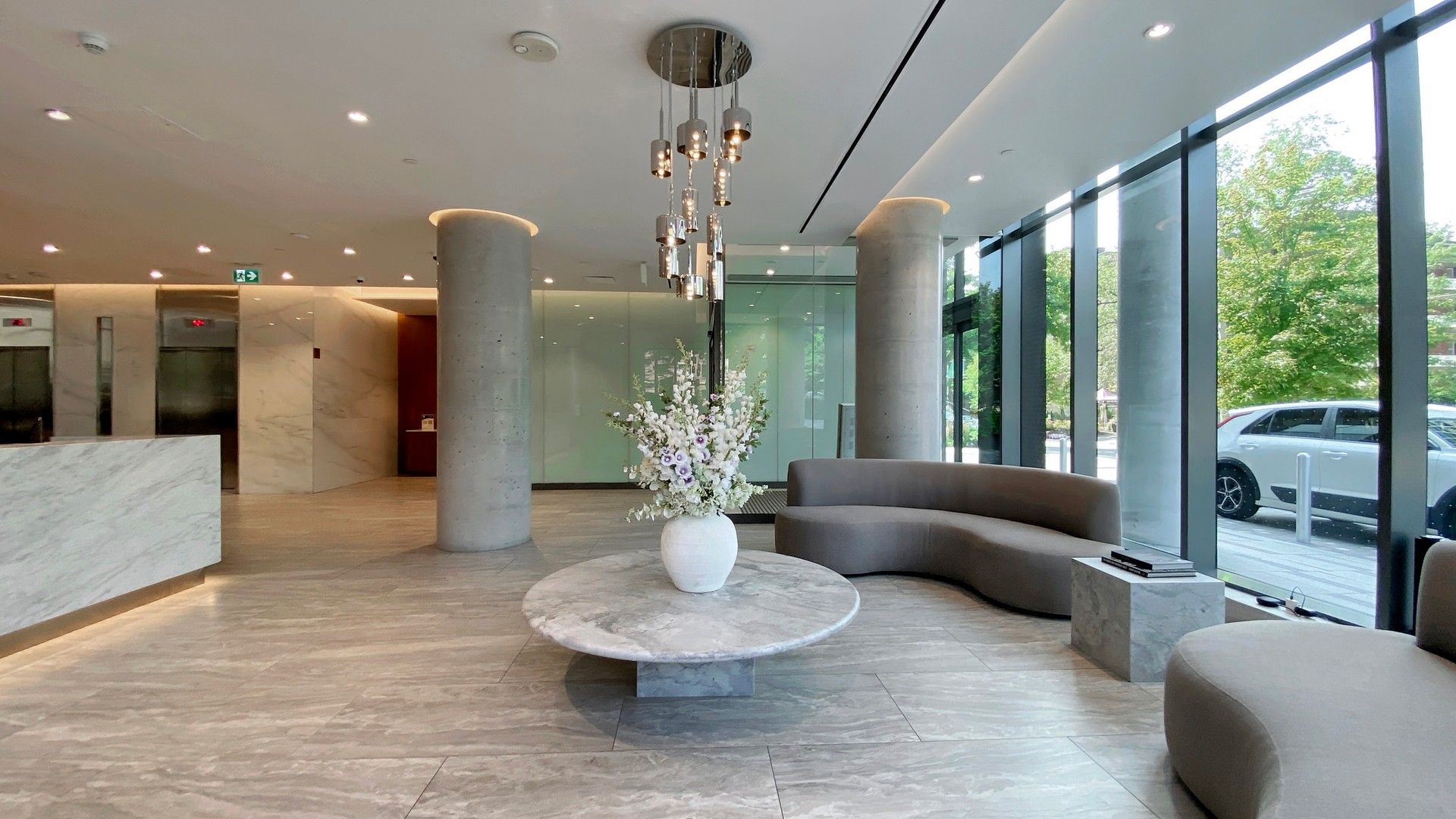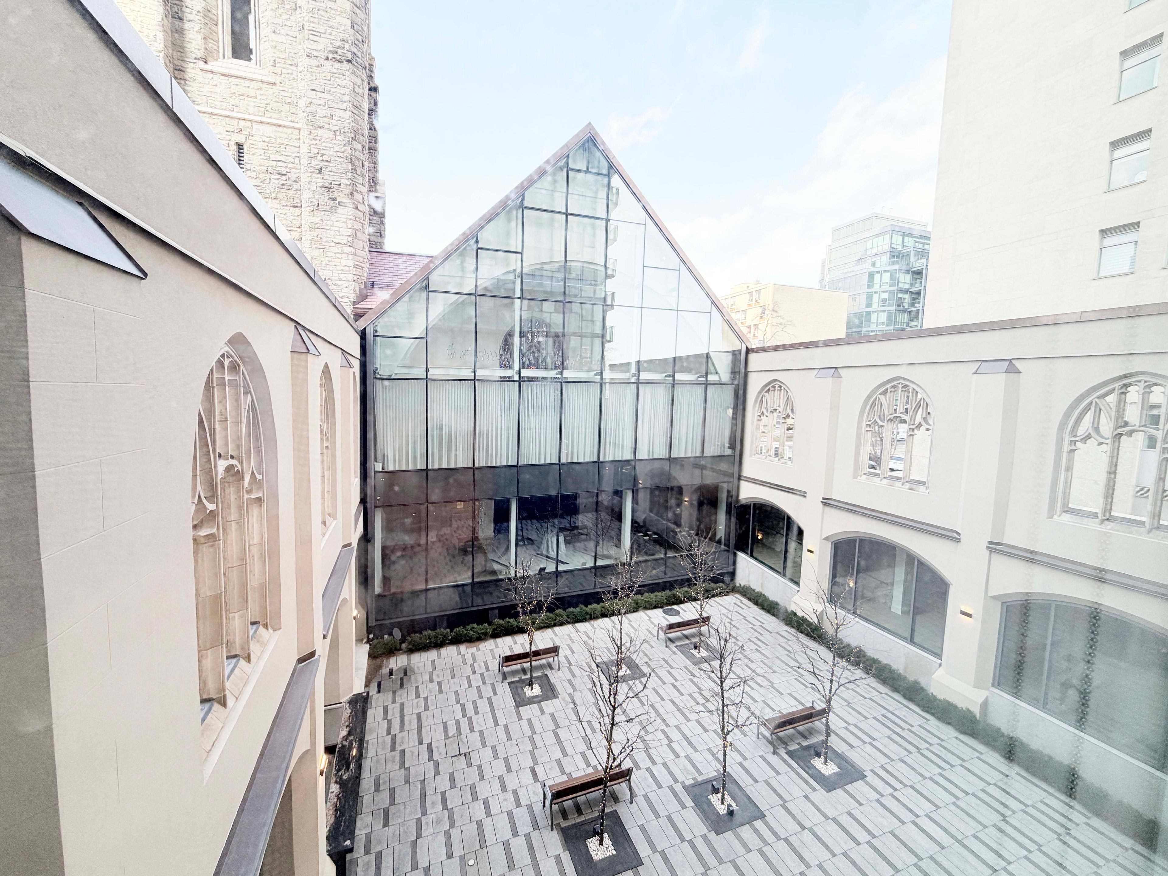 • Unique landscaped courtyard with seating areas and public art nearby.