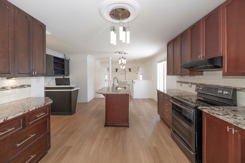 This home has been custom renovated with accessibility features including entry ramps, a garage lift and elevator/lift inside the home to access each floor! The primary ensuite includes a "roll-in" shower for wheelchair accessibility. The home also features multiple entry doors for easier access to various parts of the home. The property could be divided for a " nanny quarter " setup with separate entrance if needed. An extensive security monitoring system exists. The yard features landscaping rock and wonderful backyard pond and storage shed.