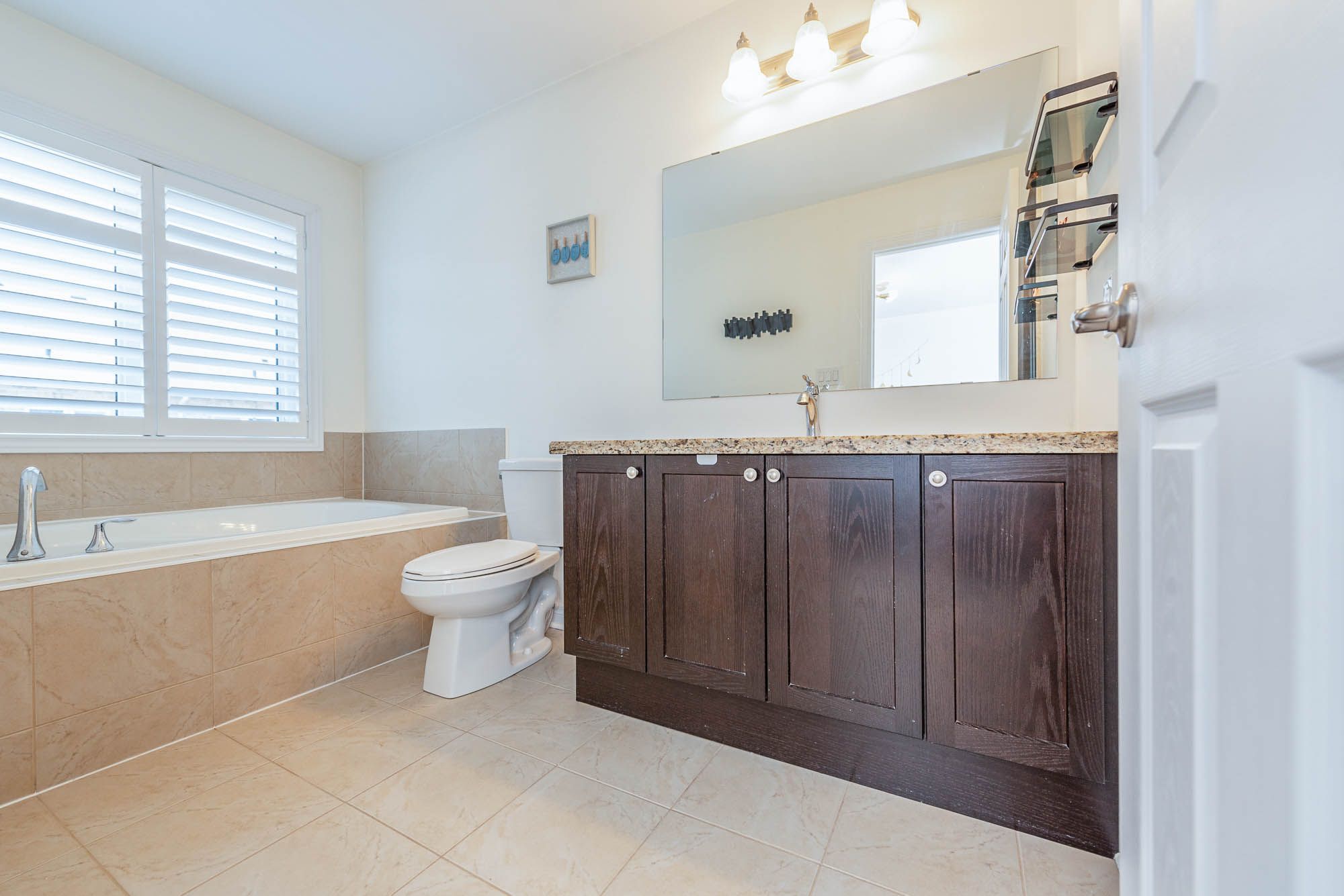 • Three spacious bedrooms with three full baths and one half-bath.