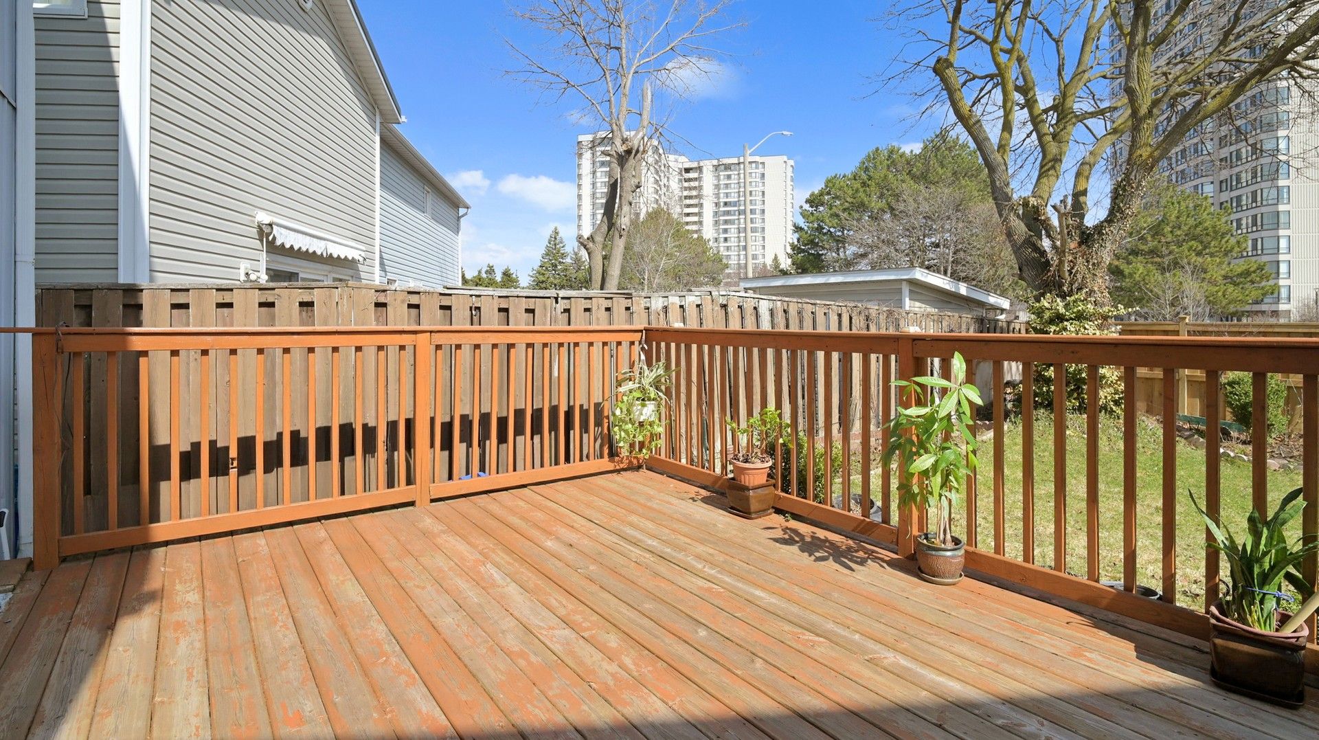 • Large private backyard featuring an expansive deck for outdoor activities.