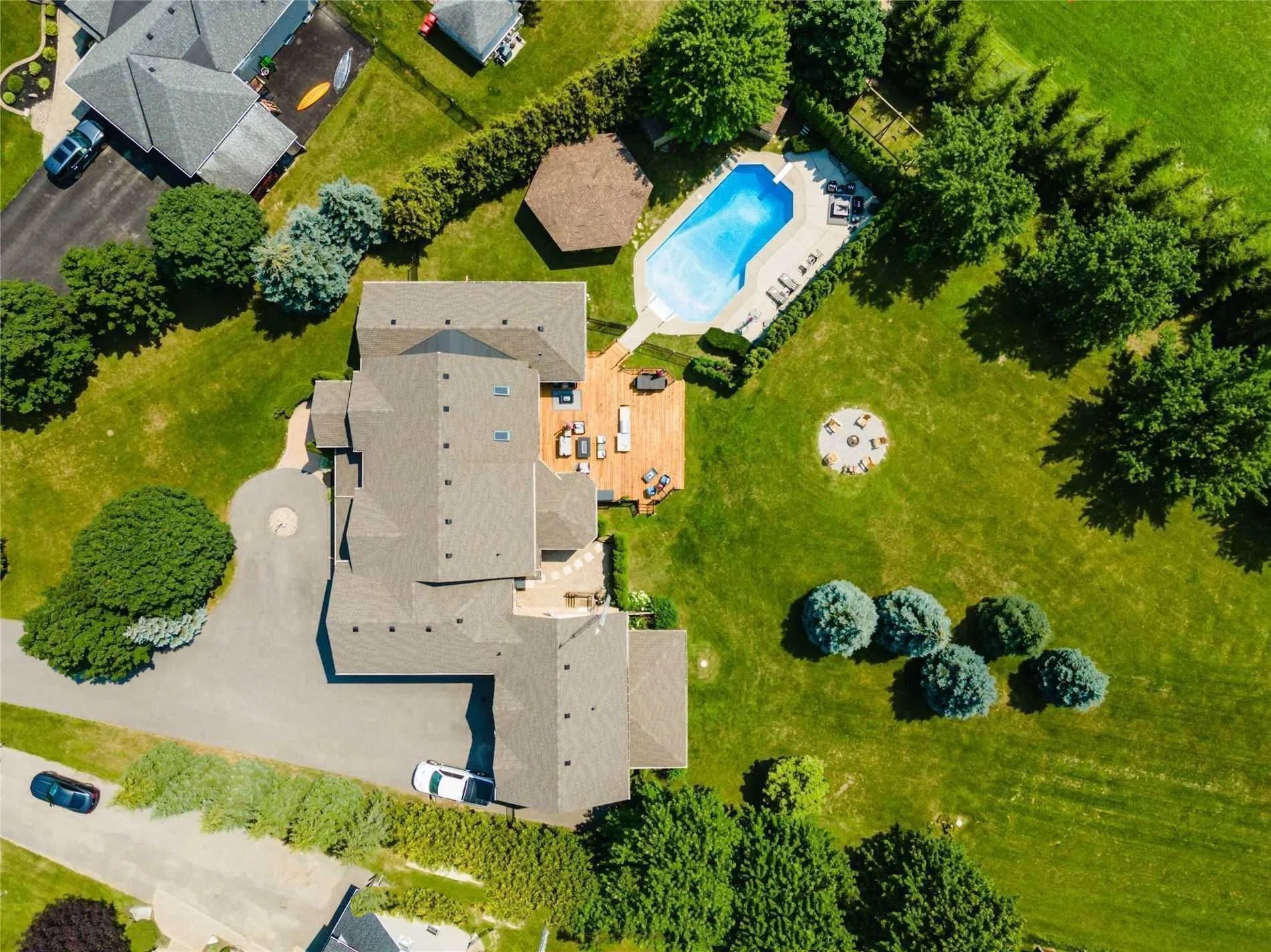 One of a kind spectacular property in private enclave of homes. 1. 71 acres fully fenced & double tree-lined. Inground saltwater pool w/cabana, bar, pool house and b/i gas bbq fridge & sink main house with pot lights, california shutters, hardwood floors, grand entrance main fl. Offer 3 gas fireplaces. Finished basement w/ theatre room, games room, workout room 2bedrooms. Incredible separate 2-storey nanny's quarters full kitchen family 2 bed/2 bath laundry,heated garage. Country living minutes to all north oshawa amenities. High-speed internet. 22 kw generator. Furnace (17), roof (15), driveway (19), well pump (20) - swimming pool ( 2024 mantained)see attached features list - too many to list! Must be seen. Hwt rental