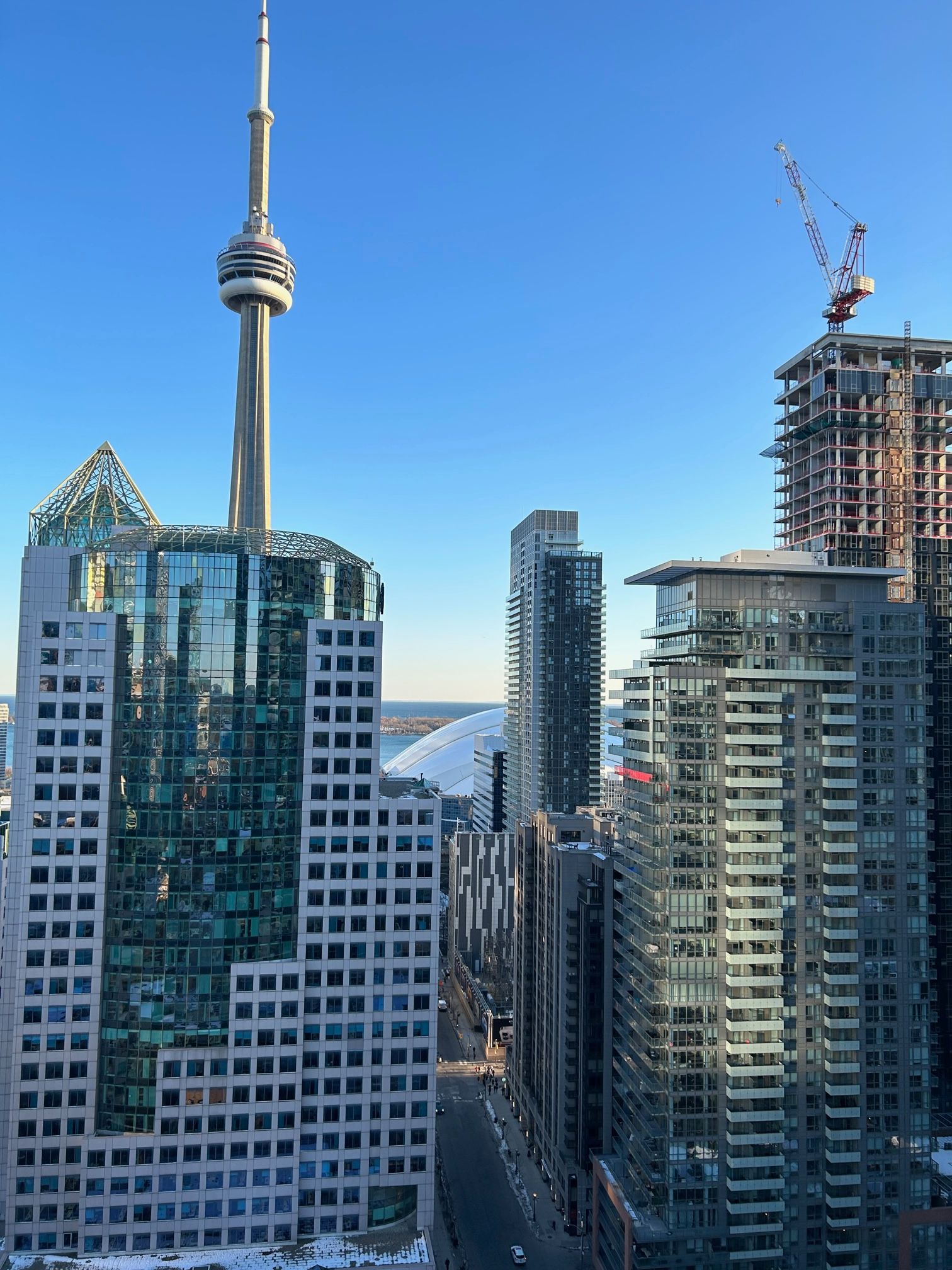 • Open-concept living area with stunning views of the CN Tower.