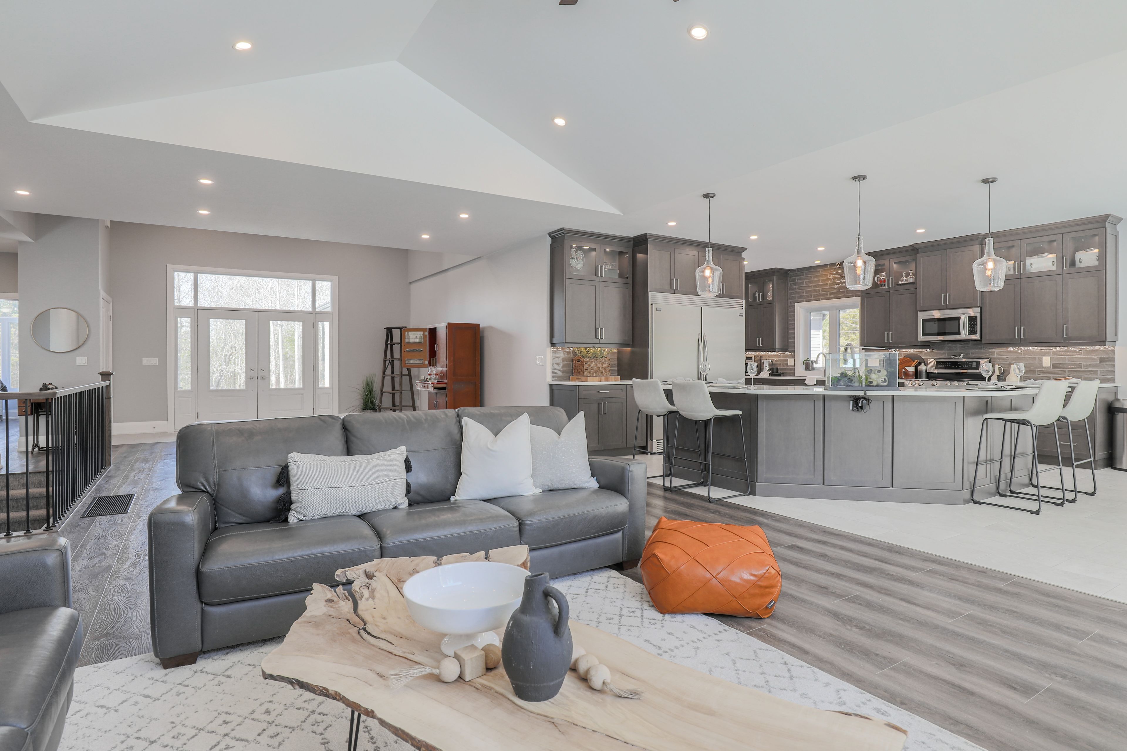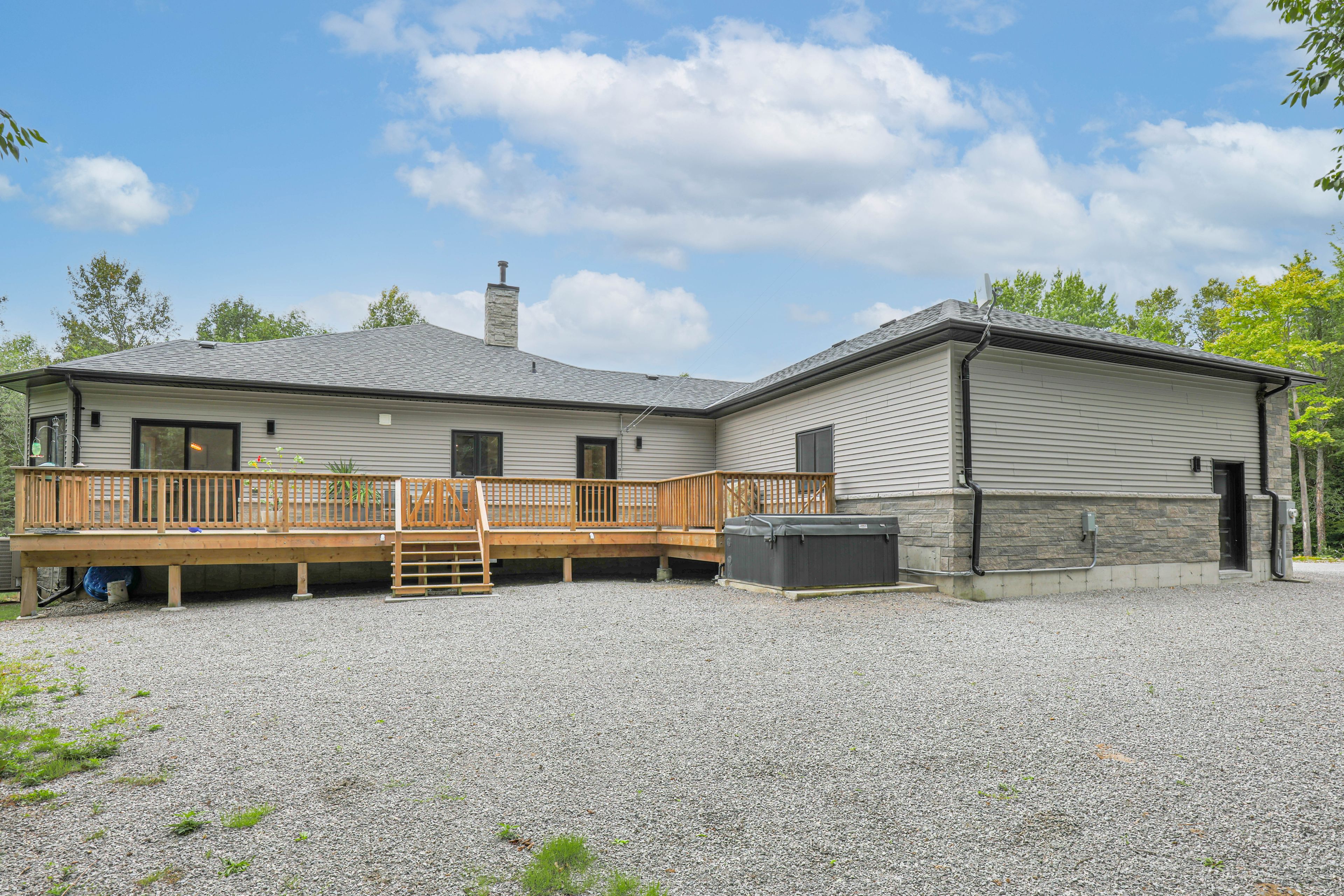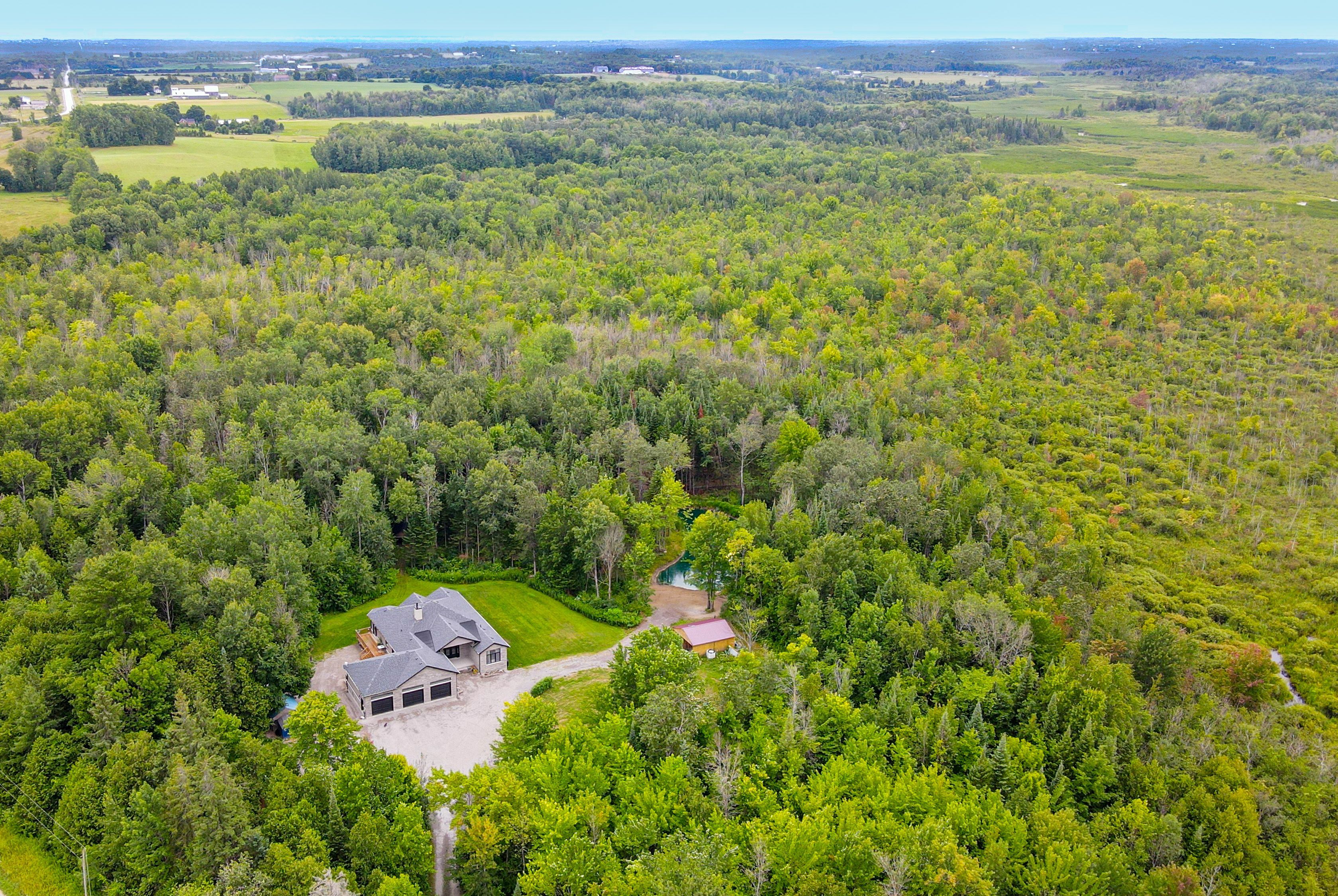 Welcome to 48 private acres of custom luxury living. Experience the perfect blend of modern design and country tranquility in this stunning, newly built 5-bedroom, 3-bath custom home set on 48 spectacular acres just steps from balsam lake and the shops and restaurants of fenelon falls. Step through the front door and be greeted by soaring vaulted ceilings, a dramatic floor-to-ceiling stone fireplace, and expansive picture windows framing serene forest views. Open-concept kitchen, living, and breakfast area is an entertainers dream, featuring floor-to-ceiling cabinetry, a grand quartz island, double built-in stainless-steel fridge/freezer, and a walk-in pantry. A walkout leads to a spacious deck with a hot tub, creating seamless indoor/outdoor living. The generous primary suite offers a peaceful escape with a walkout to the deck, spa-style ensuite with glass shower and double vanity, and a walk-in closet. Two additional bright bedrooms on the main floor each offer picturesque views. Fully finished lower level. The light-filled lower level is designed for comfort and versatility, boasting two more bedrooms, a full bath, a cold cellar, and a bonus recreation/man-cave area with a propane/wood-fired furnace. A convenient walk-up leads directly to the immaculate three-car garage. This property offers endless possibilities: enjoy the private pond, explore the expansive acreage, or make use of outbuildings for hobbies, storage, or future projects. A large mudroom/laundry area provides inside access to the garage with space for a potential extra bath. Acres of ultimate privacy and natural beauty steps to balsam lake and charming fenelon falls ideal for family living, entertaining, or creating your dream country estate. This extraordinary property is the perfect combination of craftsmanship, comfort, and convenience. Dont miss your chance to experience the pride of ownership and exceptional finishes a must see to fully appreciate.