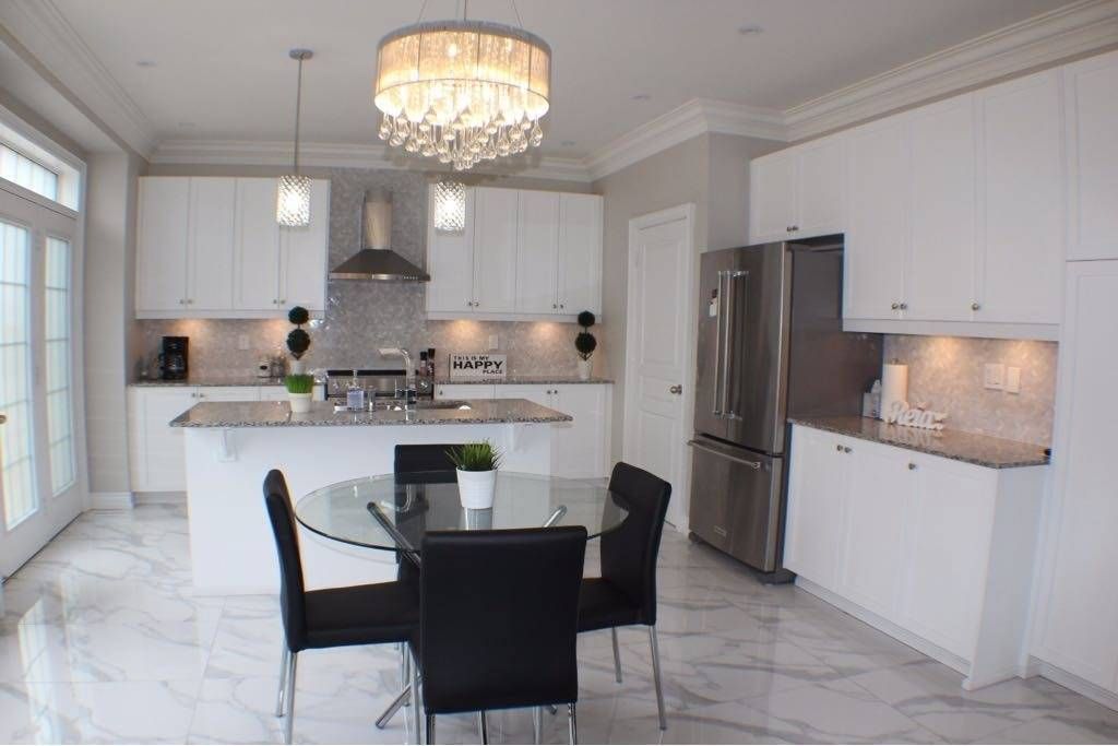 • Elegant marble flooring throughout the foyer, kitchen, and bathrooms.