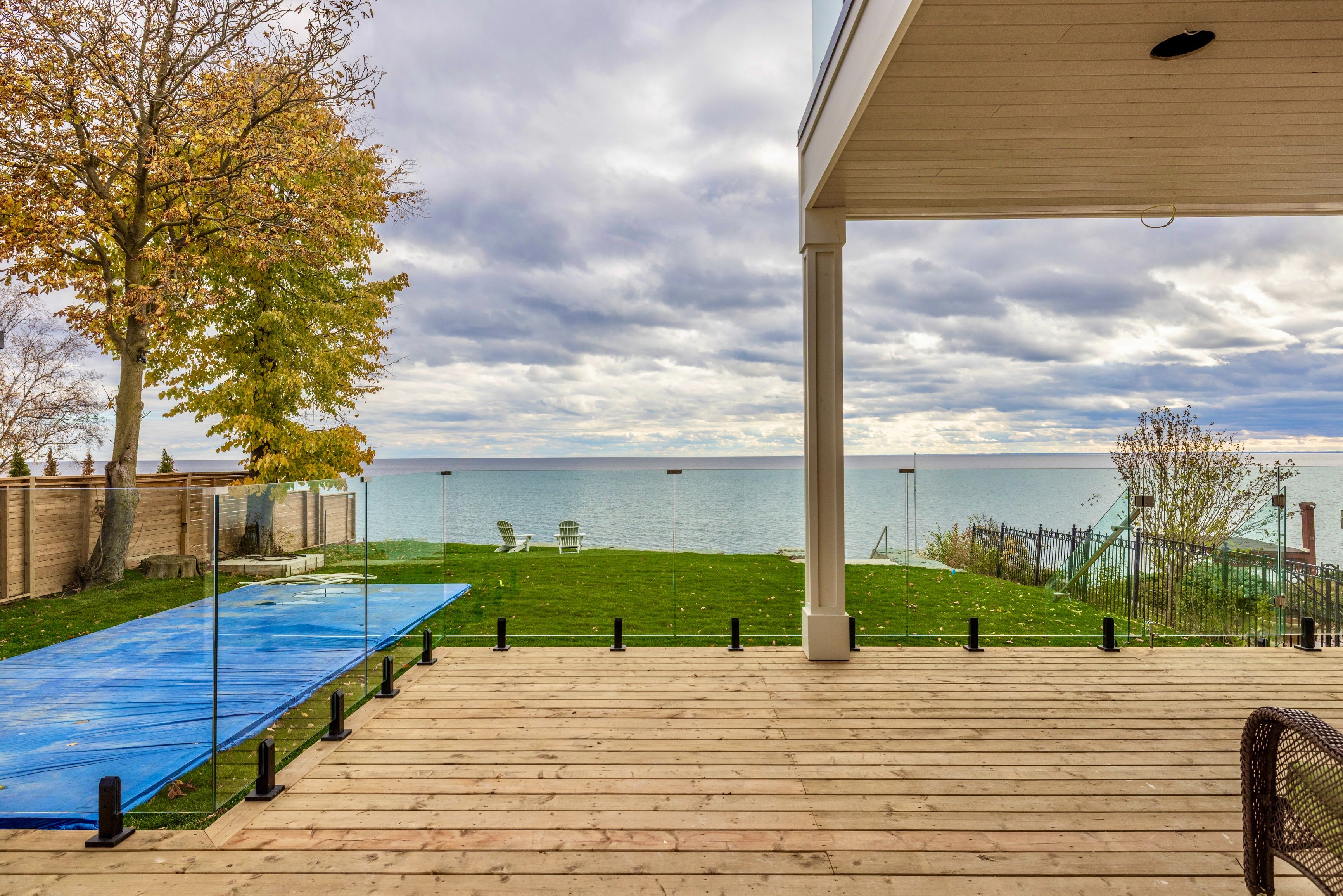 **a truly one-of-a-kind opportunity to personalize a prime toronto waterfront home to your exact taste, set against the natural beauty of lake ontario** along a serene stretch of the etobicoke shoreline, this striking new classic hamptons style build by chatsworth fine homes presents a rare opportunity to craft a fully customized lakefront residence - without the wait of new construction. Set on a 56 x 224 ft lot with direct lake access and a private beach, the home spans 6,760 sq. Ft. Of luxury living space. The exterior is beautifully finished, showcasing chatsworth's signature craftsmanship, timeless architectural detail, and a contemporary coastal design that perfectly complements the tranquility of its lakeside setting. Inside, an open-concept kitchen, dining, and family room offers expansive lake views, seamless flow, and light-filled living, opening directly onto a spacious lakefront deck, pool, and landscaped yard. Follow the lawn to a staircase that leads directly to a secluded waterfront deck on a large private beach, a spectacular setting for lakeside entertaining, canoeing/kayaking or quiet relaxation by the water. The interior layout is designed for comfort and flow, featuring 4 + 1 bedrooms, each with an ensuite bathroom and walk in closet, for a total of 7 baths. The primary suite overlooks the lake and includes two generous walk-in closets, while features such as a custom solid mahogany front door, 2 skylights, heated basement floors, roughed-in elevator, and panoramic views of lake ontario enhance both function and luxury. With exterior construction and interior designs in place, this is a rare canvas for a discerning buyer to personalize every detail of finishes and fixtures. It's an exceptional opportunity to realize a dream lakefront home, guided by chatsworth's commitment to sustainability and innovation. This property embodies thoughtful design at every stage, offering both immediate curb appeal and endless potential within.